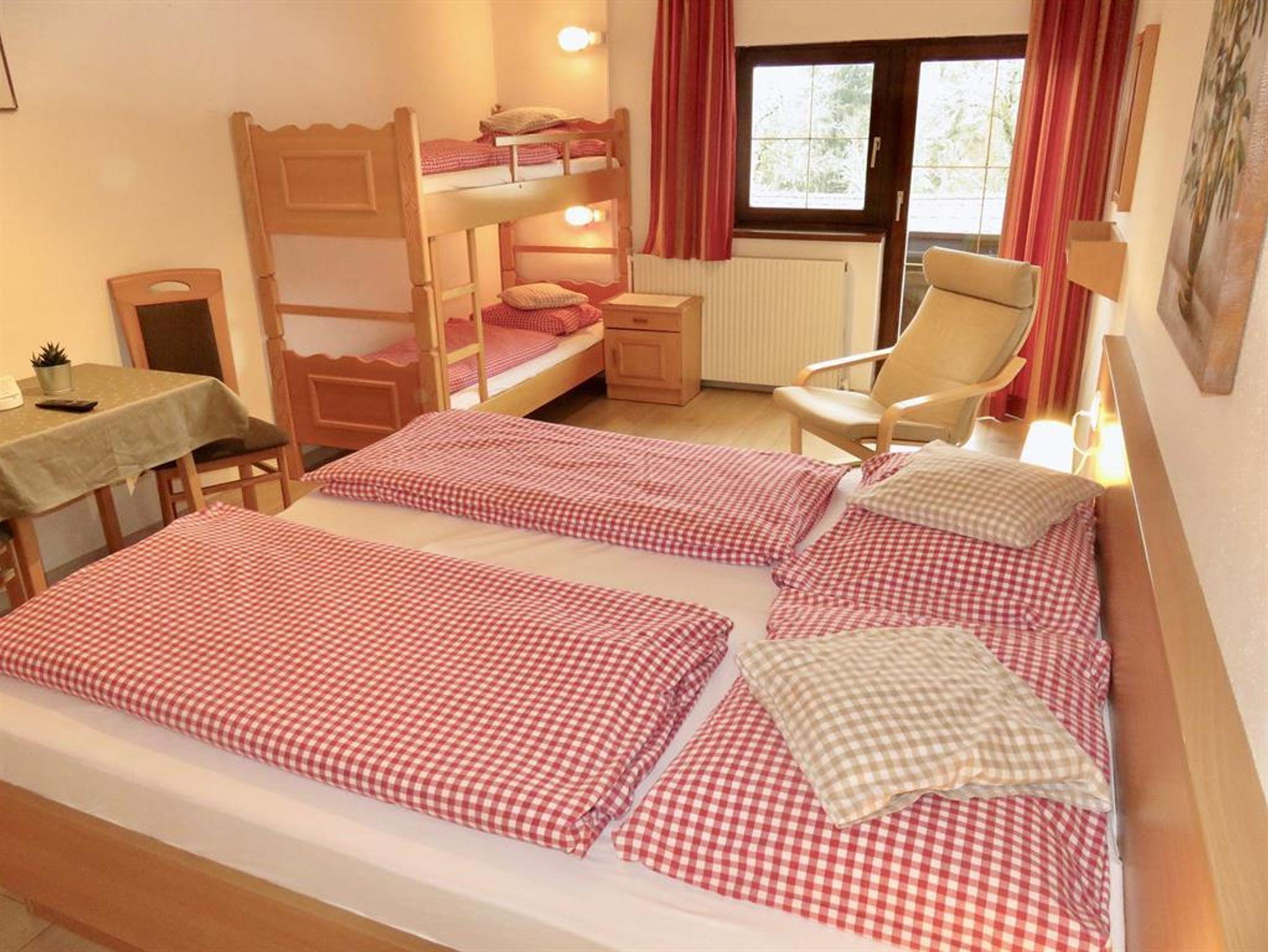 Ferienwohnung mit ca. 46 qm, 2-4 Pers; Schlafzimmer mit Doppelbett und Stockbett; Wohnzimmer mit Sitzecke, Lehnstuhl und Küchenzeile; Du/WC; Balkon nach Süden; Sat-TV.