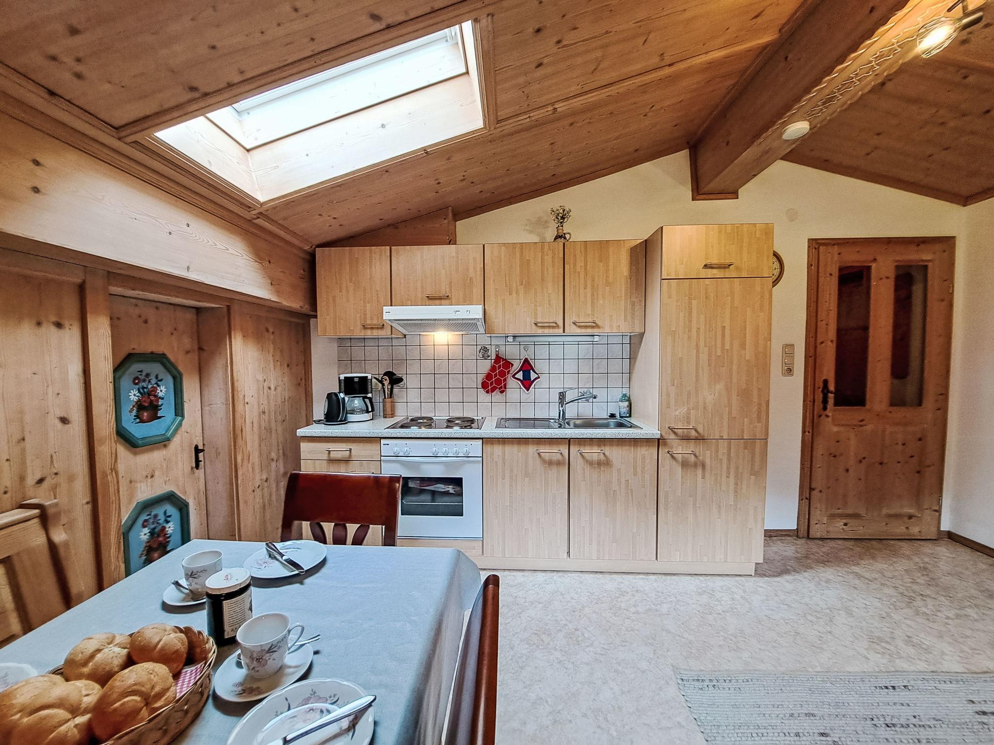 "Trojer", 3-room apartment 60 m2. Beautiful and wooden furniture furnishings: 1 double bedroom. 1 room with 2 beds. Large kitchen-/living room (oven, 4 ceramic glass hob hotplates, microwave, freezer, electric coffee machine) with dining table. Shower/WC. Very beautiful view of the mountains.