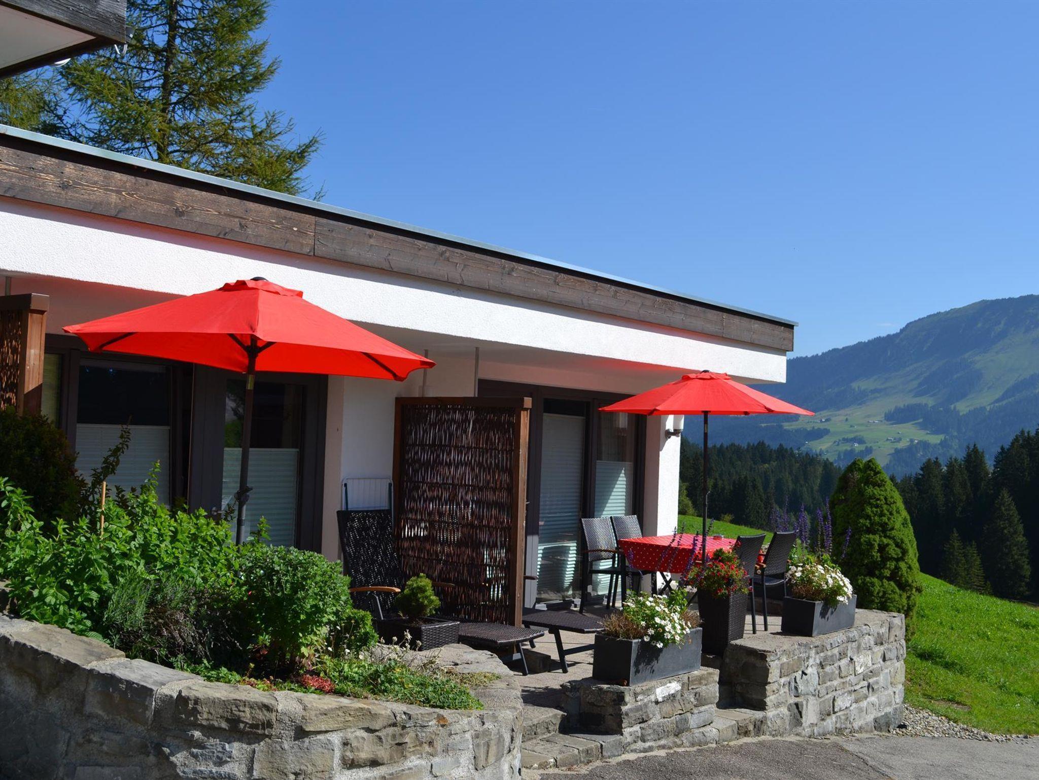 Grosses Panoramafenster mit Südterrasse. Hund auf Anfrage mit Aufpreis möglich.