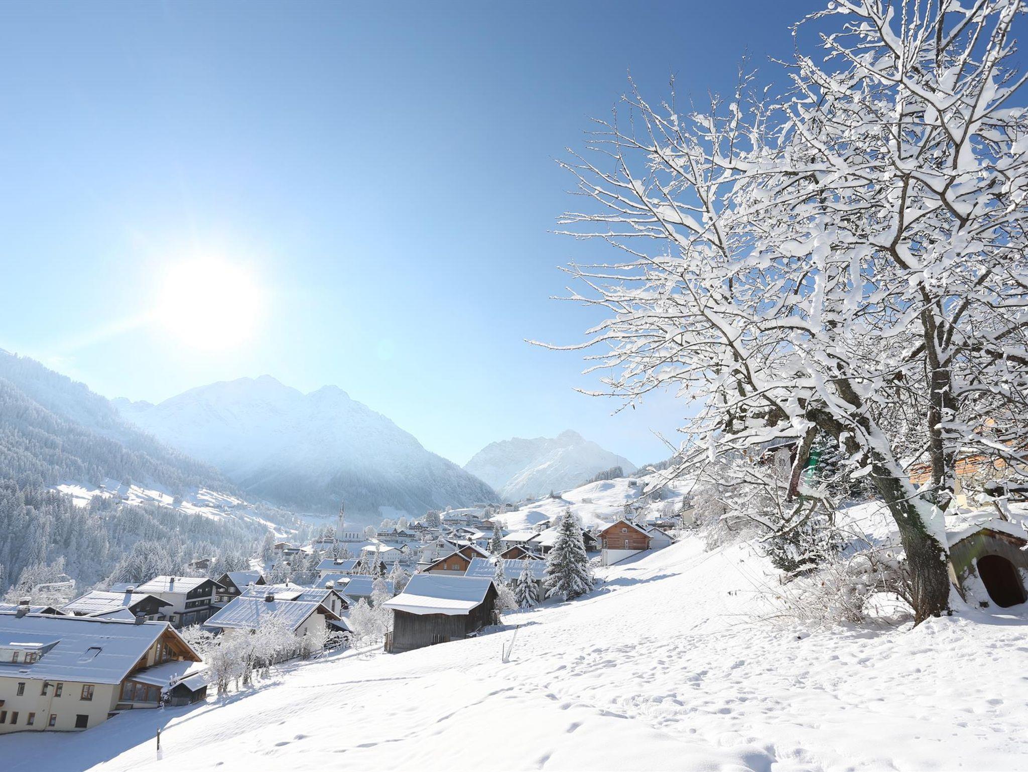 Erleben Sie Ferien im Herzen von Hirschegg. In unmittelbarer Nähe ist das Walserhaus, Bäckerei, Restaurants, Bushaltestelle und Bergbahn.