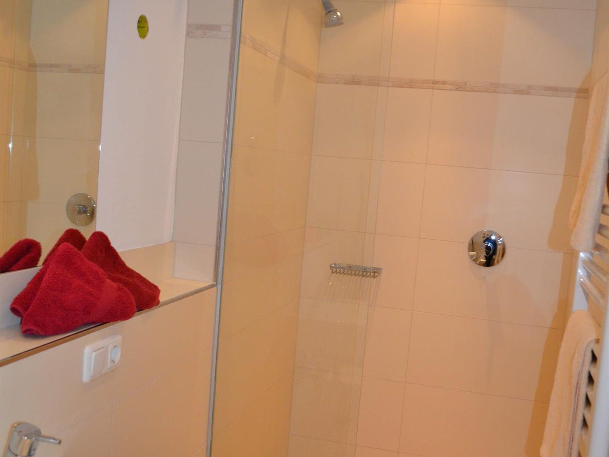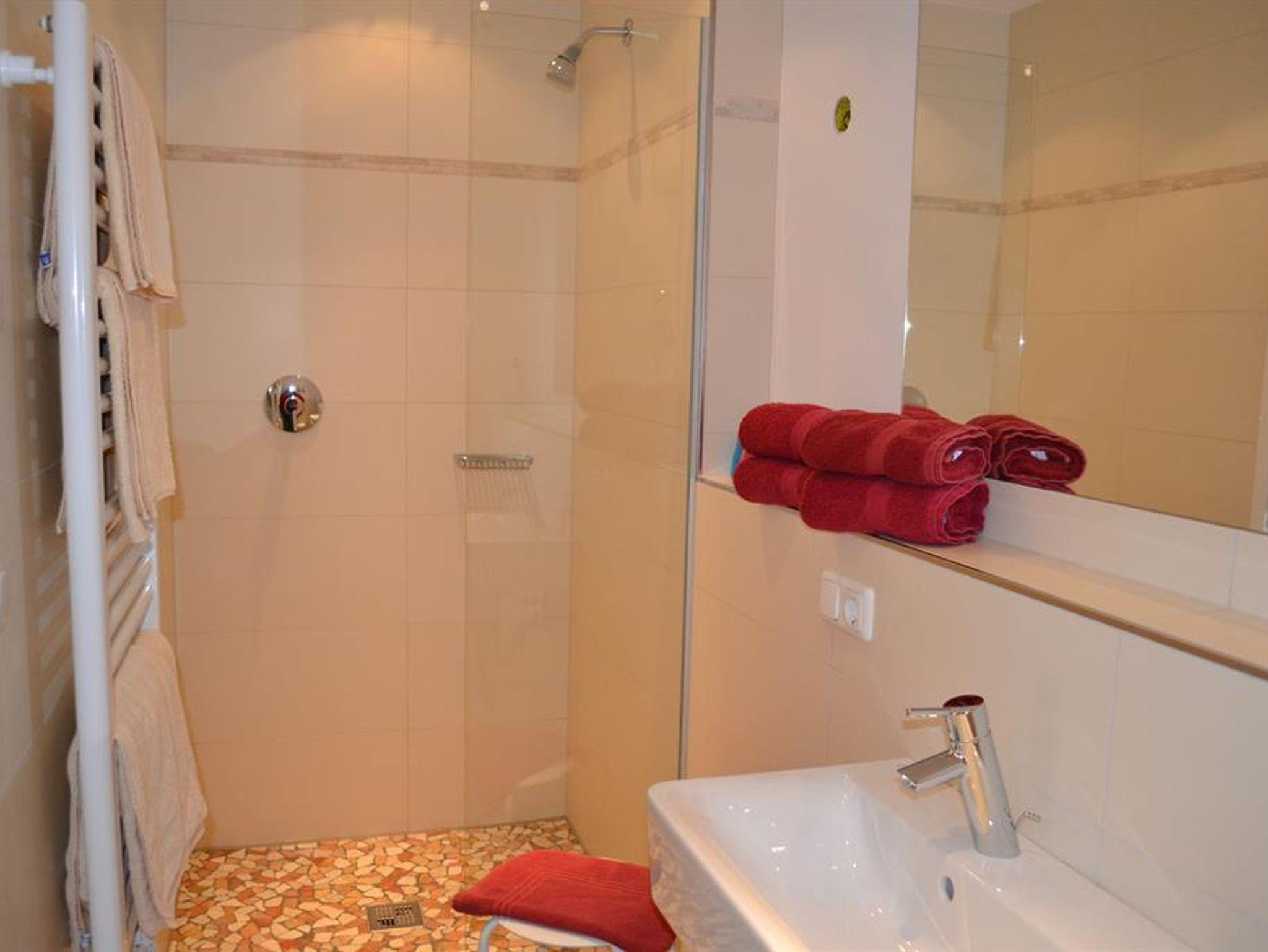 Ebenerdiges Dusch-Bad, inkl. Hand- und Duschseife.