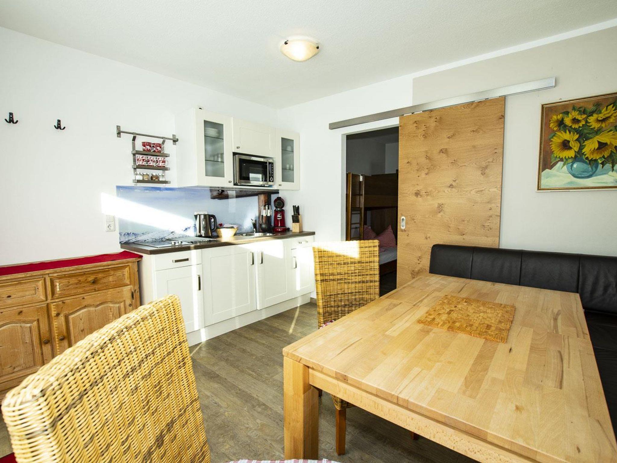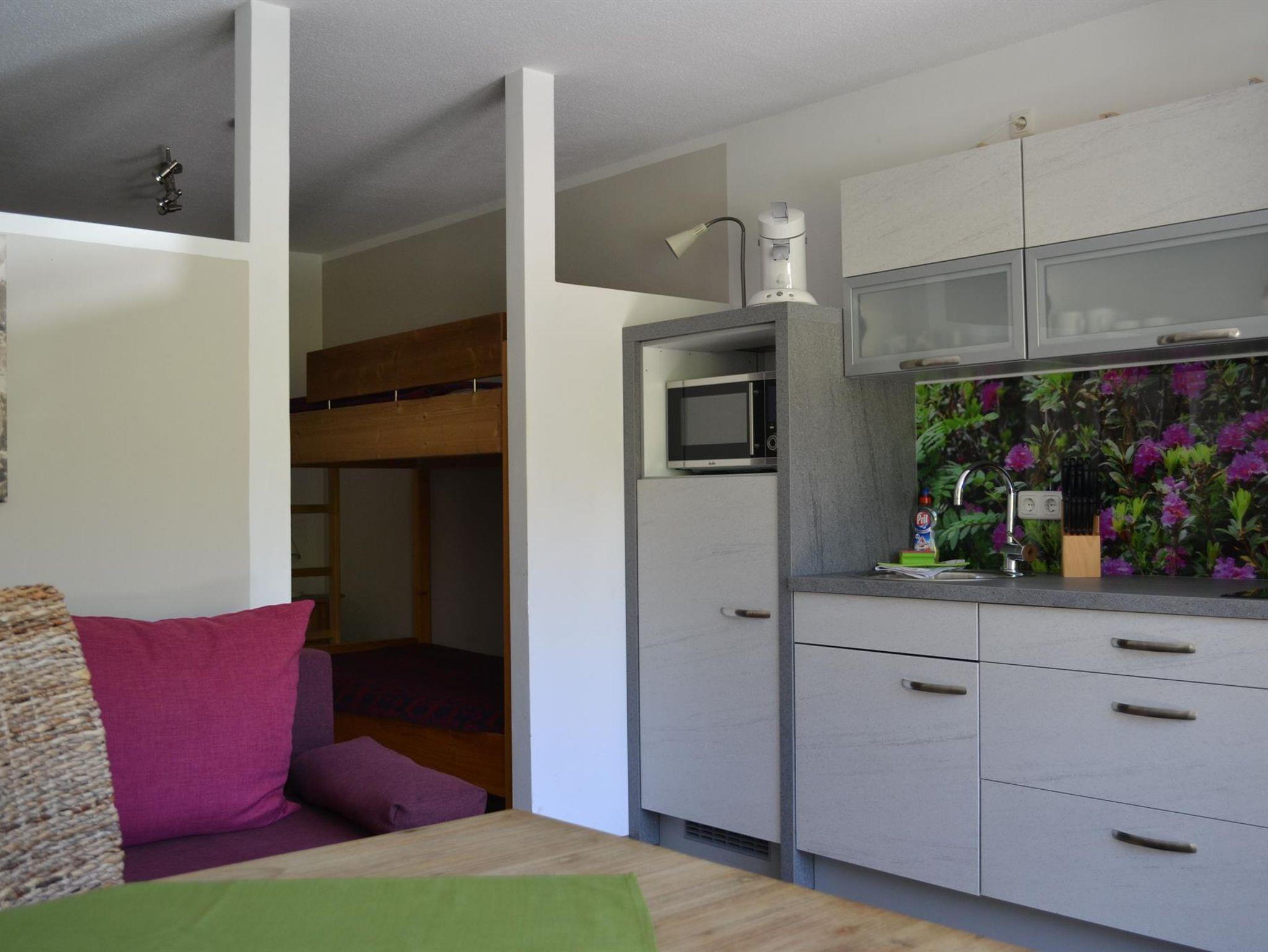 Gemütliches, kleines Appartement mit eigenem Eingang über die Terrasse. Im Wohn- Essbereich befindet sich eine Eckcouch mit Esstisch und eine voll ausgestattete Küchenzeile. 2-Platten Herd, Micro-Grill, Wasserkocher, Toaster und Kaffemaschine.