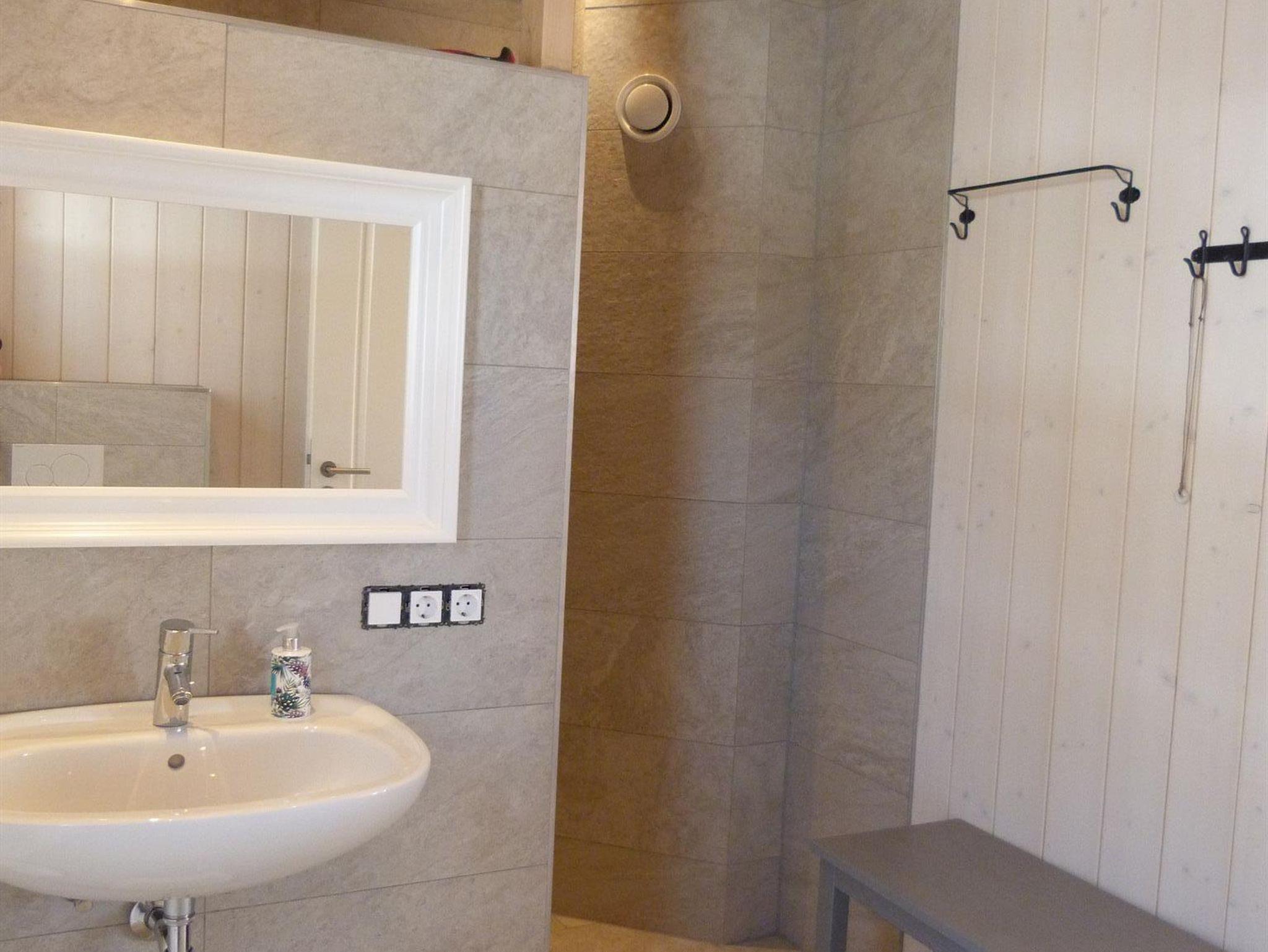 In der nächsten Etage ist die offene Küche mit Wohn- Essbereich untergebracht. Mit Geschirrspüler, Kühlschrank mit Gefrierfach, Backofen, Herd, Kaffeemaschine, Toaster, Wasserkocher, Handrührgerät, Zauberstab sowie ausreichend Koch- und Essgeschirr sollten den kulinarischen Zubereitungswünschen keine Hindernisse im Wege stehen. Im Essbereich befindet sich eine große Tischgruppe, die über die Balkontüren eine wunderbare Fernsicht hat. Eines der beiden Badezimmer mit Toilette, Waschbecken und begehbarer Dusche befindet sich ebenfalls auf dieser Ebene. Das gleichwertige zweite Badezimmer befindet sich zusammen mit den drei Schlafzimmern im Obergeschoss. Die Schlafzimmer sind entweder mit einem Doppelbett (Zimmer 2 + 3) oder einem französischen Bett (Zimmer 1) sowie mit Schränken ausgestattet. Die Betten im Zimmer 3 lassen sich auch einzeln stellen.
