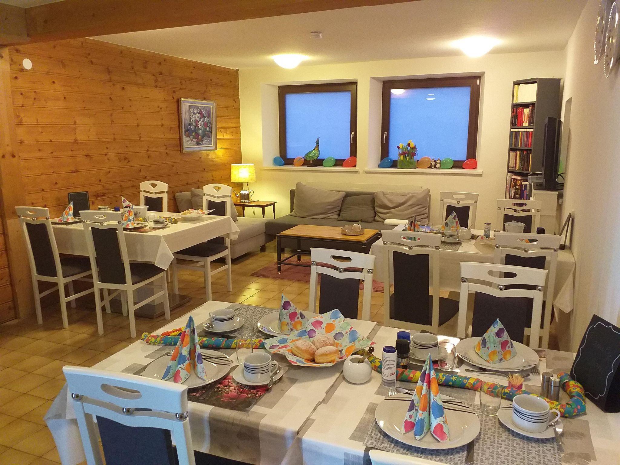 Unsere Privatzimmervermietung ist im Einklang mit Tradition und Natur entstanden. In einem mit ebenso viel Liebe zum Detail eingerichteten Frühstücks- und Aufenthaltsraum könnt Ihr Euch morgens von 07:30 Uhr bis 08:30 Uhr für die Pistenjagd und Gipfelerstürmung - mit hauseigenen Spezialitäten - stärken, und abends bei einem Glaserl Wein oder einem kühlen Zwickerl entspannen.