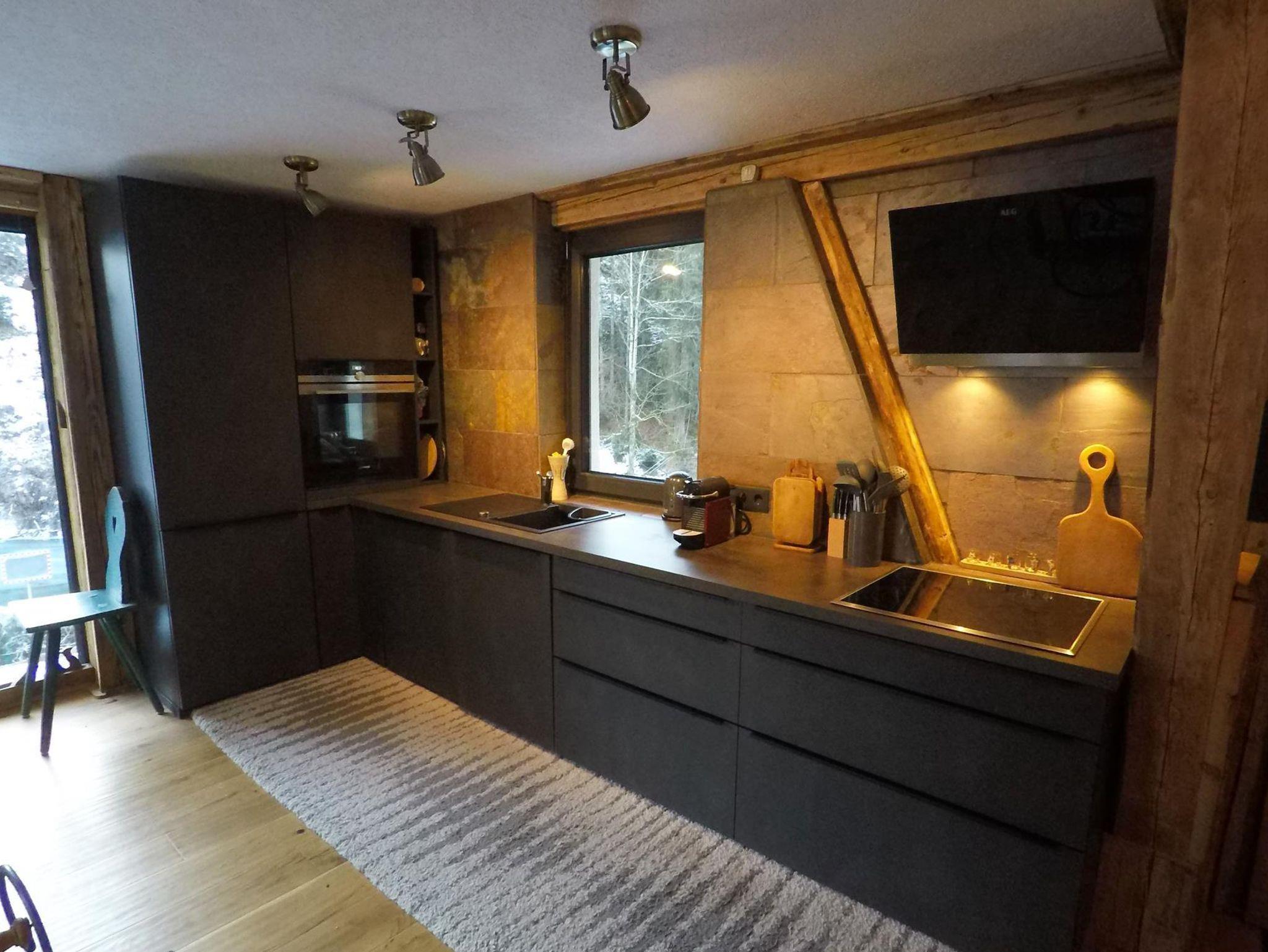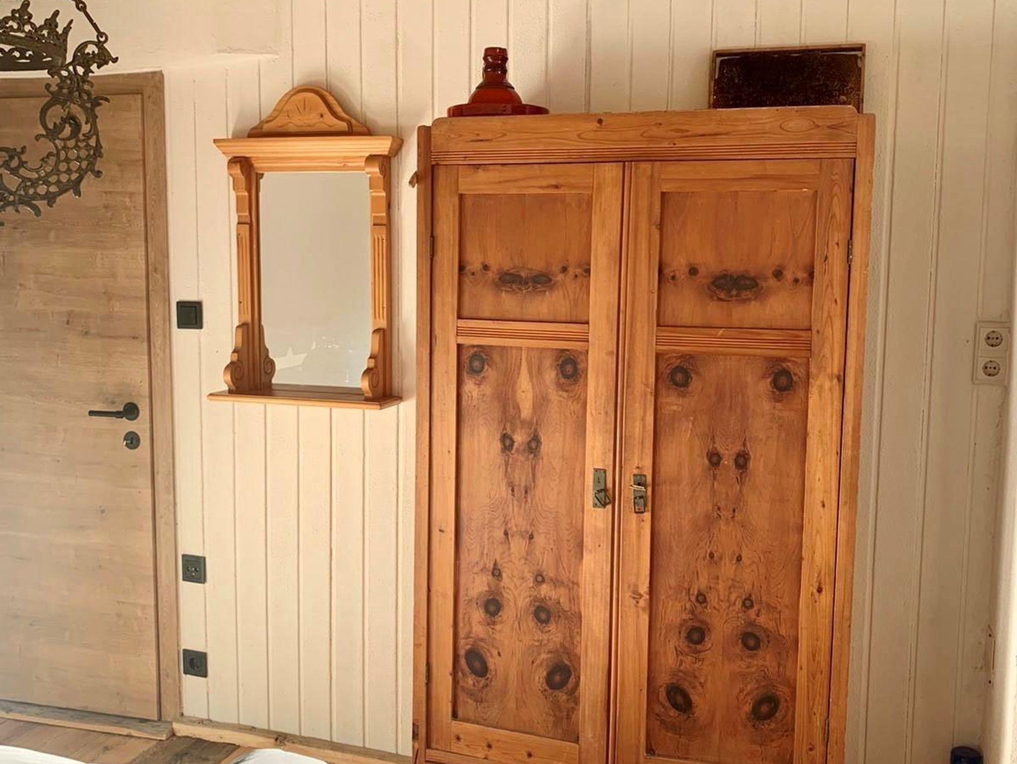 Das Erdgeschoss ist komplett offen gehalten und verfügt neben Sitzecke mit Kamin und eine separate Toilette über einen Esstisch mit 8 Sitzplätzen und eine moderne, komplett ausgestattete Küche. Der Skikeller mit eigenem Zugang bietet Platz für Ski, Boards und unsere spezielle Heizung trocknet Schuhe und Handschuhe über Nacht. Im Keller befindet sich außerdem eine Waschmaschine mit Trockenfunktion. Im ersten Stock finden Sie die drei Schlafzimmer: „Schönbach“, „Herzbergwerk“ und „Alpenglühn“. Jedes Zimmer ist mit Doppelbetten ausgestattet und sehr liebevoll mit Bauernantiquitäten eingerichtet. Ein großes Badezimmer mit Fußbodenheizung, Einlaufdusche mit Regenduschkopf, Toilette und Doppelwaschbecken rundet das erste Stockwerk ab.