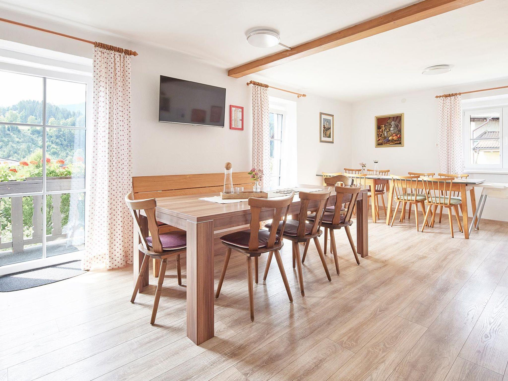 Unser Appartement Zwoa befindet sich im 1 Stock und besteht aus 2 Schlafzimmer, einer Wohnküche, einem Badezimmer und einem Balkon.