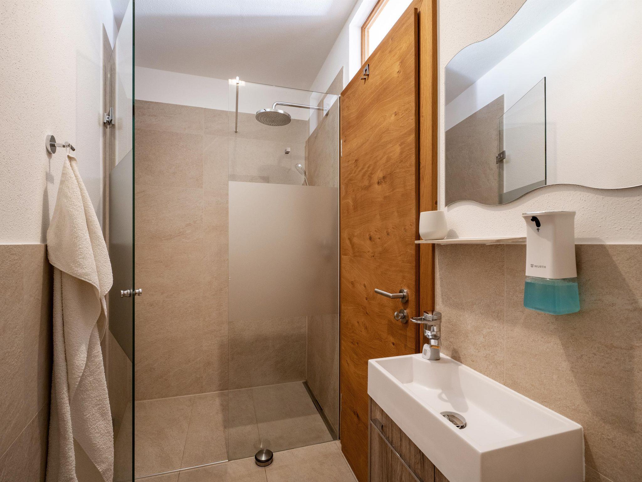 Das neu gebaute 65 m² große Appartement befindet sich am Fuße der Hohe Salve in sonnenverwöhnter Hanglage, die 4 Elemente finden sich wieder in der luftigen Aussicht vom Wohnzimmer über die Bergwelt der Kitzbüheler Alpen. Das Haus wurde mit der Rückseite in den Hang gebaut und wird mit einer Erdwärmepumpe (Strom aus 100% erneuerbarer Energiequelle) betrieben.