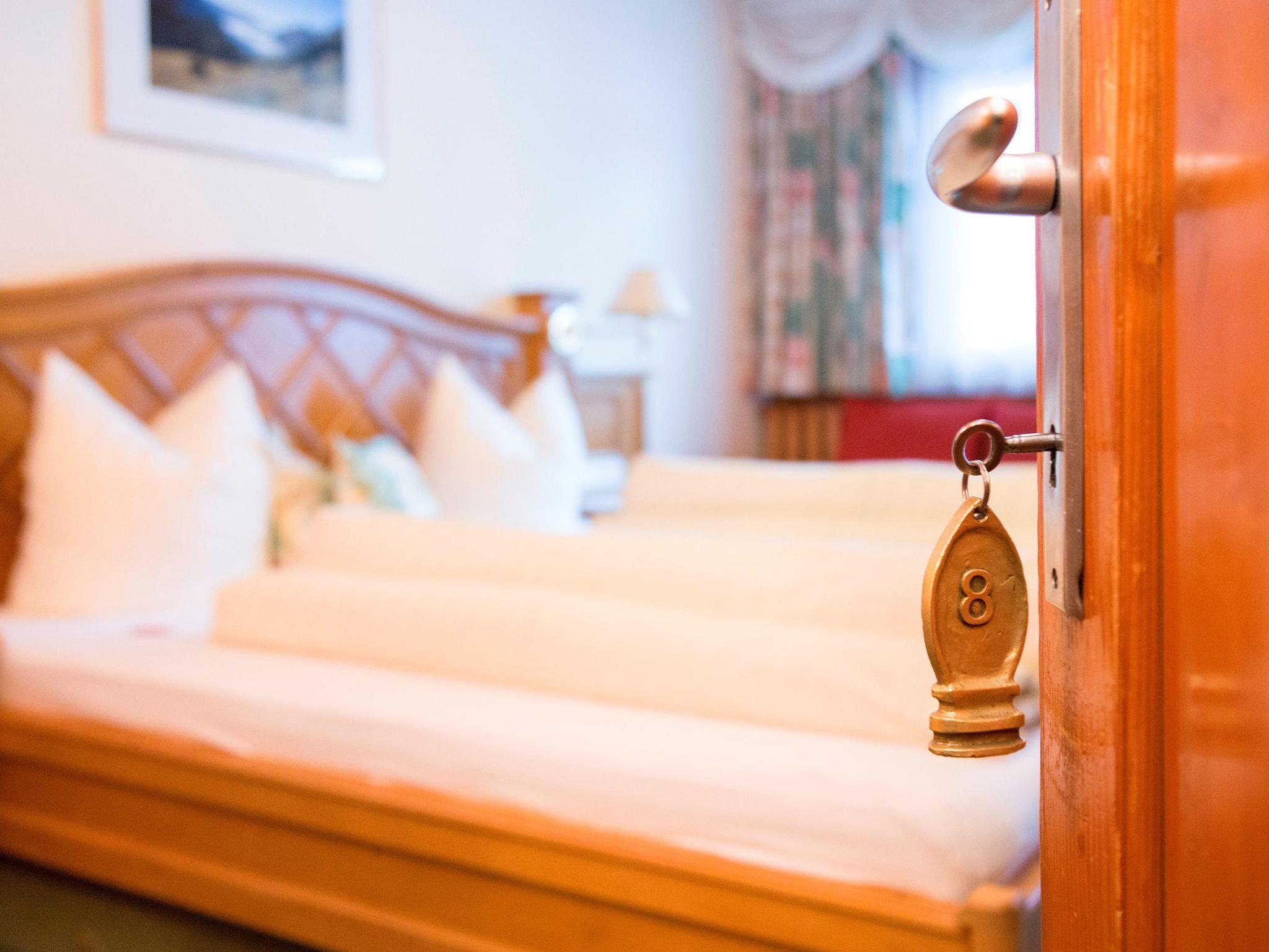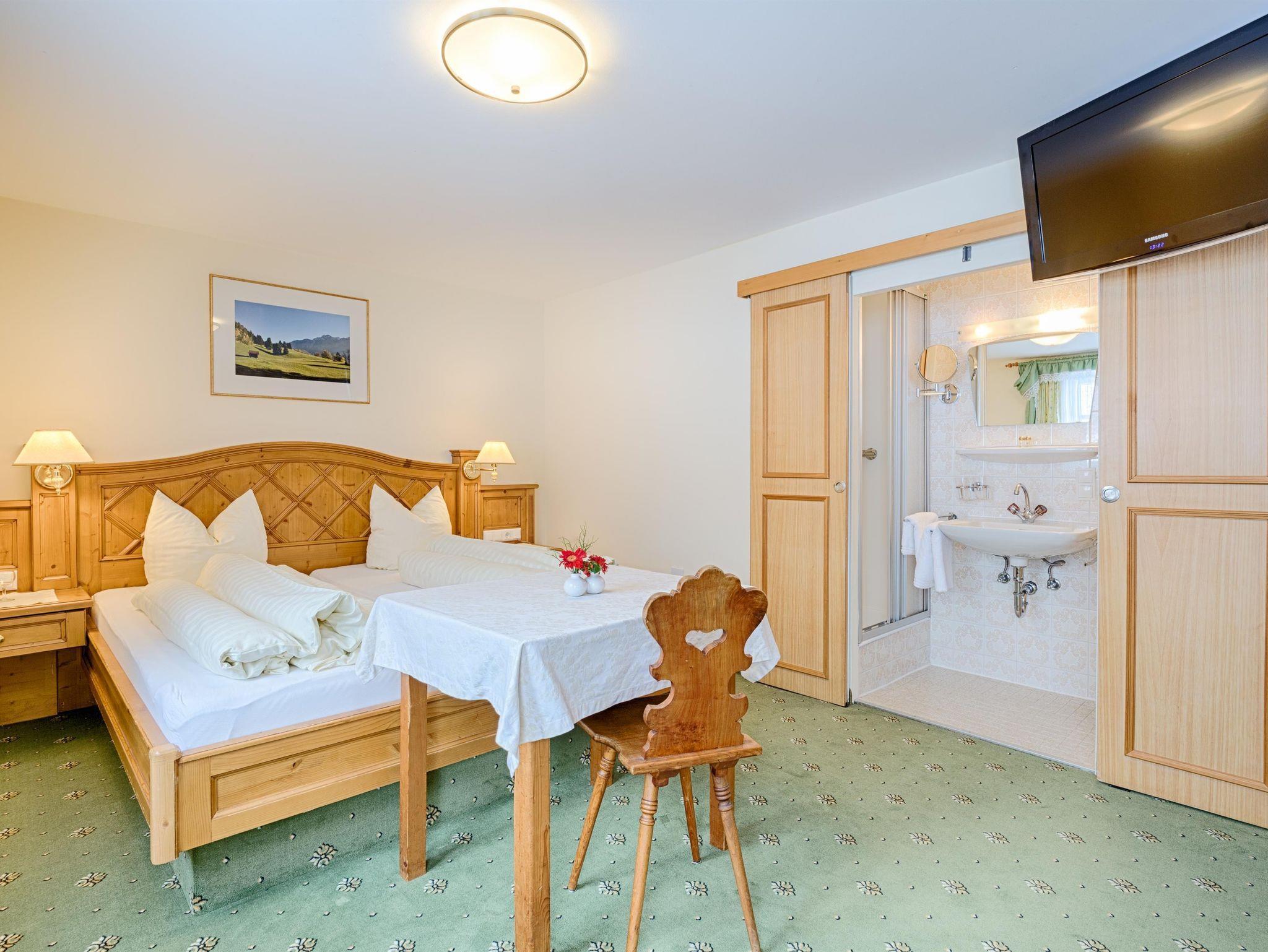 Zwei- oder Dreibettzimmer Arlberg mit Dusche, WC, Fön, SAT-TV, W-LAN, Selbstwahltelefon, Safe und teilweise Balkon