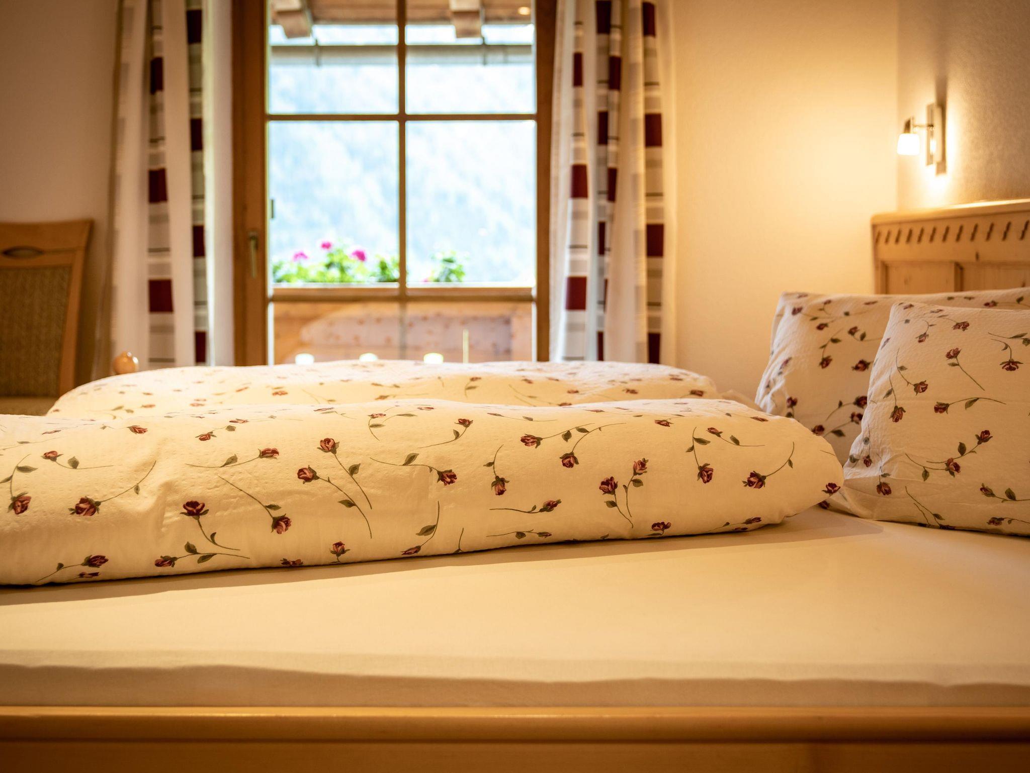 Das Apartment Kreuzspitze für bis zu 3 Personen bietet ein Schlafzimmer mit 1 Doppelbett und 1 Einzelbett, West-Balkon, eine voll ausgestattete Küche, SAT/TV-Digital, Telefon und kostenloses WLAN im gesamten Haus.