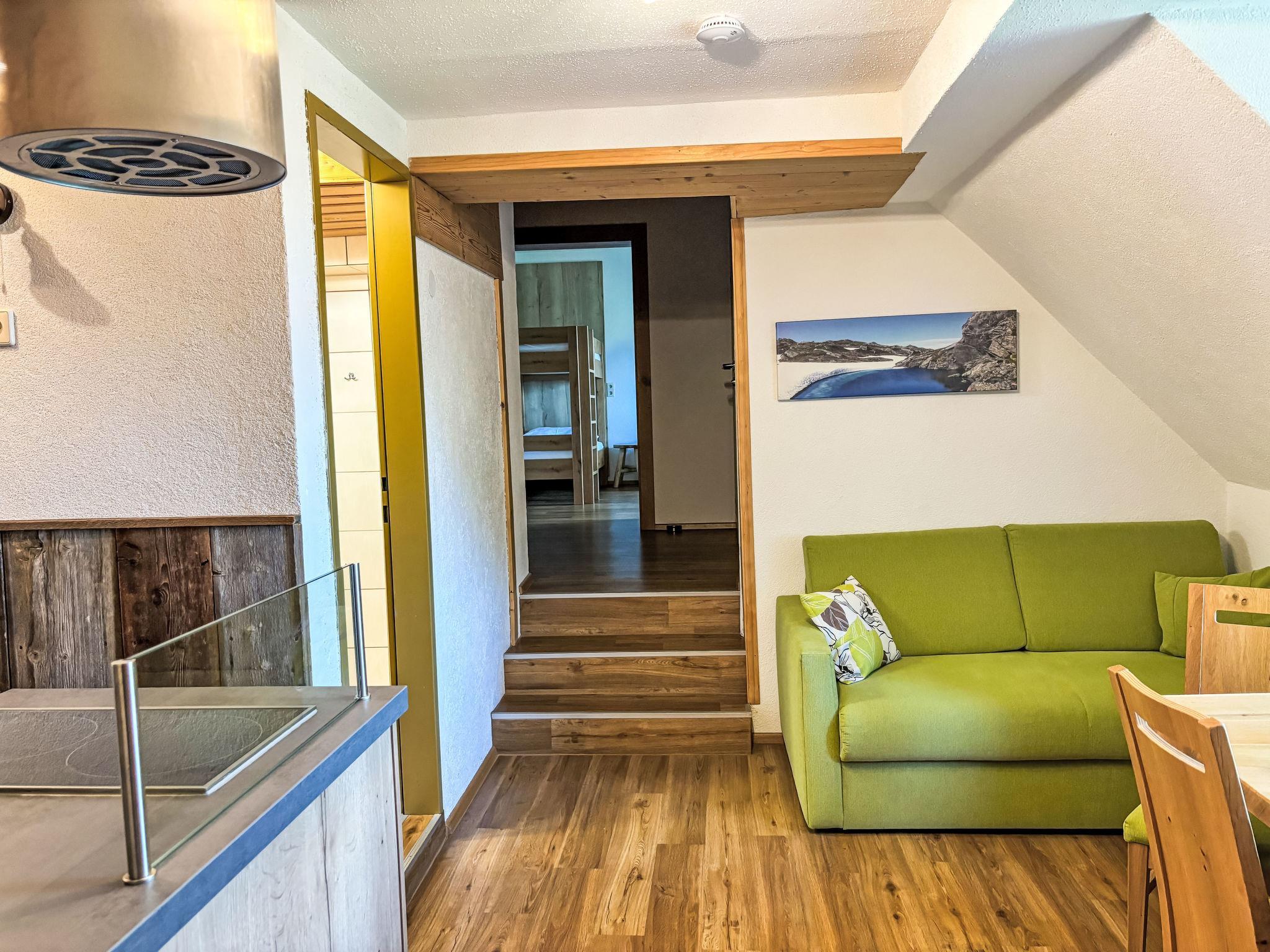 "Donnersbach", 3-room apartment 65 m2 on 2nd floor. Object suitable for 4 adults + 2 children. Partly with sloping ceilings, cosy furnishings: living/dining room with dining table, satellite TV and international TV channels (flat screen). 1 room with 1 sofabed, 1 double bed, satellite TV and international TV channels (flat screen). 1 room with 1 bed and 1 x 2 bunk beds. Small kitchenette (oven, 2 ceramic glass hob hotplates, toaster, kettle, microwave, electric coffee machine). Shower, 2 sep. WC's, double hand-basin. Heating. Parquet floors. Facilities: Internet (WiFi, free). Please note: non-smokers only. Maximum 1 pet/ dog allowed.