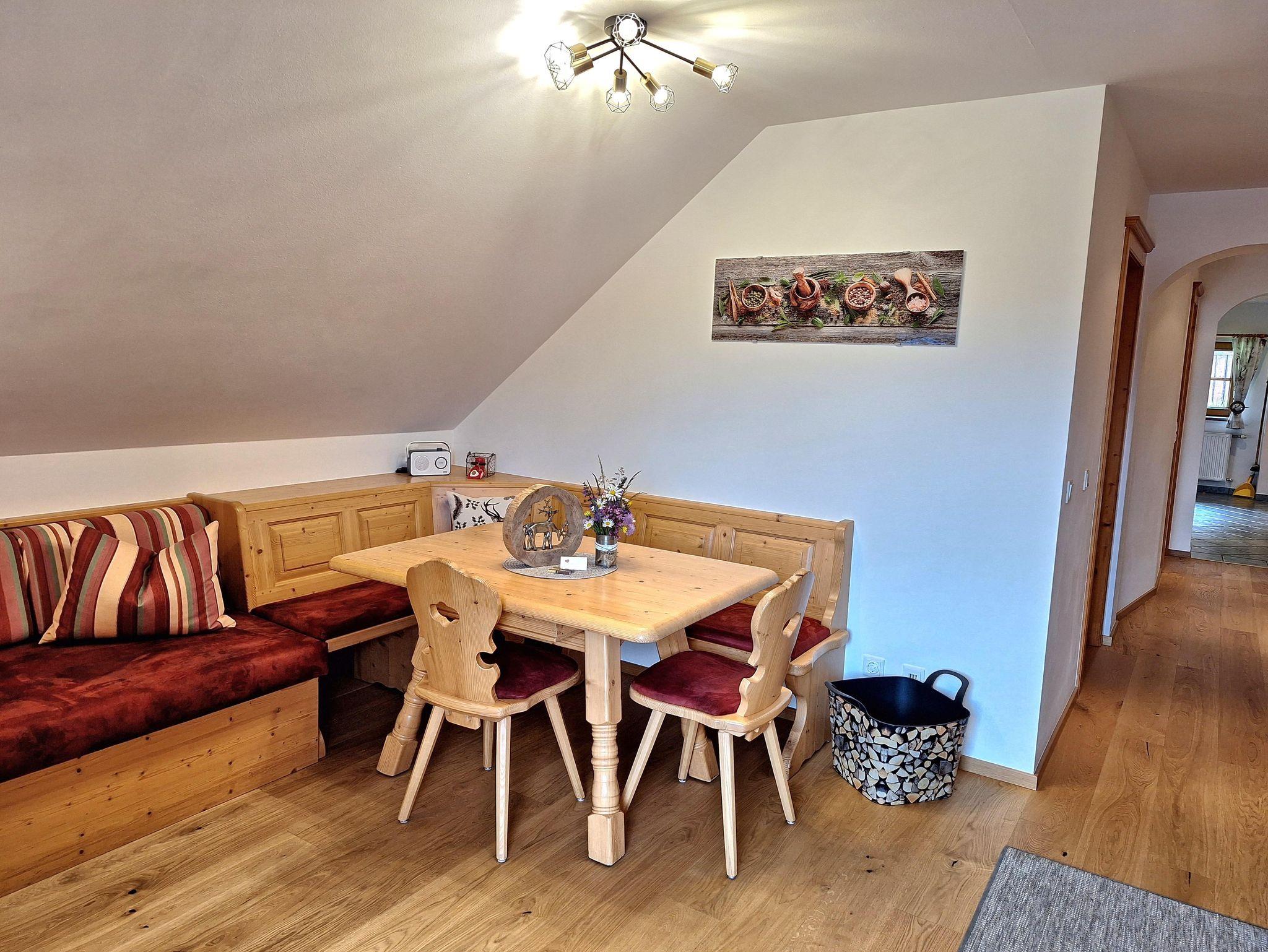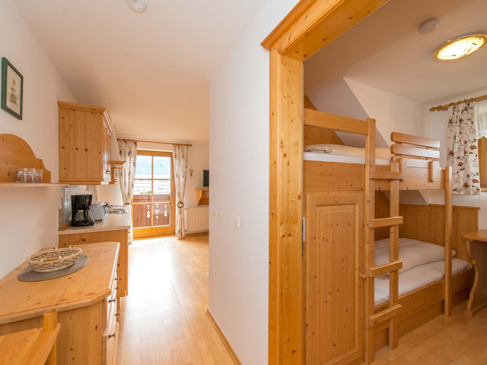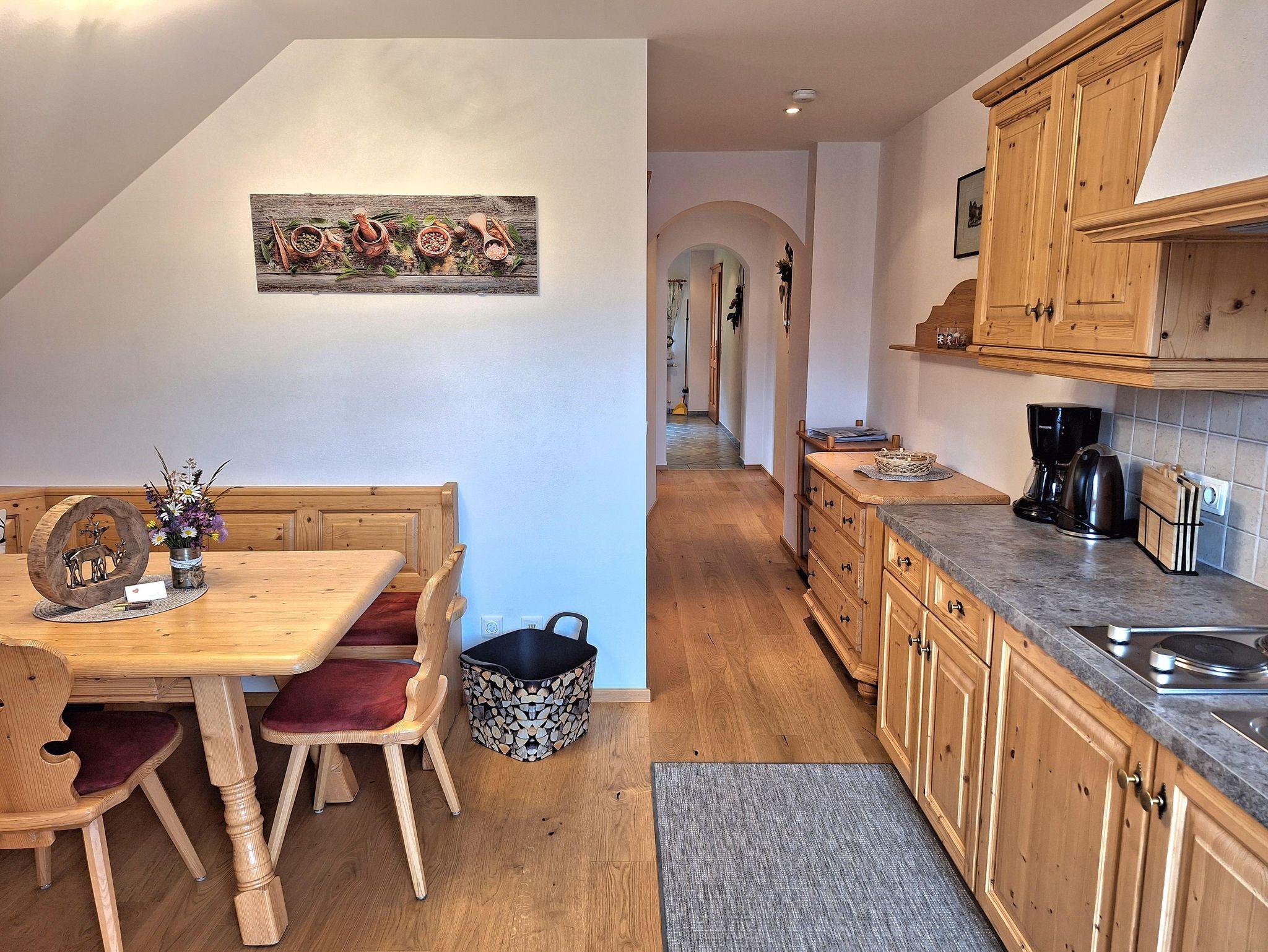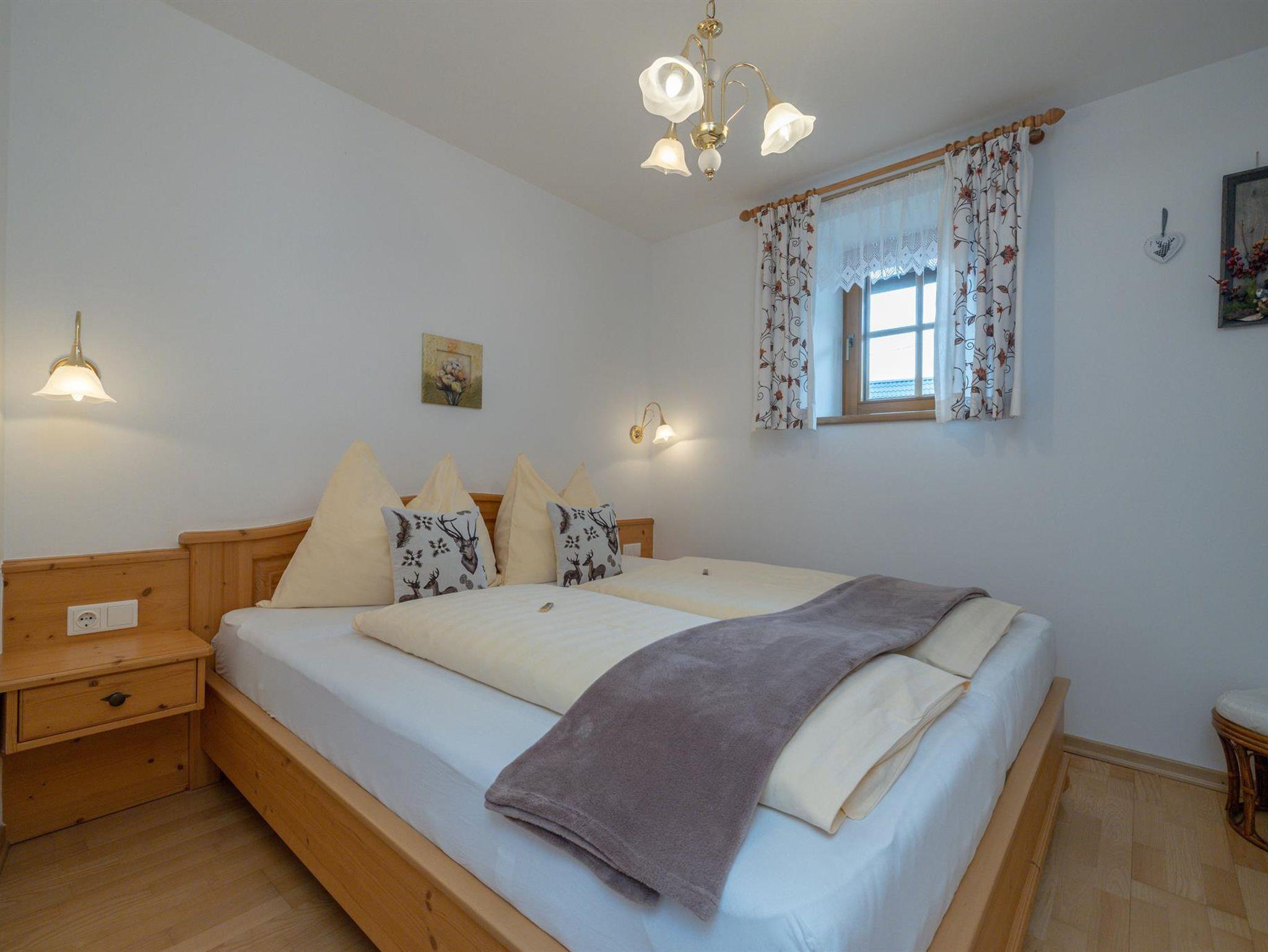 Liebevoll eingerichtete Ferienwohnung 55m² mit 2 getrennten Schlafzimmern, Südbalkon, Parkettböden, helle Holzmöbel, Du und WC getrennt, Vorraum mit Garderobe, voll ausgestattete Küche mit Geschirrspüler, Radio, Sat-Tv, W-lan kostenlos, Bettwäsche, Handtücher und Geschirrtücher inklusive.