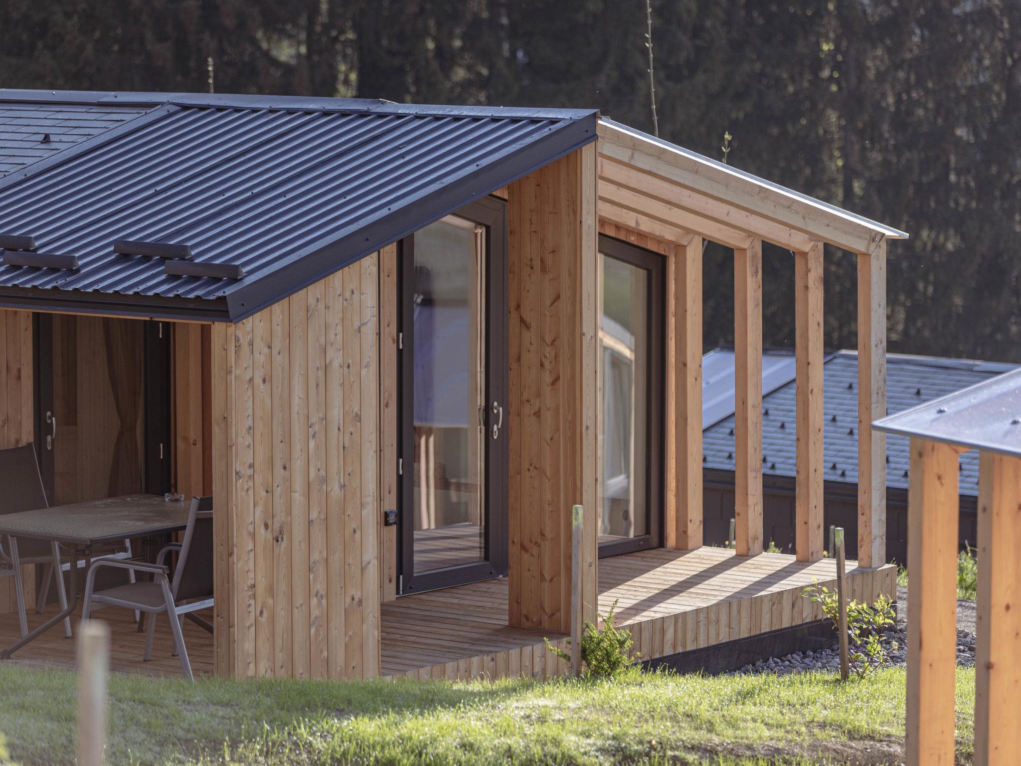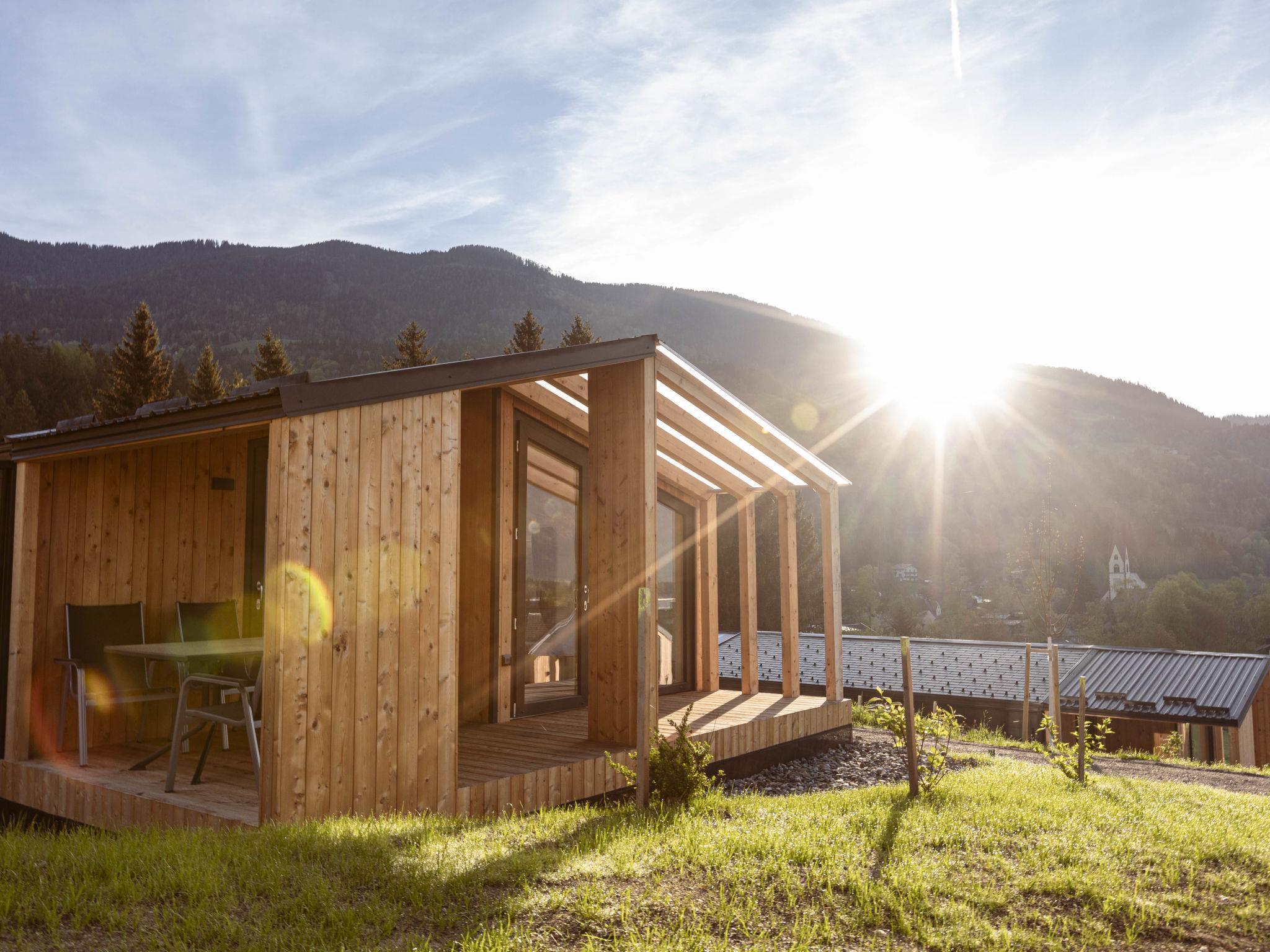 Kötschach-Mauten: Car free modern resort "Chalets/Glamping Nassfeld by AlpsR.", 700 m a.s.l.. 500 m from the centre, in a sunny position on a slope, directly by the skiing area. For shared use: children's playground. In the complex: reception, kiosk. Parking. E-charging station. Supermarket 850 m. Golf course (18 hole) 20 km, skisport facilities, ski rental 200 m. Well-known ski regions can easily be reached: Nassfeld 25 km. Well-known lakes can easily be reached: Pressegger See. Hiking paths: Nassfeld-Pressegger See. The holiday properties may differ in living space, floorplan, equipment and furnishing.