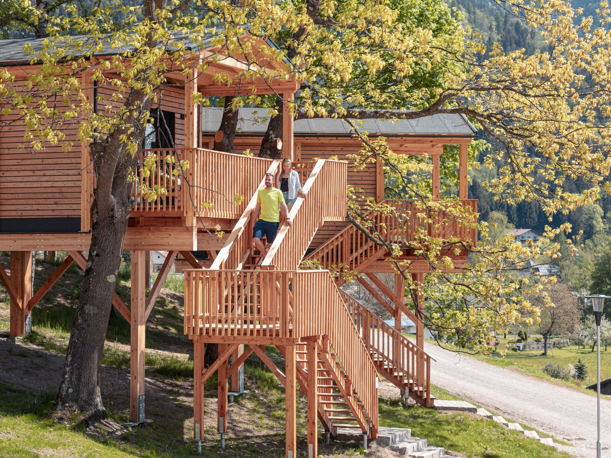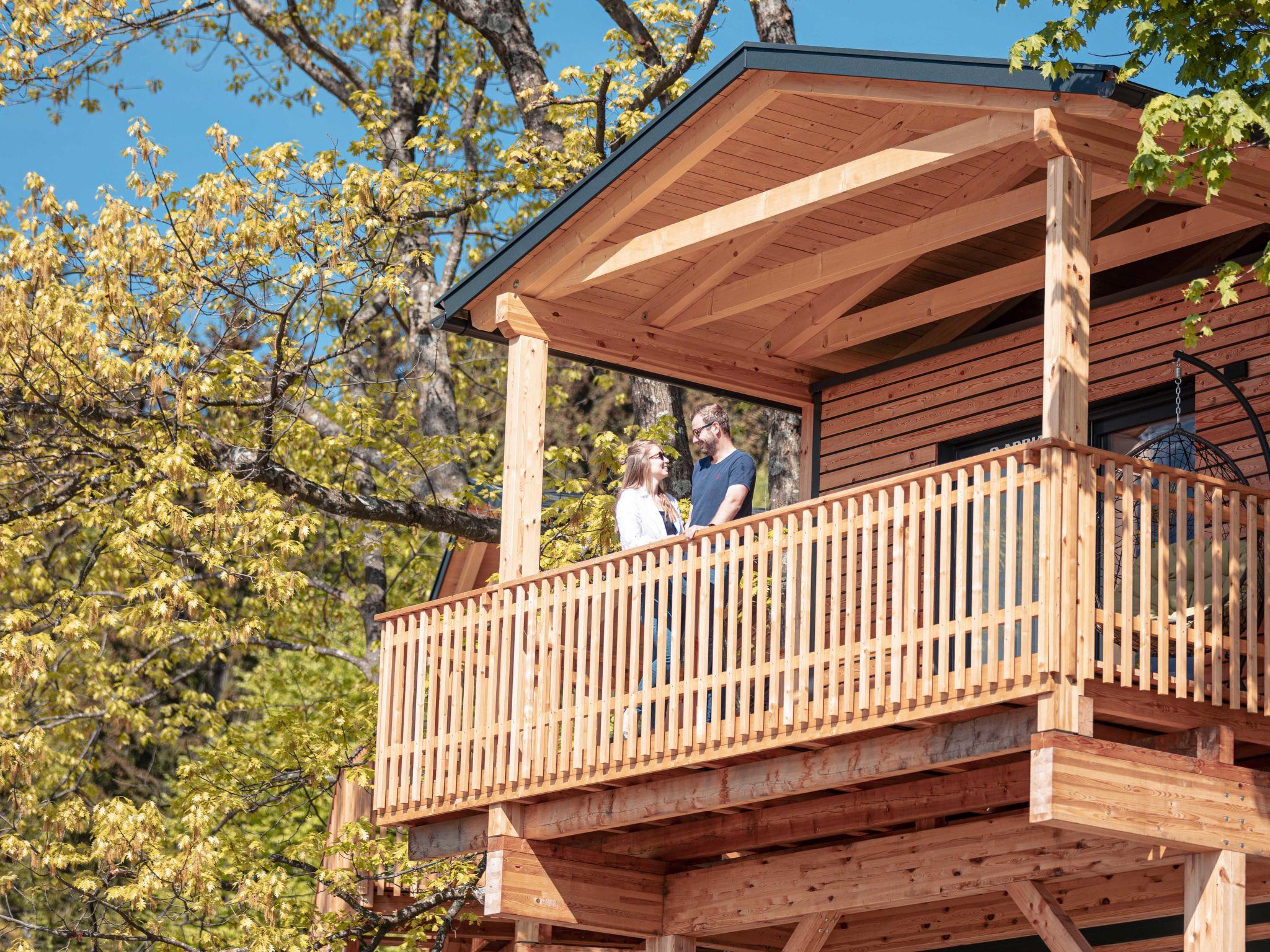 "Premium Baumhaus mit 1 Schlafzimmer", 2-room house 23 m2. Bright, tasteful and cosy furnishings: living/dining room with dining table, satellite TV and flat screen. 1 double bedroom. Open kitchen (oven, dishwasher, 4 ceramic glass hob hotplates, toaster, kettle, microwave, electric coffee machine). Shower/WC. Heating. Small terrace. Terrace furniture. Very beautiful view of the mountains and the resort. Facilities: Internet (WiFi, free). Please note: non-smokers only. The property is one of a type of property or apartment.