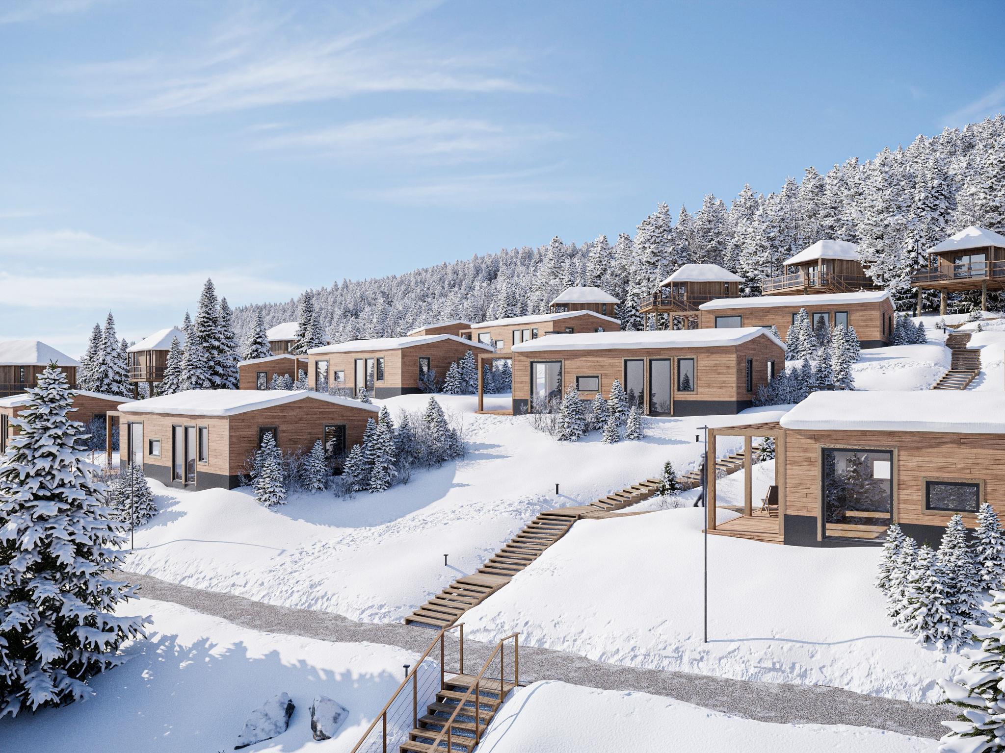 Kötschach-Mauten: Car free modern resort "Chalets/Glamping Nassfeld by AlpsR.", 700 m a.s.l.. 500 m from the centre, in a sunny position on a slope, directly by the skiing area. For shared use: children's playground. In the complex: reception, kiosk. Parking. E-charging station. Supermarket 850 m. Golf course (18 hole) 20 km, skisport facilities, ski rental 200 m. Well-known ski regions can easily be reached: Nassfeld 25 km. Well-known lakes can easily be reached: Pressegger See. Hiking paths: Nassfeld-Pressegger See. The holiday properties may differ in living space, floorplan, equipment and furnishing.
