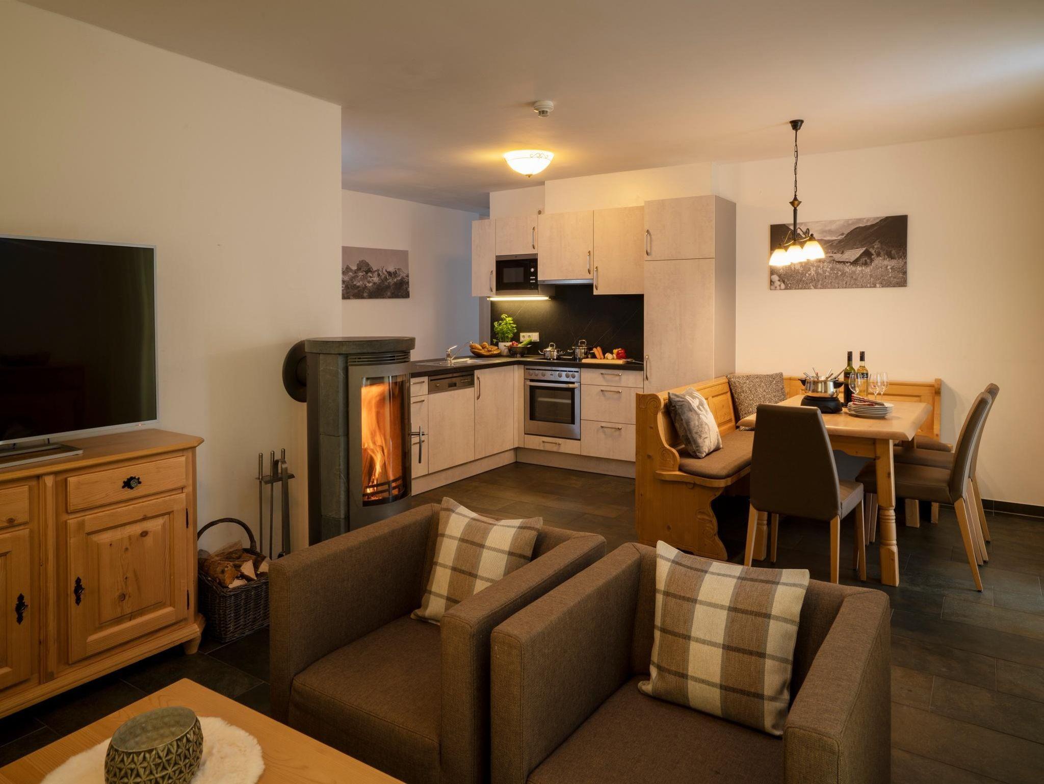 Teilweise sind die Apartments mit einer privaten Sauna und Kaminofen ausgestattet. Die Wohnungen verfügen über 1-4 Schlafzimmer und sind zwischen 46m² und 160m² groß.