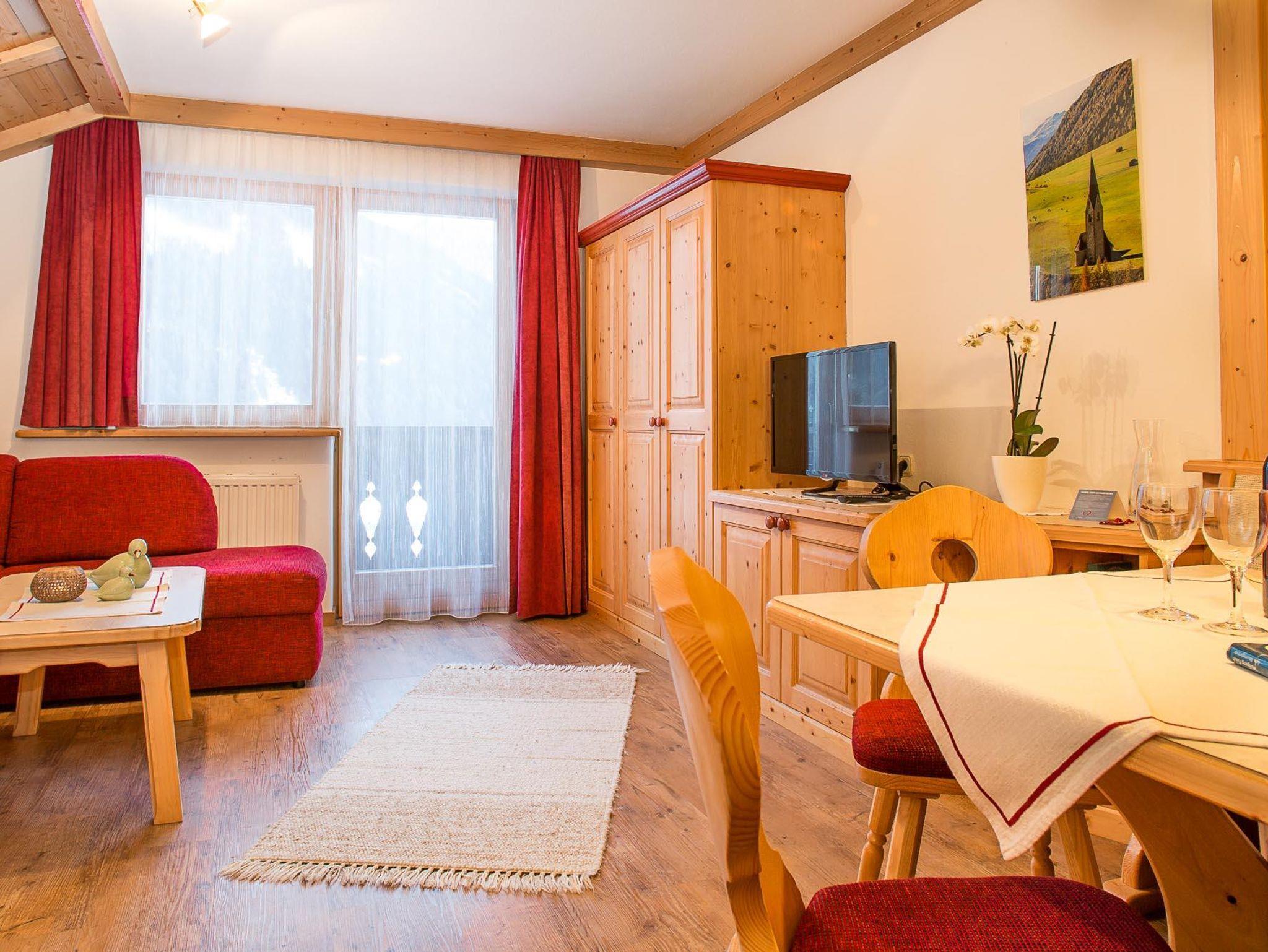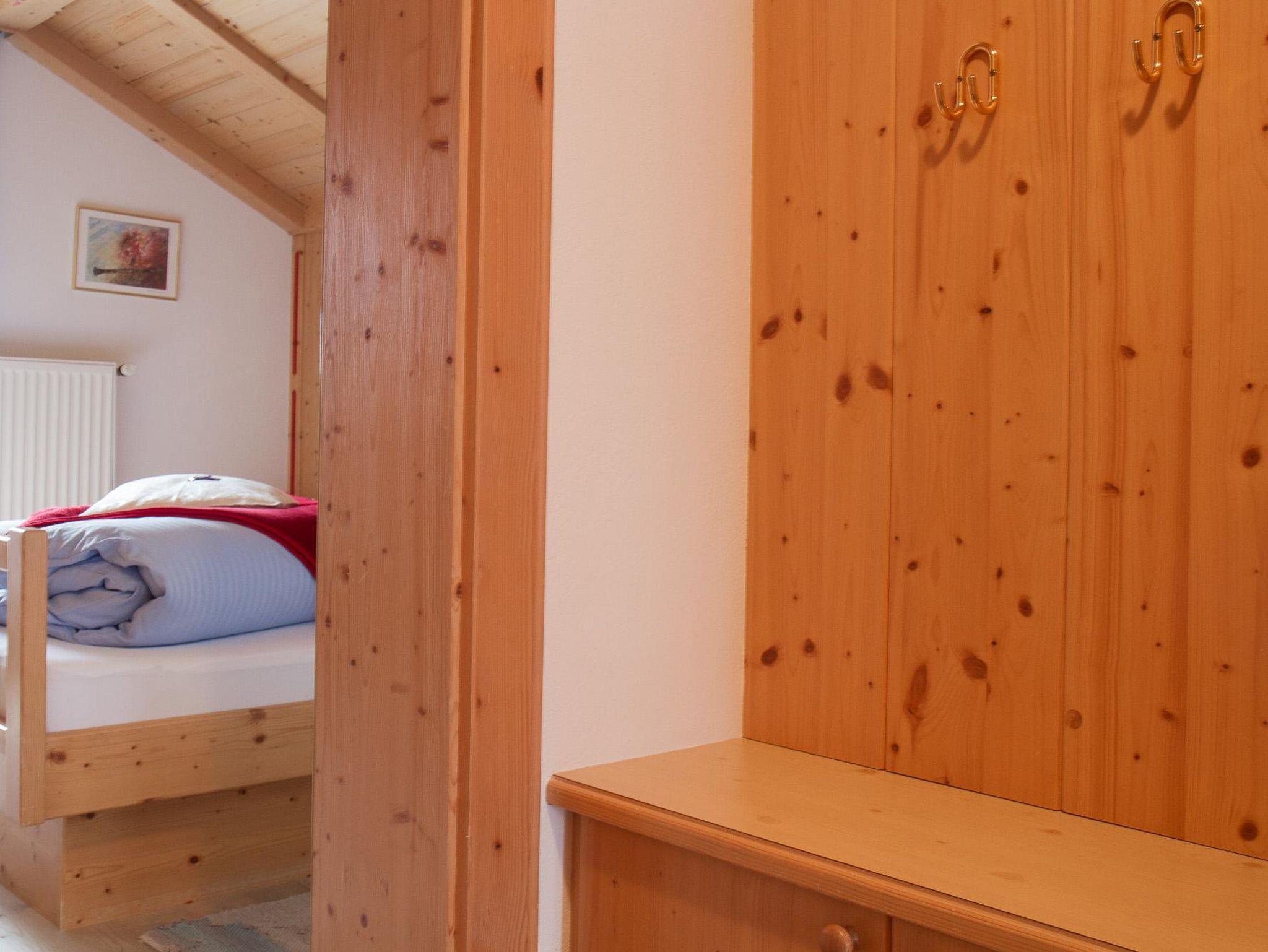 Vorraum mit Garderobe, ein Schlafzimmer mit Doppelbett, zusätzlich Gitterbett möglich, Wohnraum mit zwei Schlafmöglichkeiten, Badezimmer mit Dusche, separate Toilette, kleine Küche, Balkon. Kinderermäßigung! Schi und Schuhraum, Brötchenservice, W-Lan