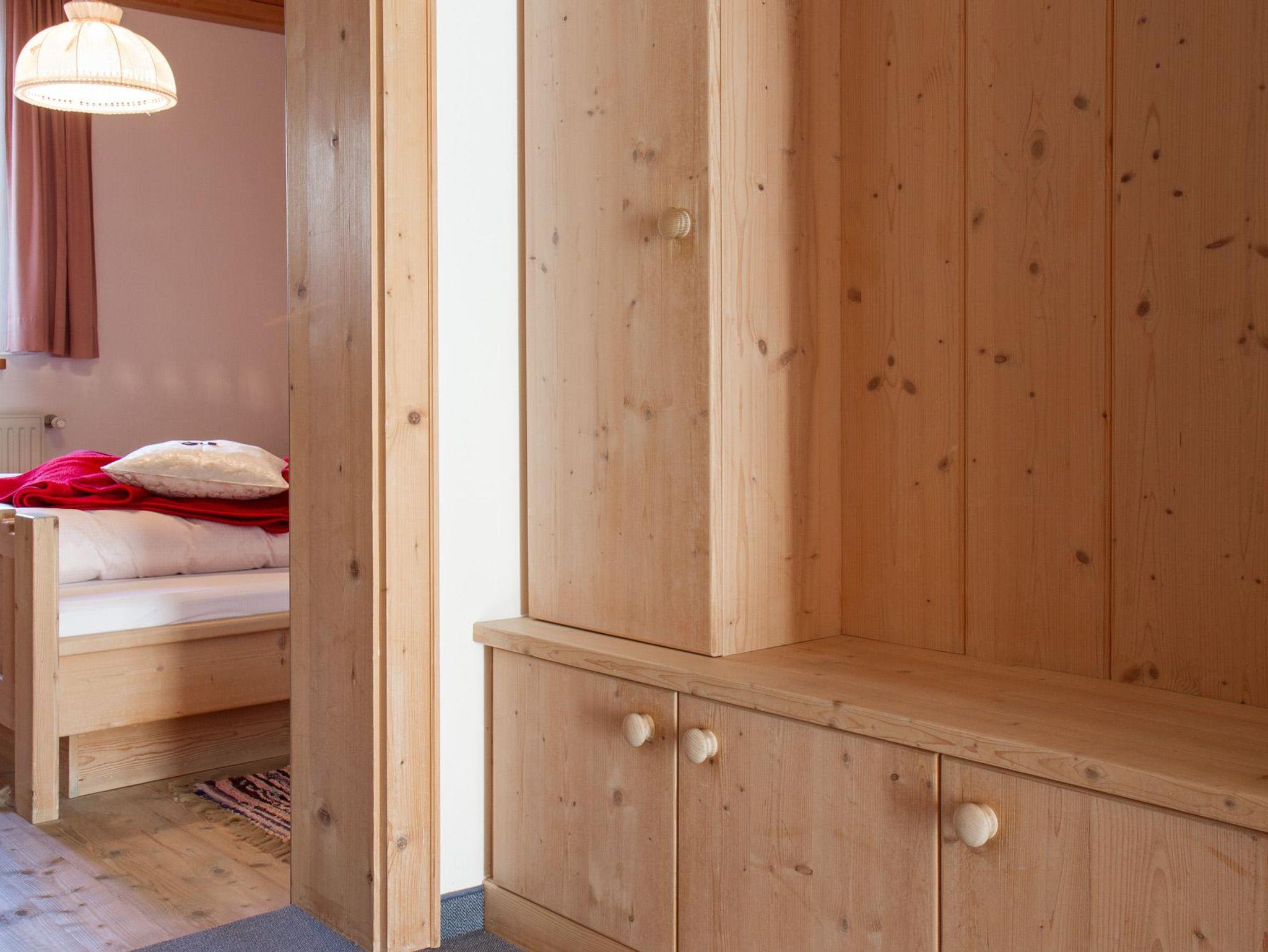 Vorraum mit Garderobe, ein Schlafzimmer mit Doppelbett, zusätzlich Gitterbett möglich, Wohnraum mit zwei Schlafmöglichkeiten, Badezimmer mit Dusche, separate Toilette, kleine Küche, Balkon. Kinderermäßigung! Schi und Schuhraum, Brötchenservice. W-Lan