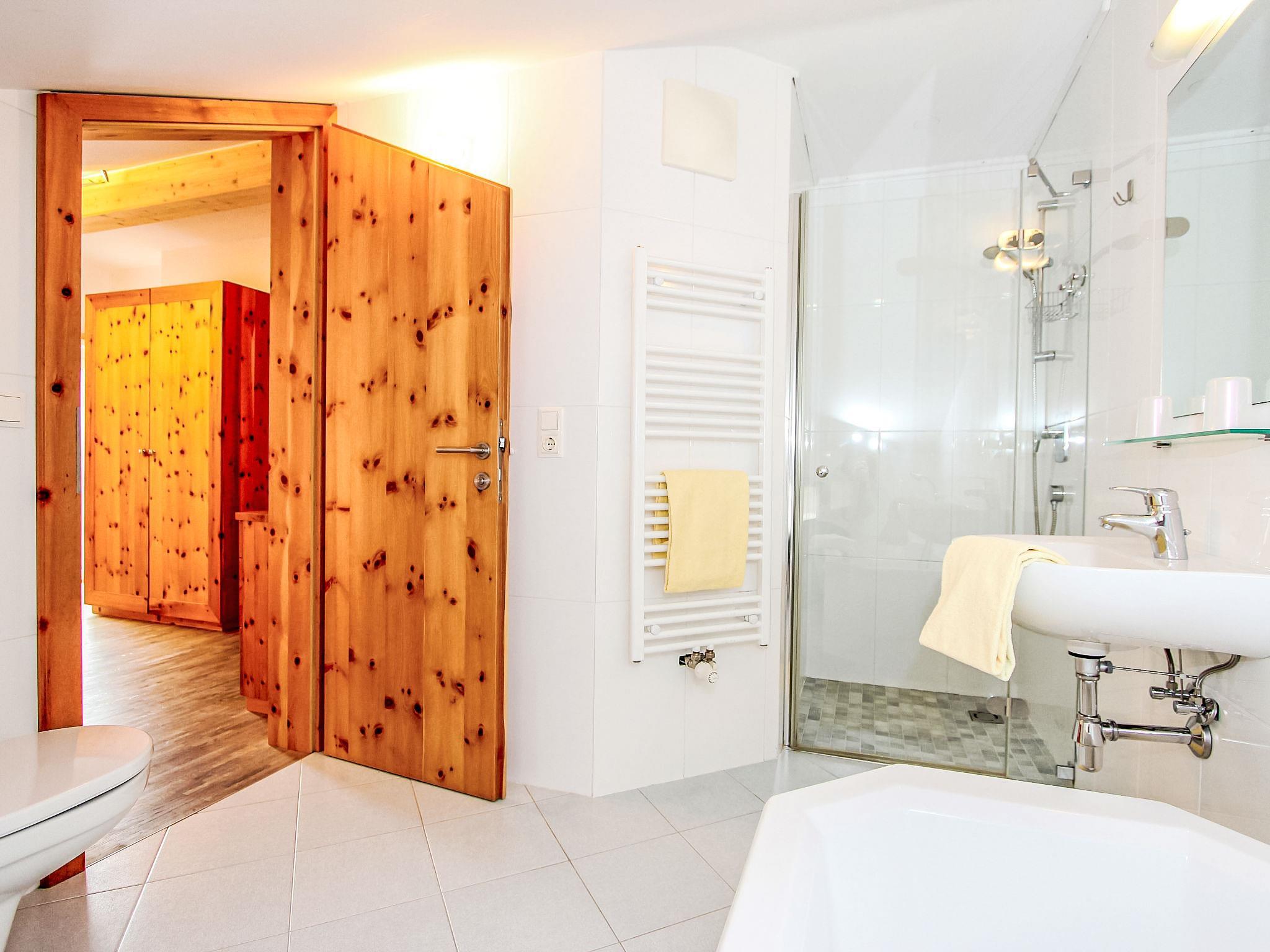 5-room apartment 140 m2 on 2nd floor. Spacious, partly with sloping ceilings, very comfortable and tasteful furnishings: entrance hall. 2 double bedrooms, each room with shower/WC. 1 double bedroom with Dressing room with shower/WC. Exit to the balcony. 1 double bedroom with bath/shower/WC. Exit to the balcony. Large living room with satellite TV (flat screen). Exit to the terrace. Large, open kitchen (oven, dishwasher, 4 ceramic glass hob hotplates, microwave, freezer, electric coffee machine) with dining nook. Sep. WC. Balcony, terrace. Terrace furniture. Marvellous view of the mountains and the countryside. Facilities: Internet (WiFi, extra). Beautiful apartment with a beautiful terrace. All rooms are made of pine.