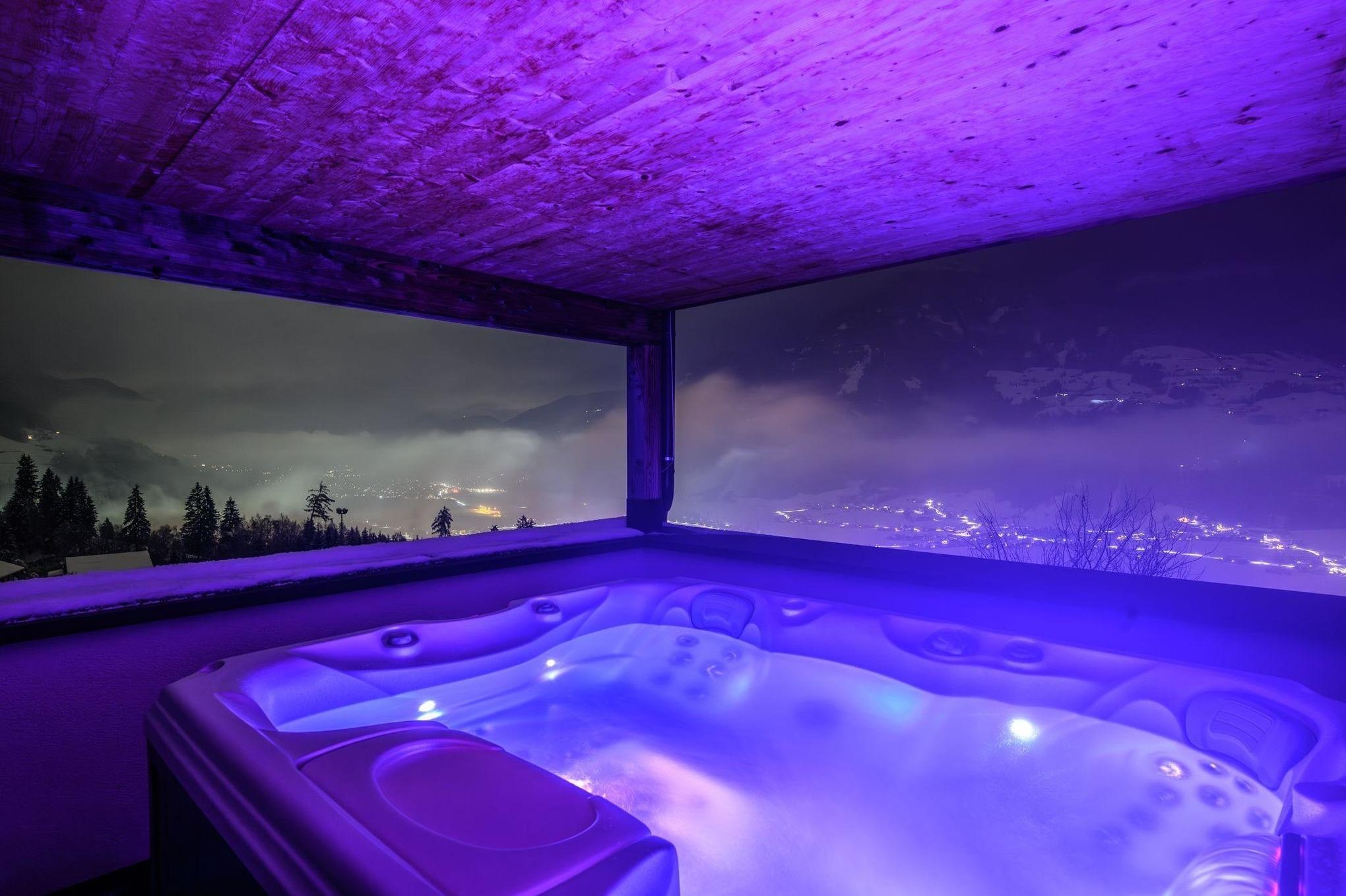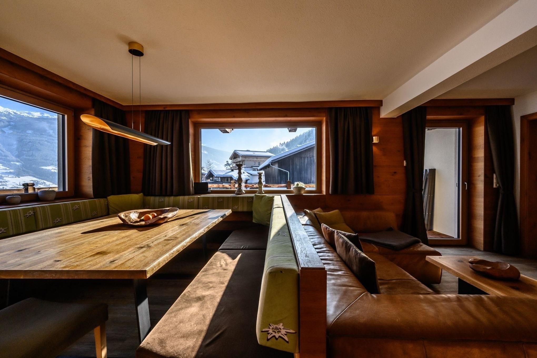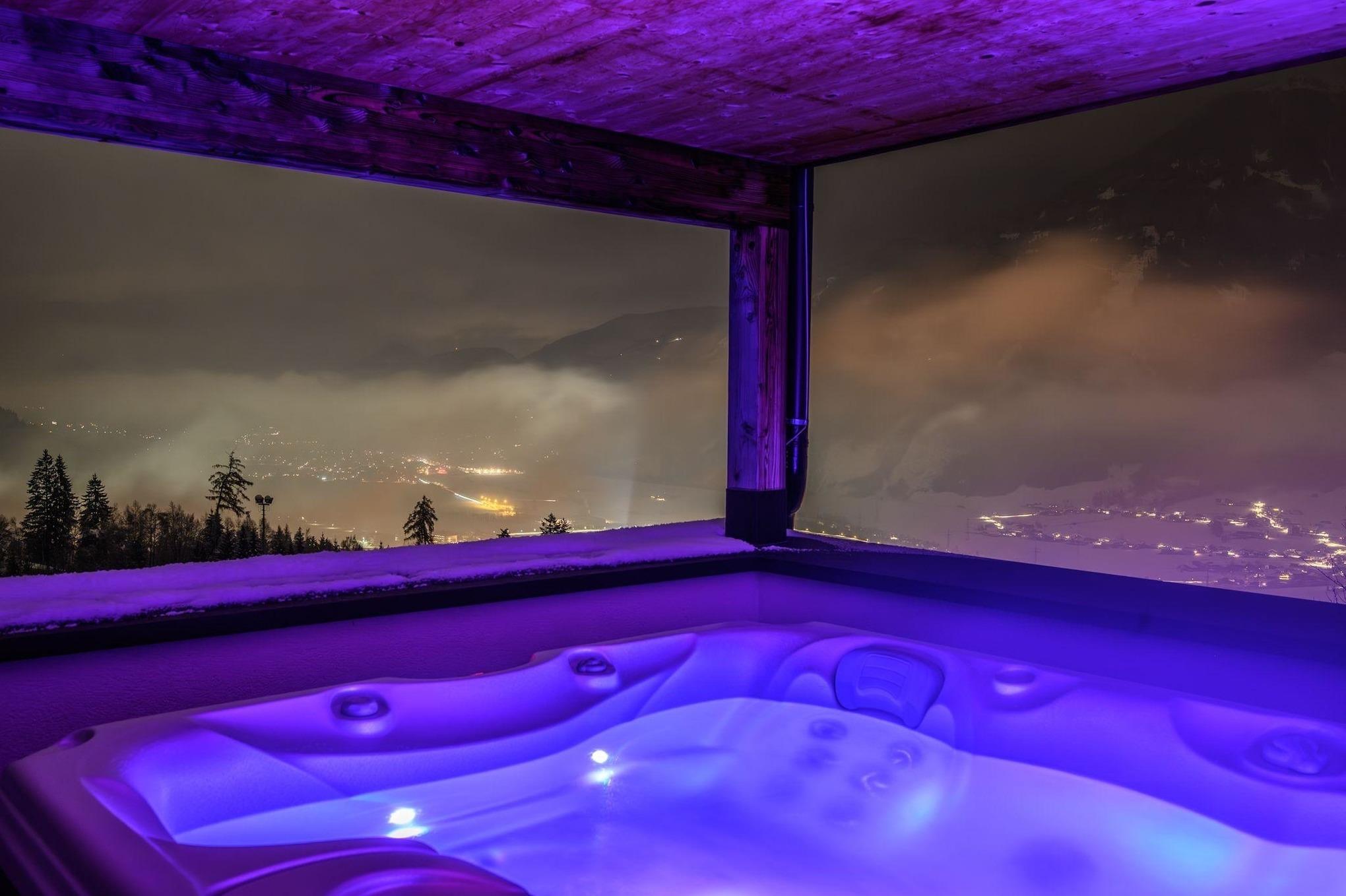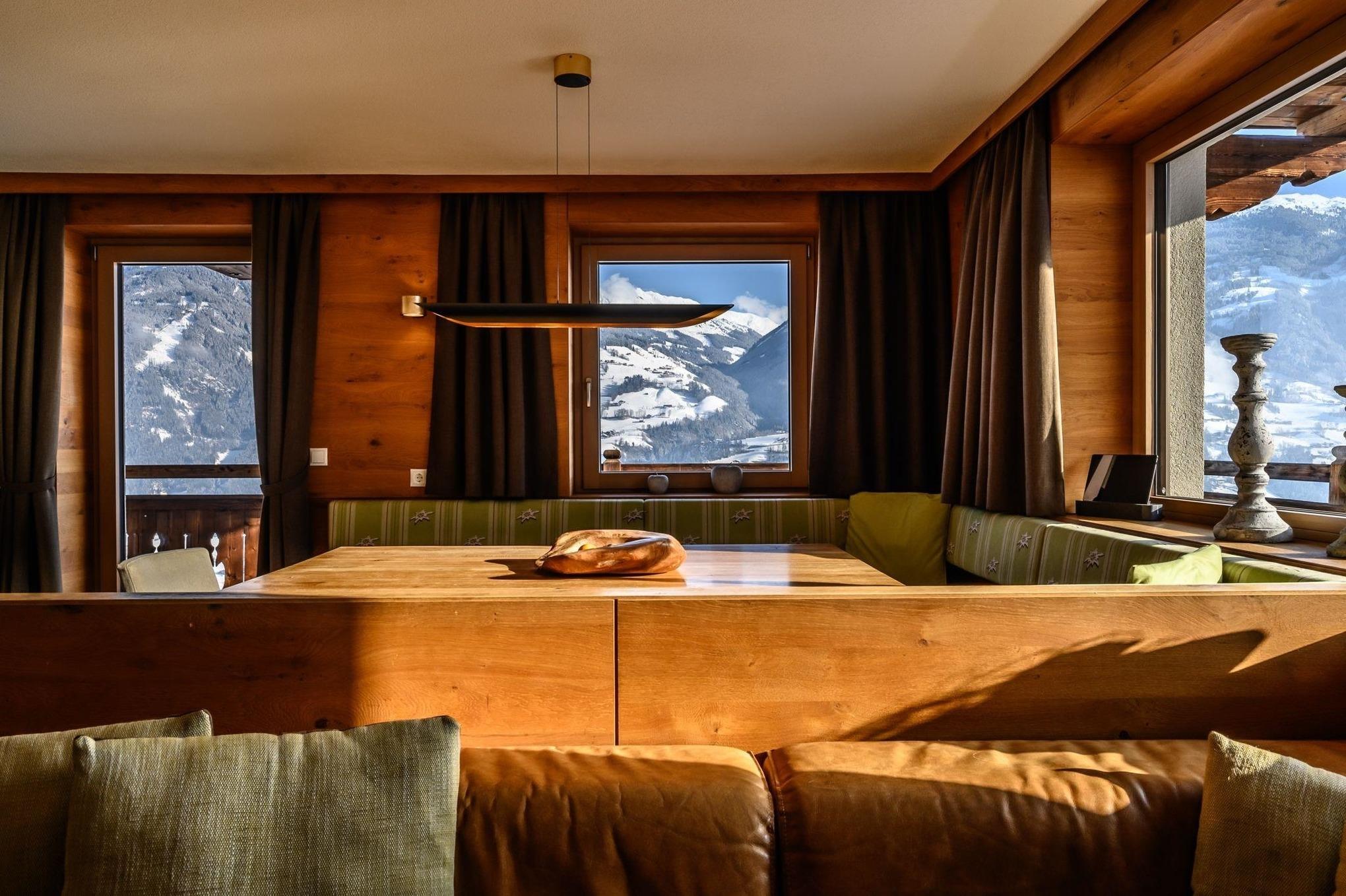 Ein großer Balkon bieten Ihnen die freie Sicht auf die Bergwelt des Zillertales. Vom Balkon aus können Sie es sich im Whirlpool so richtig gemütlich machen und die Bergwelt bei einem Glas Wein bestaunen.