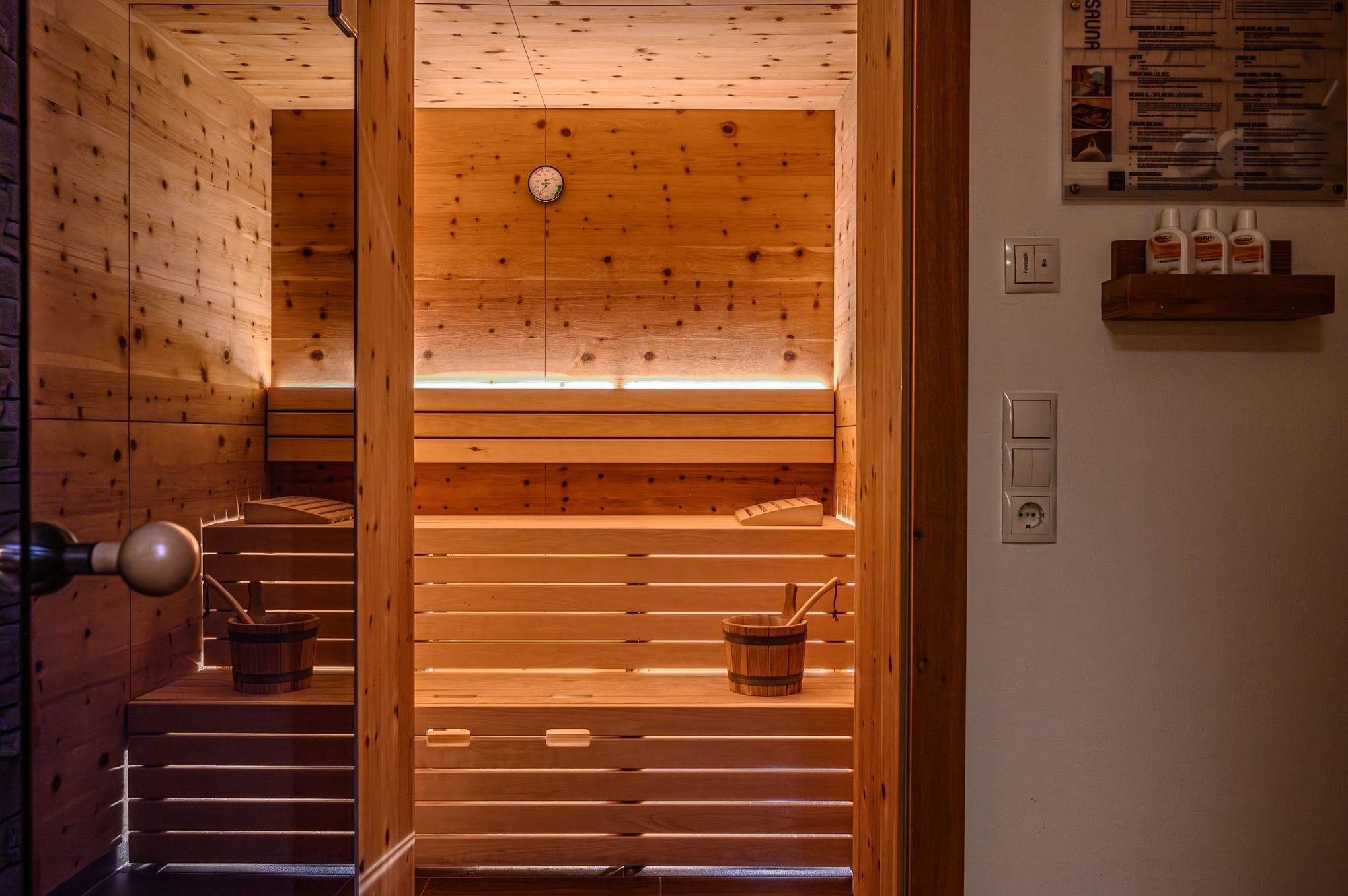In der Wohnung finden Sie zur privaten und kostenlosen Nutzung eine Sauna mit Finnisch- und Biobetrieb in duftendem Zirbenholz, ein große Terrasse mit einem Outdoor-Whirlpool.