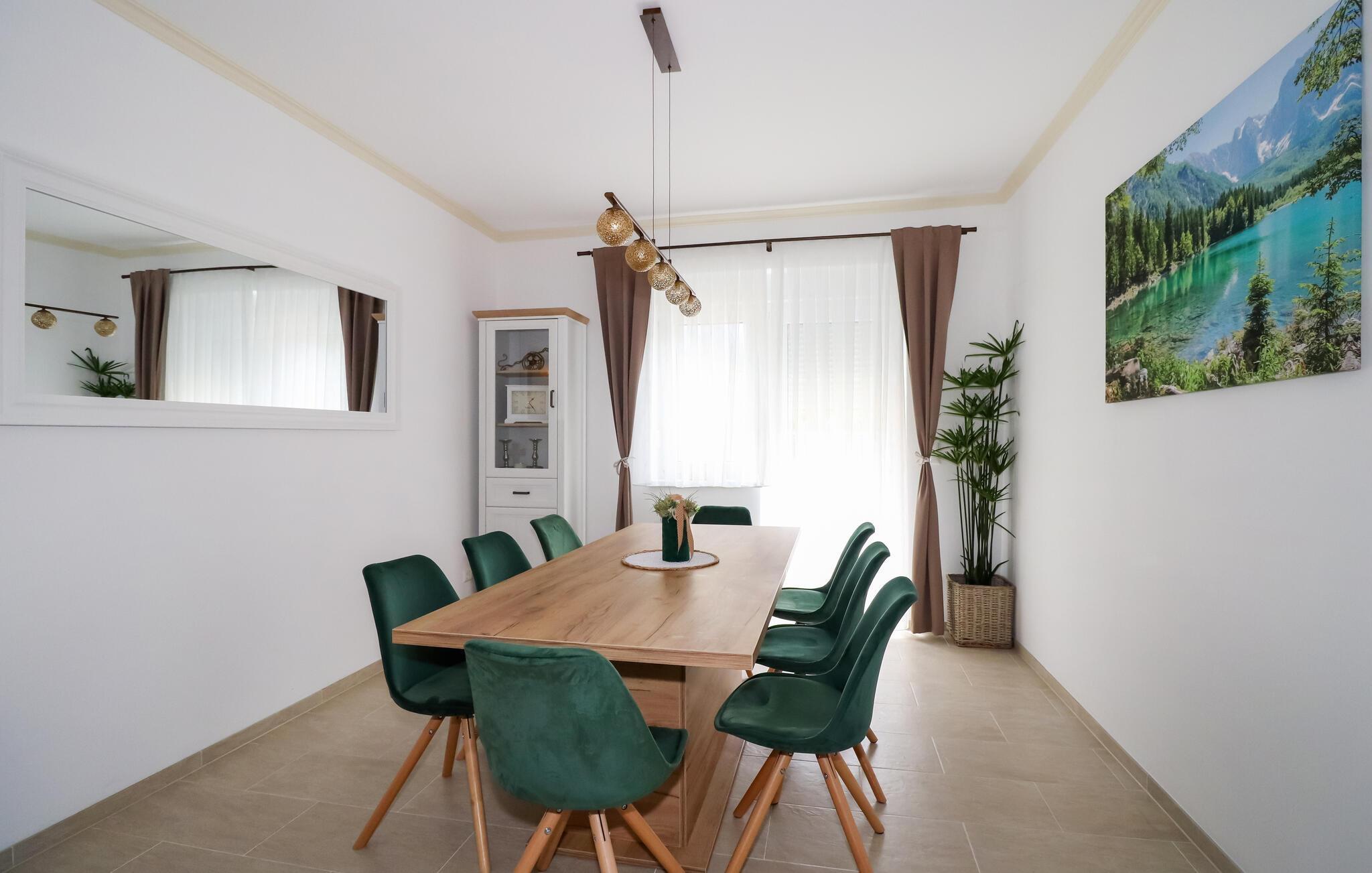 Dette moderne kvalitetshus byder jer velkommen med en lys og venlig atmosfære, der inviterer til afslapning og velvære. Vinduerne fylder rummene med dagslys og byder samtidig på en smuk udsigt over den omgivende natur. Opholds- og spisestuen er det perfekte sted til fælles måltider og hyggelige aftener. Smid benene op, og saml familien til en filmaften. Den indhegnede have giver sikkerhed og plads til, at børnene kan lege og tumle.