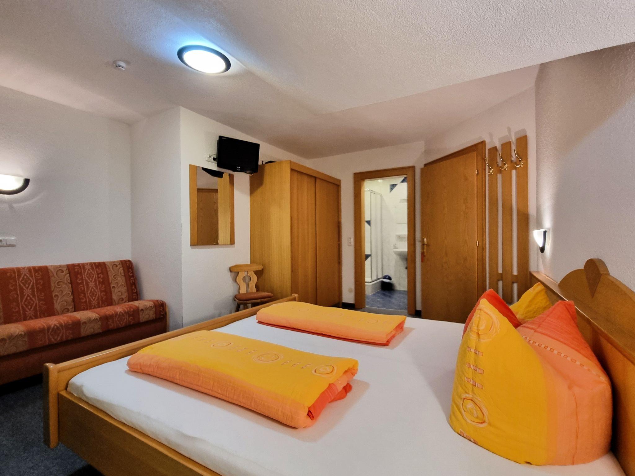 "Apart Birgit", 5-room apartment 130 m2 on 3rd floor. Bright, comfortable furnishings: large living room with dining table, dining nook and satellite TV. Exit to the balcony. 1 room with 1 bed, 1 double bed, shower/WC and TV. 1 room with 1 bed, 1 sofabed, 1 double bed, shower/WC and TV. Exit to the balcony. 1 room with 1 sofabed, 1 double bed, shower/WC and TV. Exit to the balcony. 1 room with 1 x 2 bunk beds, 1 double bed, shower/WC and TV. Exit to the balcony. Open kitchen (oven, dishwasher, 4 ceramic glass hob hotplates, toaster, kettle, microwave, freezer, electric coffee machine). 2 balconies, south facing position and west facing position, terrace, north facing position. Terrace furniture, balcony furniture, barbecue. Beautiful view of the mountains and the valley. Facilities: safe. Internet (WiFi, free). Please note: non-smokers only. Smoke alarm, fire extinguisher.