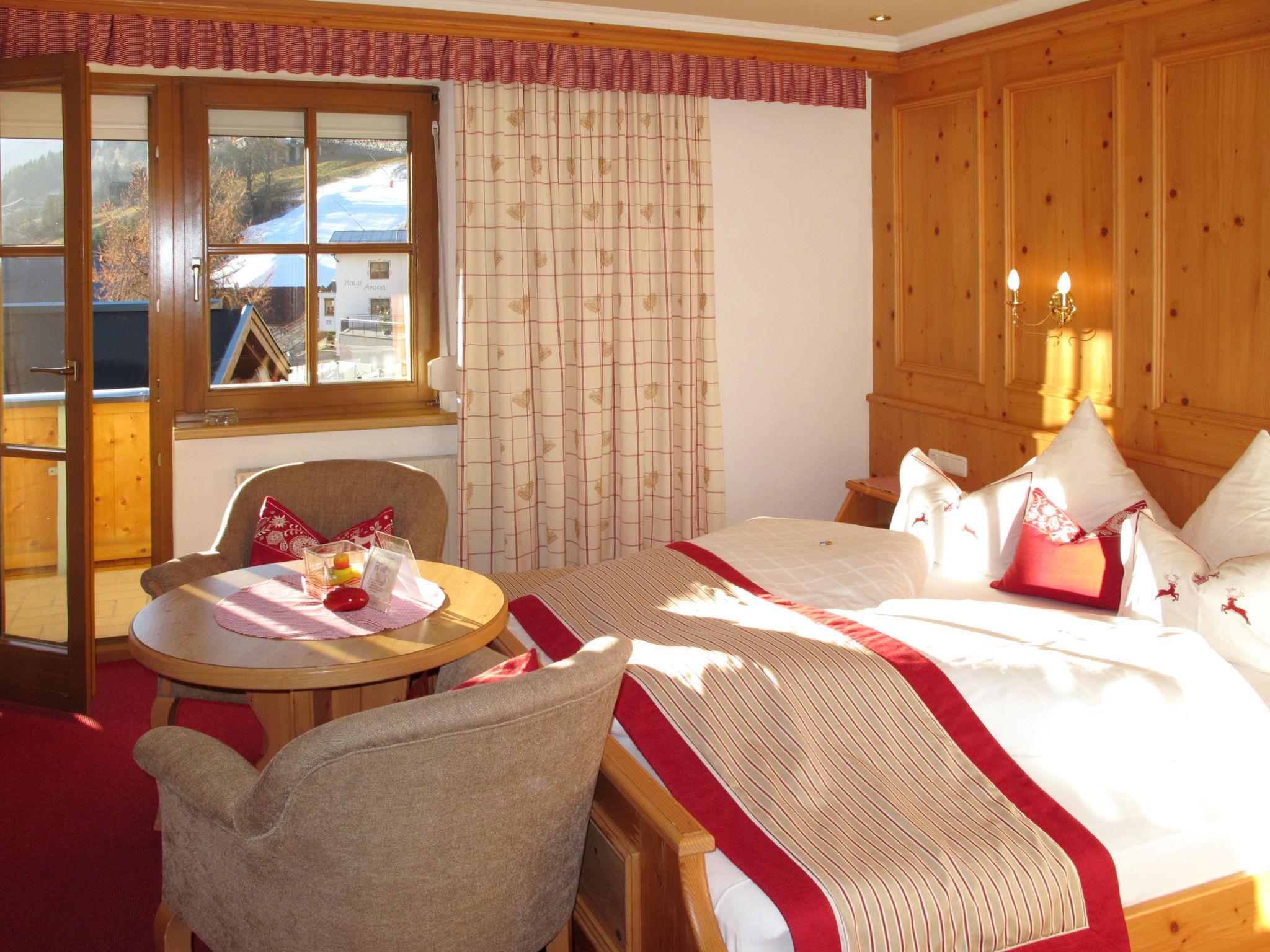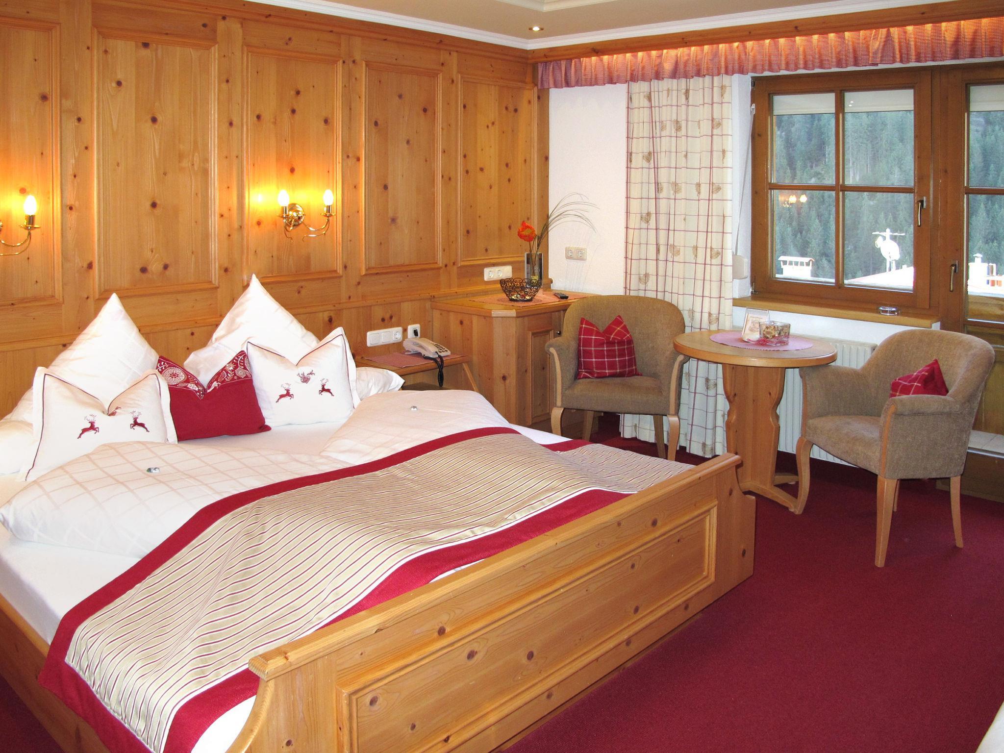 "Apart Garni Royal", 4-room apartment 70 m2 on 2nd floor. Cosy and wooden furniture furnishings: 1 double bedroom with hand-basin and satellite TV. 1 room with 2 beds. 1 double bedroom with shower/WC and satellite TV. Exit to the balcony. Kitchen-/living room (oven, dishwasher, 4 ceramic glass hob hotplates, kettle, electric coffee machine) with dining table, satellite TV. Exit to the balcony. Shower, sep. WC. Heating. Balcony. Balcony furniture. Beautiful panoramic view of the mountains and the valley. Facilities: safe, baby cot, hair dryer. Internet (WiFi, free). Please note: one double bedroom is outside the apartment. Non-smokers only. Smoke alarm, fire extinguisher.