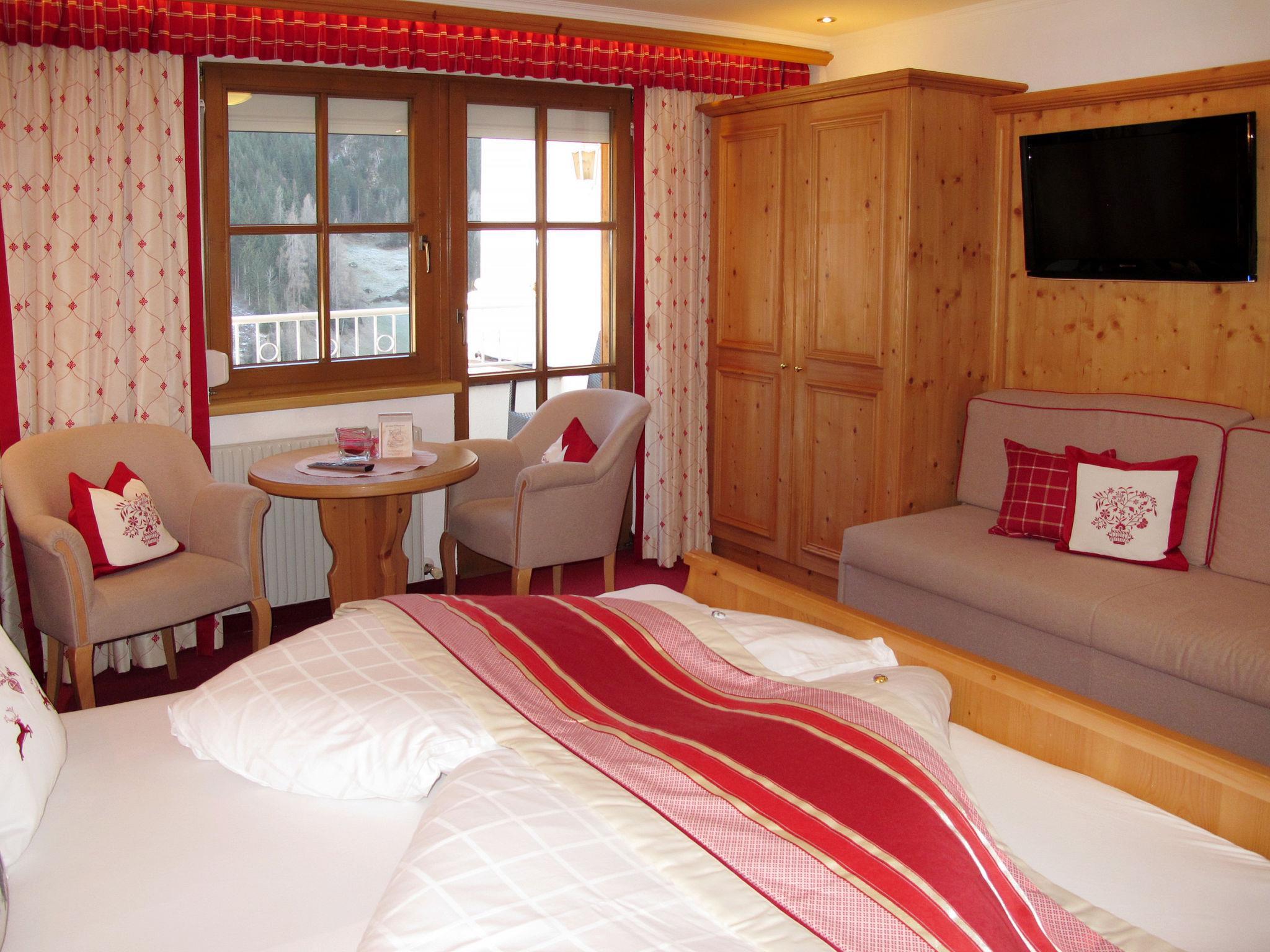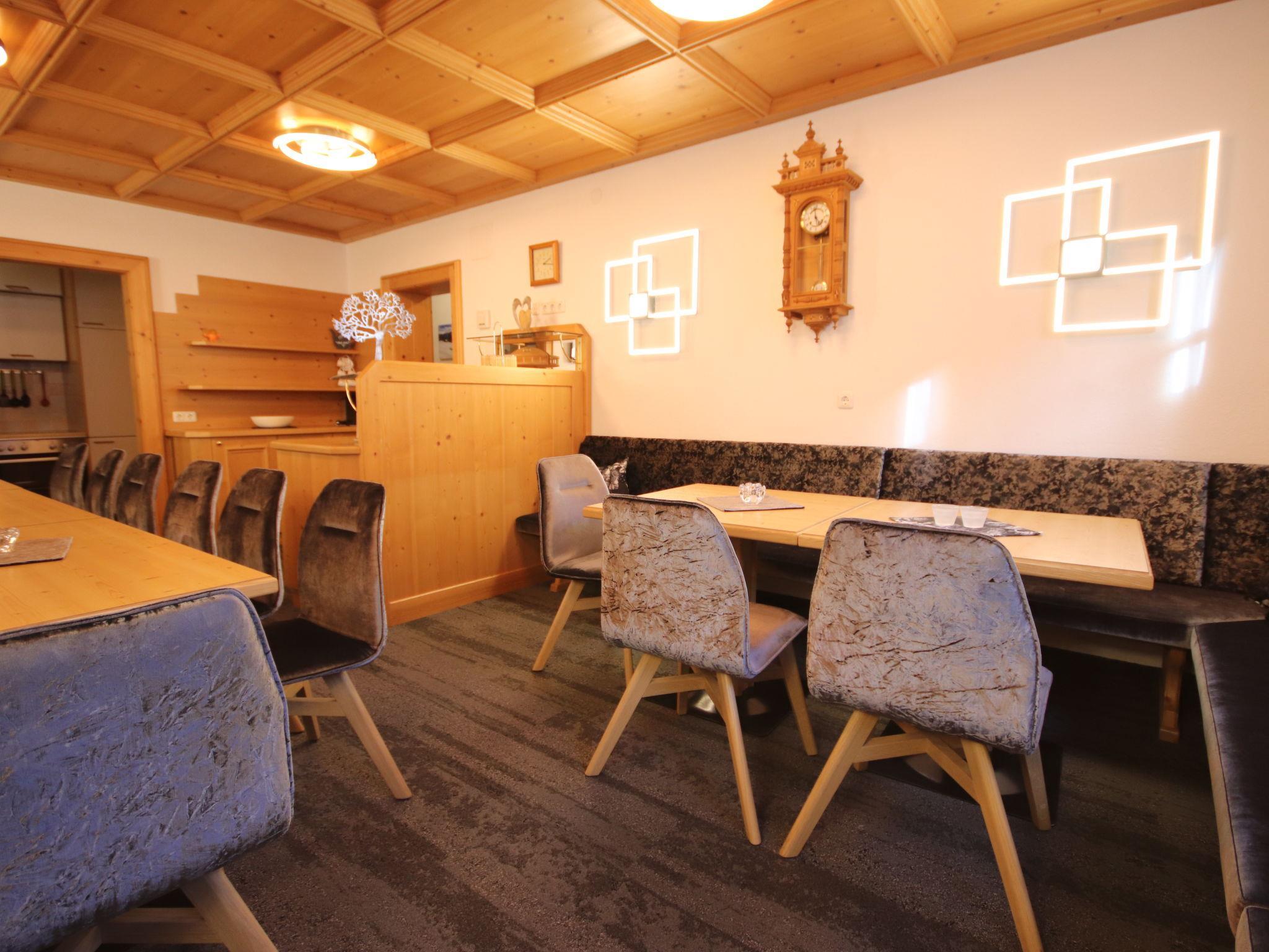 "Apart Garni Royal", 7-room apartment 150 m2 on 3 levels. Cosy and wooden furniture furnishings: on the lower ground floor: dining room with dining table and satellite TV. Open kitchen (4 hot plates, oven, dishwasher, toaster, kettle, electric coffee machine). Sep. WC. Upper floor: 2 double bedrooms, each room with shower/WC and satellite TV. Exit to the balcony. 1 room with 1 bed, 1 double bed, shower/WC and satellite TV. Exit to the balcony. 2nd upper floor: 2 double bedrooms, each room with shower/WC and satellite TV. Exit to the balcony. 1 room with 1 bed, 1 double bed, shower/WC and satellite TV. Exit to the balcony. Heating. 2 balconies. Balcony furniture. Panoramic view of the mountains and the valley. Facilities: safe, baby cot, hair dryer. Internet (WiFi, free). Please note: non-smokers only. Smoke alarm, fire extinguisher. Note: All rooms are separately accessible from the common hallway and the common staircase.