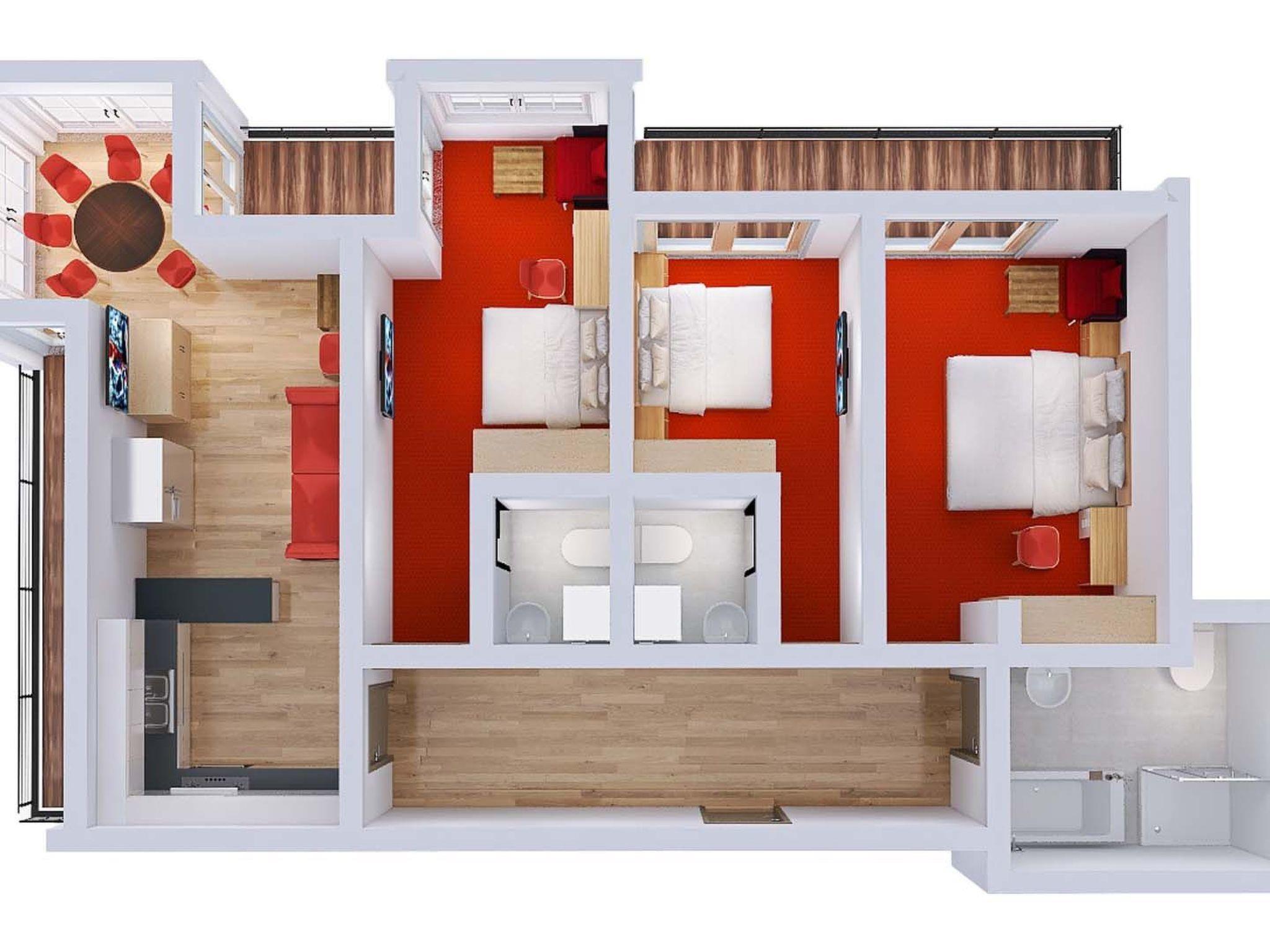 Apartment Panorama Ischgl 301 is suitable for 7 persons. It is furnished to the highest standards: two double bed rooms and one triple bed room. Each of them comes with shower/toilet, television with SAT-TV (partly flat screen), WLAN, telephone and safe. In addition the apartment provides a modern living kitchen, a spacious dining area (winter garden), TV, daybed and a unique atmosphere for cozy evenings. The kitchen is generously equipped with dishwasher, electric cooker with oven, refrigerator, microwave, water and egg cooker, coffee machine, crockery and much more. And for admiring the surrounding and beautiful landscape – South and west sided balcony.