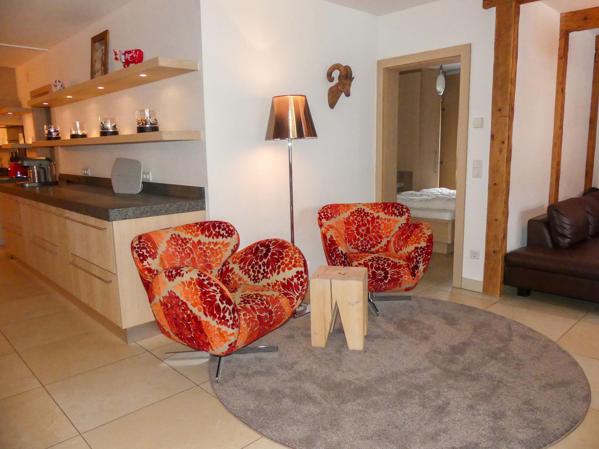"Mountain Resort C15", 4-room apartment 102 m2 on 1st floor. Object suitable for 6 adults + 2 children. Spacious and bright, comfortable and tasteful furnishings: open large living room with panoramic window with open-hearth fireplace, cable TV, flat screen and radio. Exit to the balcony. 1 double bedroom with shower/WC, cable TV and flat screen. 1 double bedroom with shower/WC, cable TV and flat screen. 1 room with 1 x 2 bunk beds (180 cm, length 200 cm), cable TV and flat screen. Large, open kitchen (oven, dishwasher, 4 ceramic glass hob hotplates, toaster, kettle, electric coffee machine, Capsules for coffee machine (Nespresso 80 Stk) free) with dining nook. Natural stone floors. Balcony furniture, deck chairs (2). Facilities: Internet (WiFi). Please note: non-smokers only. Smoke alarm, fire extinguisher. This apartment has 2 bathrooms, either separately or accessible from one bedroom. 50606-007508-2023