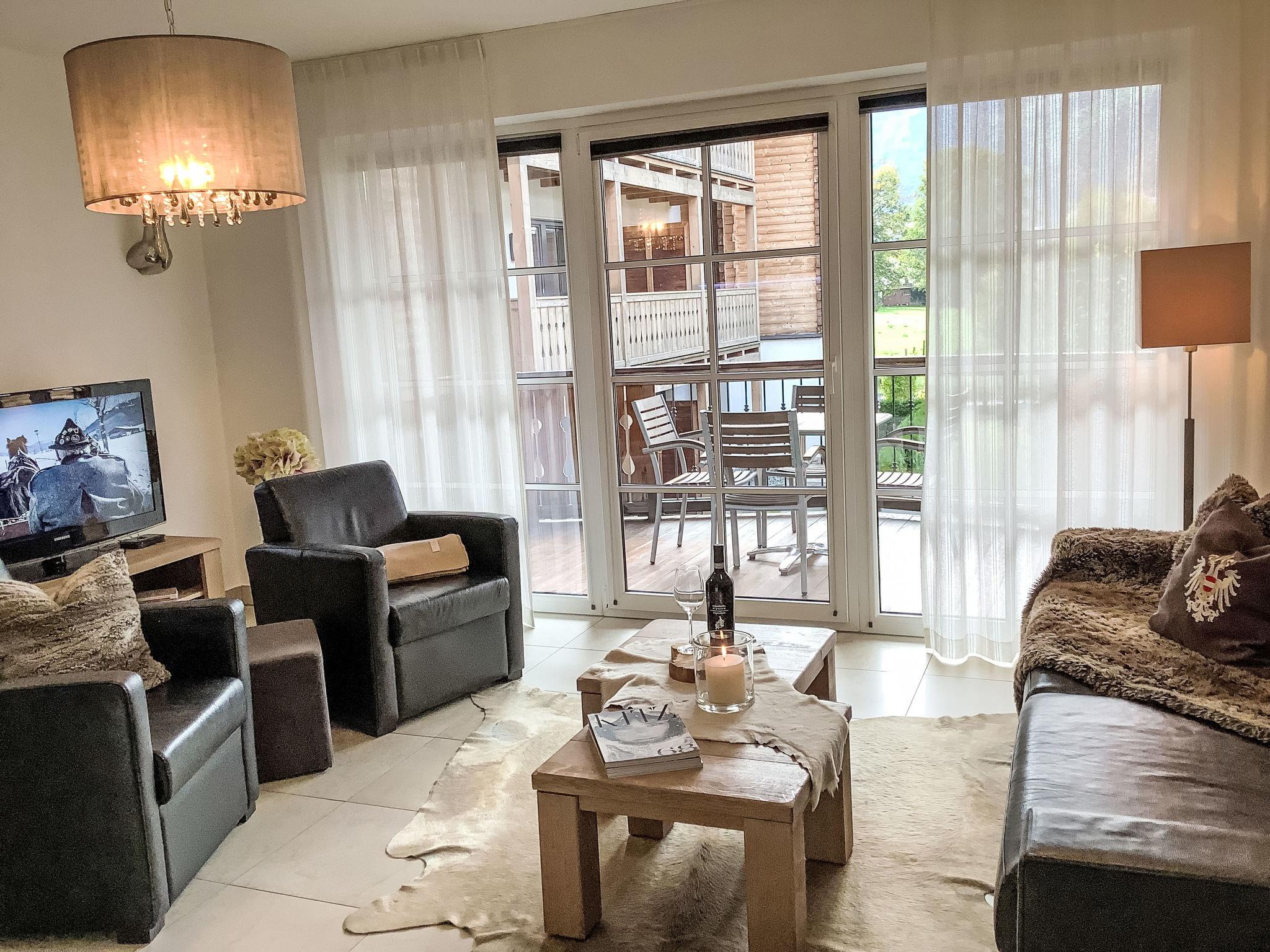 "Mountain Resort Kaprun", 3-room apartment 75 m2 on 1st floor. Comfortable and modern furnishings: entrance hall. Large living/sleeping room with 1 double sofabed, open-hearth fireplace and TV (flat screen). 1 double bedroom with TV. 1 double bedroom with shower/WC and TV. Open kitchen (oven, 4 ceramic glass hob hotplates, toaster, kettle, electric coffee machine). Bathroom, sep. WC. Heating. 2 balconies. Balcony furniture. Very beautiful panoramic view of the mountains. Facilities: Internet (WiFi, free). Please note: non-smokers only. Smoke alarm. 50606-007661-2025