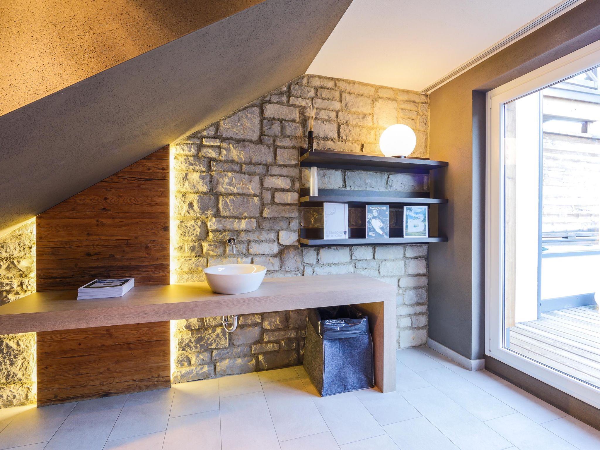 This suite consists of a cozy bedroom with a double bed and two bathrooms with a shower or with a bathtub. The living area has a large dining table and a fully equipped kitchen. The comfortable sitting area can be transformed into a sofa bed for 2 people. Directly from the living area you can access the large terrace or balcony, where you can wonderfully enjoy the sun and the view of the surrounding mountains.