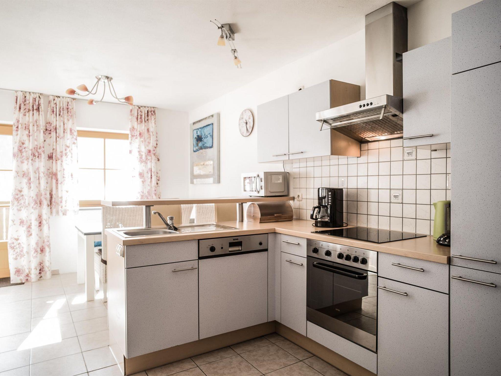 • Komplett ausgestattete Küche mit Herd, Backrohr, Geschirrspüler, Kühlschrank, Kaffeemaschine