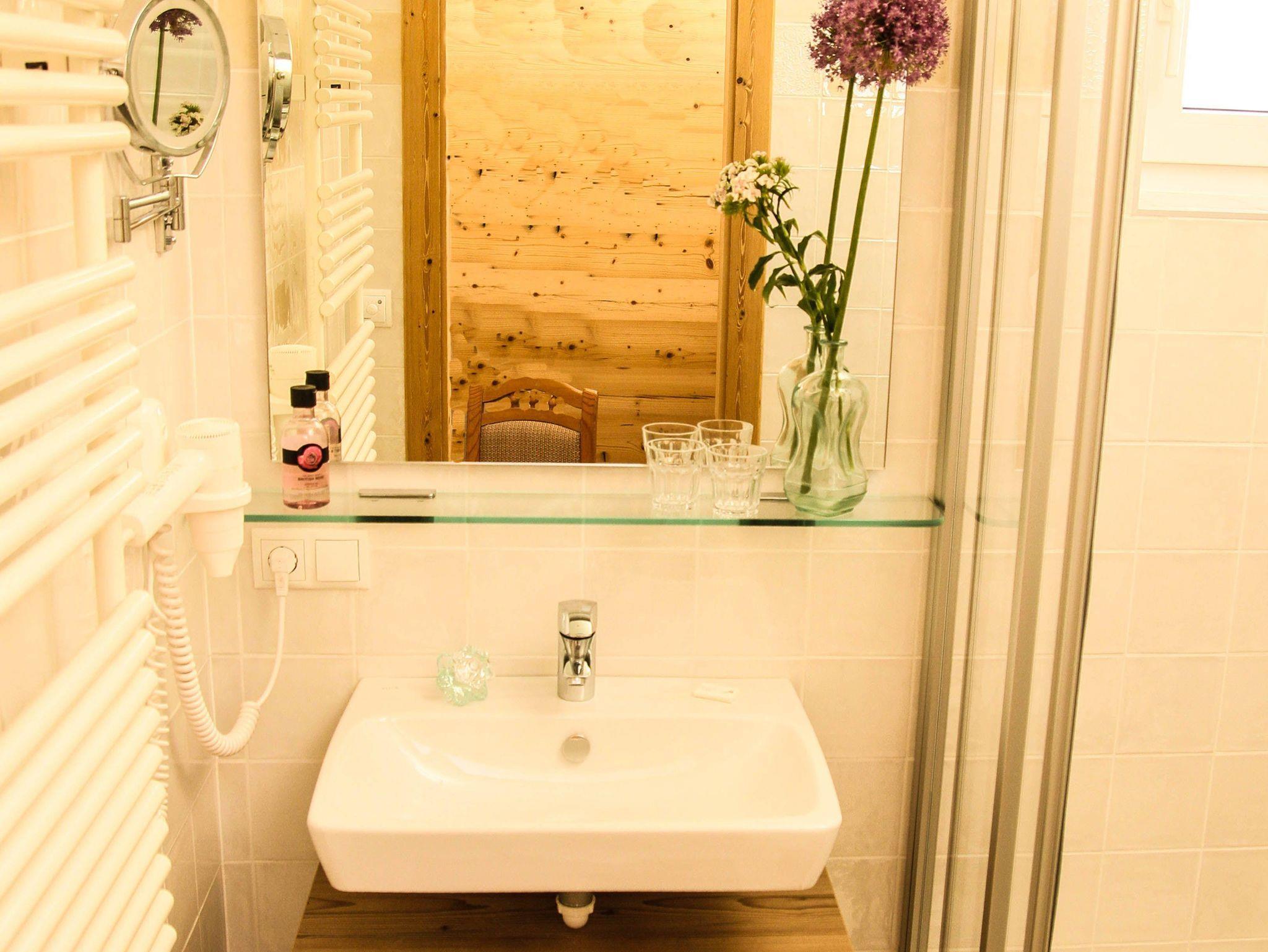 • 1 Badezimmer mit Dusche, WC Handtuchtrockner und Haarföhn