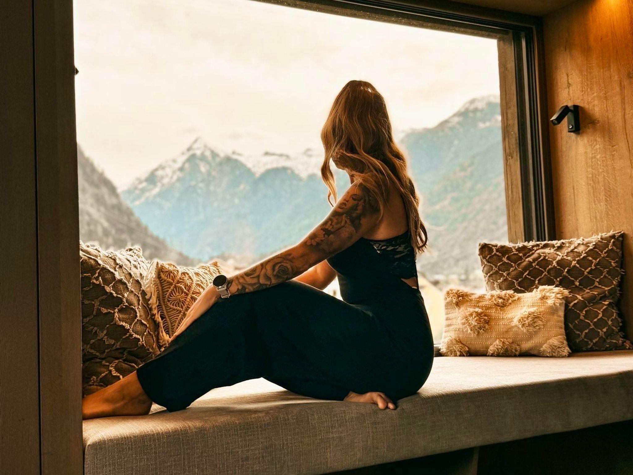 • Sitzen im Fenster mit Traumhaften Blick über den Dächern von Kaprun