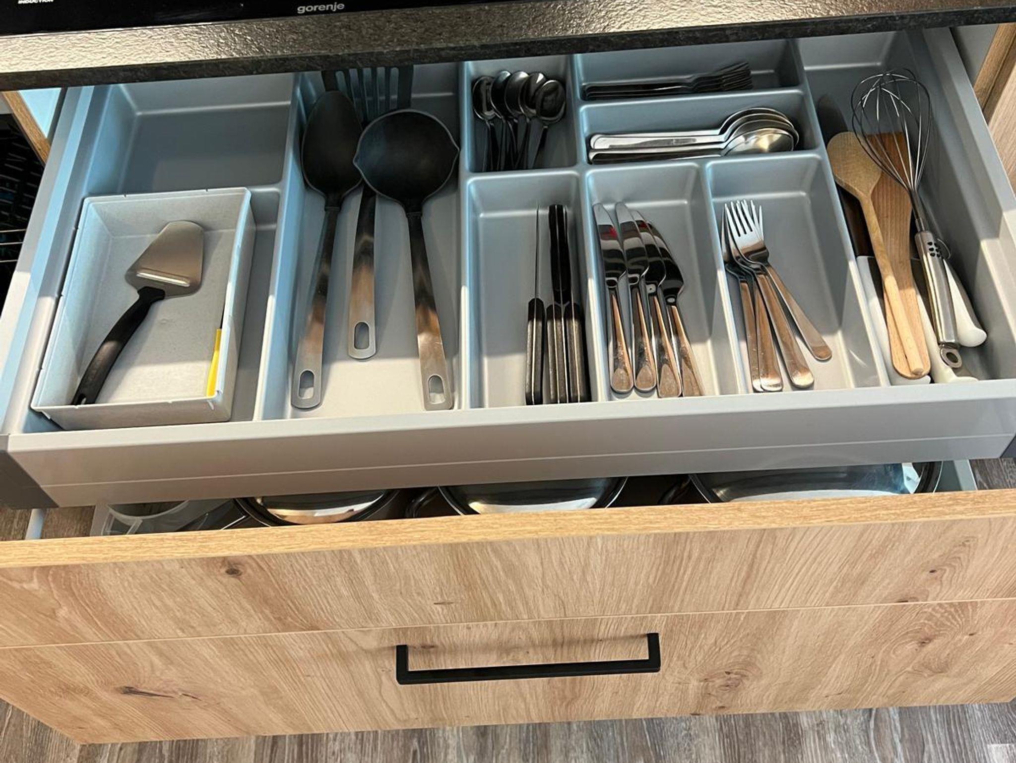 • Voll ausgestattete Küche: Mit Backofen und Mikrowelle.