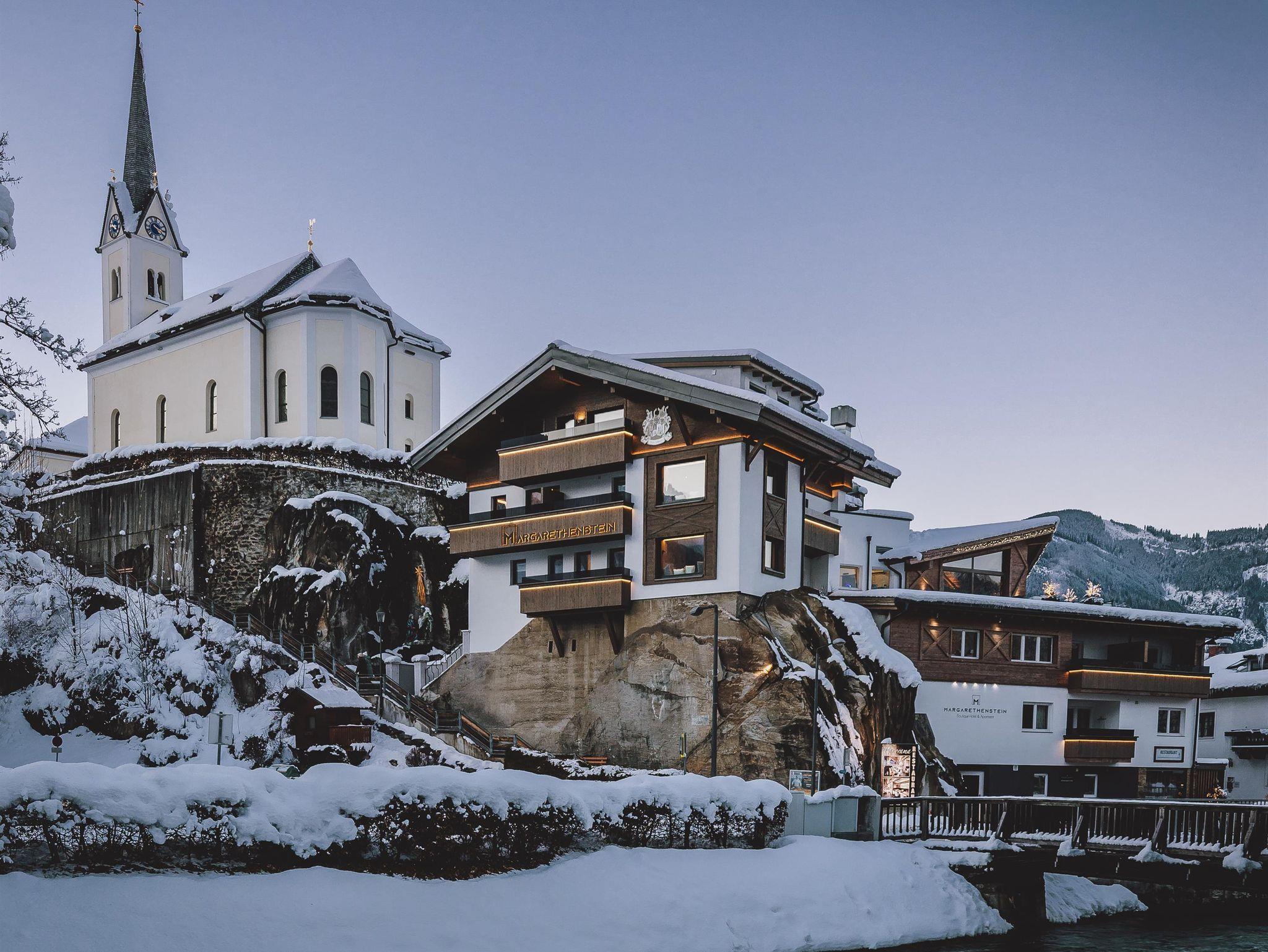 Das Margarethenstein – Boutique Hotel & Apartment hat in Kaprun einen ganz besonderen Platz gefunden: Das Hotel mit exklusiven Apartments thront auf dem namensgebenden Felsen „Margarethenstein“ mitten im Zentrum von Kaprun. Dadurch bietet dir das Haus nicht nur die optimale Ausganslage für den Ortsbummel, zum Skifahren und Wandern, sondern auch eine beeindruckende Panoramaaussicht über die Dächer von Kaprun. Das Boutique Hotel bietet neben Luxus-Suiten stylische und hochwertig ausgestattete Ferienwohnungen. Sie bieten dir auf bis zu 90m2 Platz für eine entspannte Auszeit mit deiner Familie oder deinen Freunden. Das Highlight in den Apartments ist neben der Aussicht die private Sauna in jeder Wohnung: So genießt du deine persönliche Wellnessoase. Und falls du keine Lust hast, selbst zu kochen, wirst du im hoteleigenen Restaurant kulinarisch verwöhnt. Dabei setzt das Margarethenstein ausschließlich auf beste Produkte aus der Region.