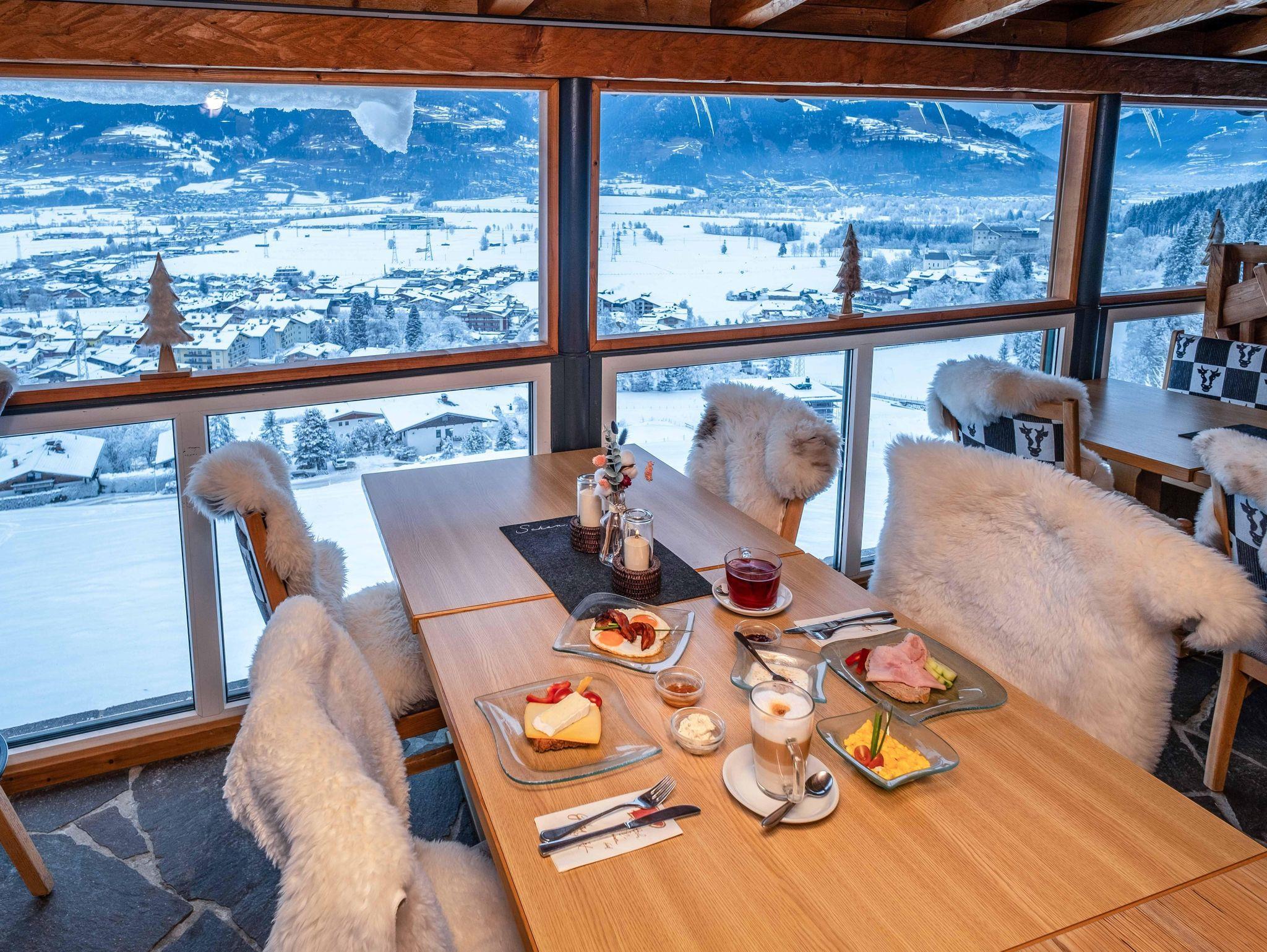 • 100% regionales Frühstückbuffet mit frischen, selbstgemachten und qualitativ hochwertigen Produkten auf der Panorama Terrasse Sommer wie Winter