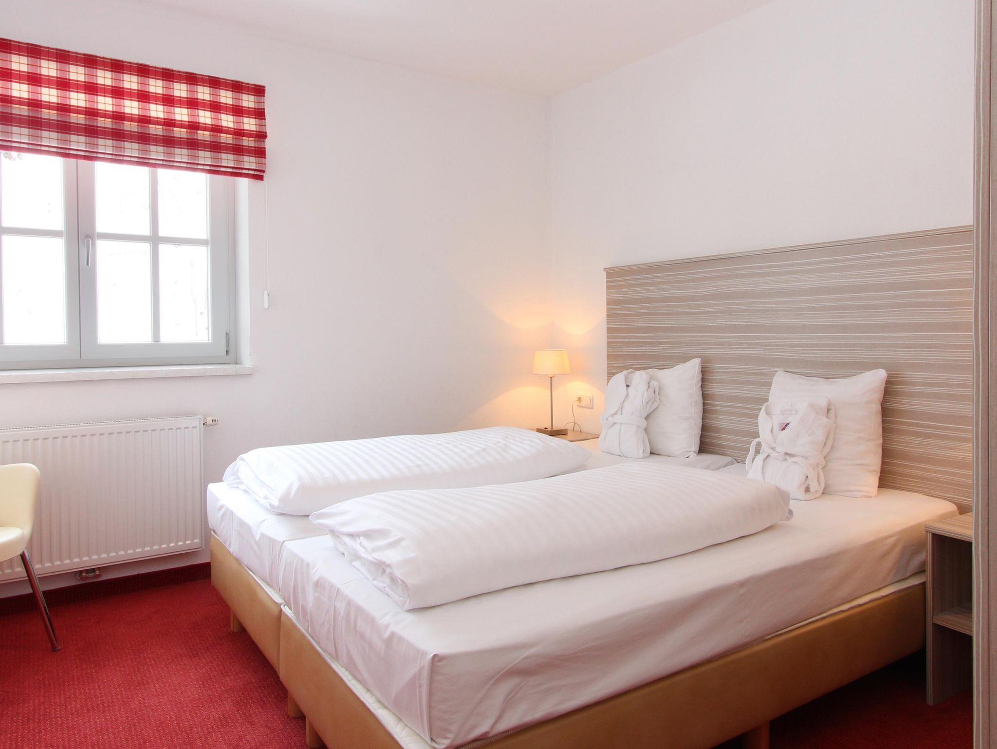 Das Apartment TOP 7 ist mit zwei Schlafzimmern ausgestattet. Jedes Zimmer verfügt über ein komfortables Doppelbett, einen Fernseher und ausreichend Stauraum. Im Badezimmer gibt es eine Badewanne, sowie eine separate Toilette. Der Wohnbereich lädt mit einer behaglichen Sitzecke, einer Schlafcouch, einem Esstisch und einer offenen Küche zum Verweilen ein.