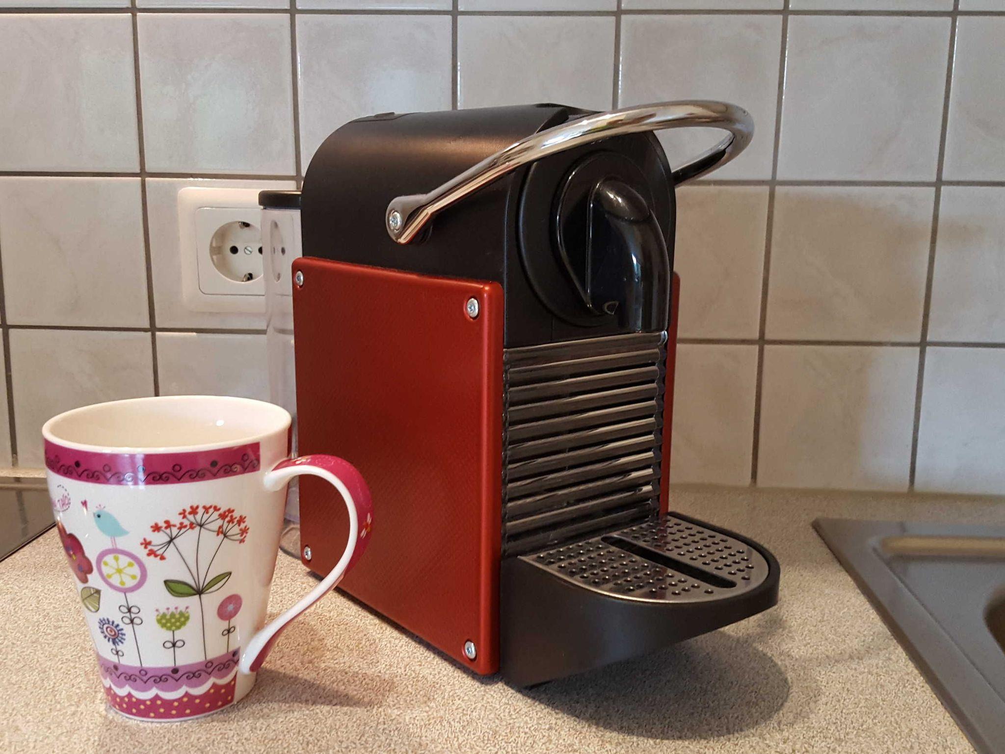 Küche mit Kühlschrank, Geschirrspüler, Herd mit Backrohr, Mikro, Kaffeemaschinen, Eierkocher, Toaster,