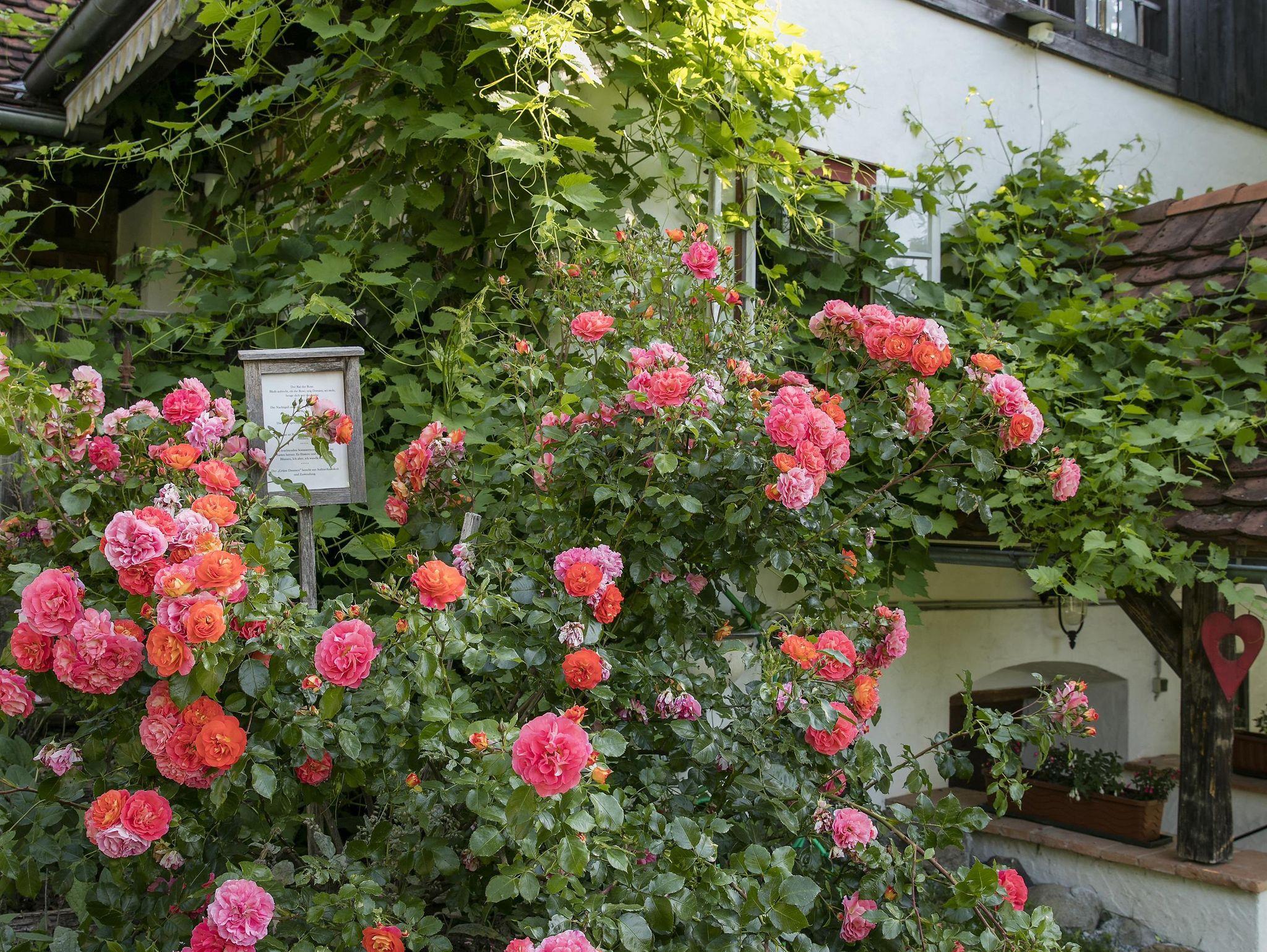 In unserem großen Naturgarten blühen unzählige Blumen wie Rosen und Sträucher, die dazu einladen, durch das grüne Paradies zu schlendern und die Seele baumeln zu lassen. Viele Sonnen- und Schattenplätze genießen Sie im Liegestuhl oder in der Hängematte.