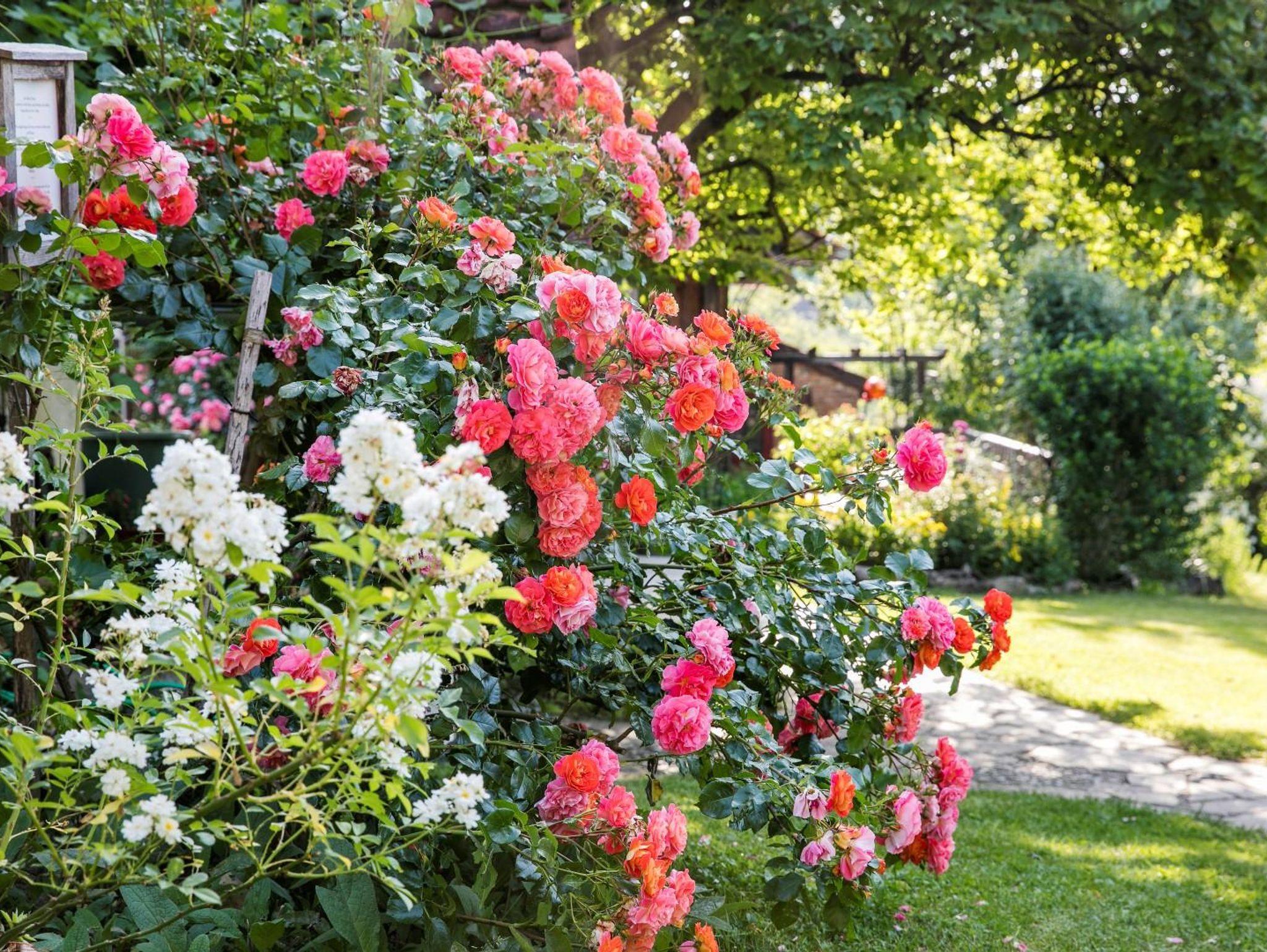 In unserem großen Naturgarten blühen unzählige Blumen wie Rosen und Sträucher, die dazu einladen, durch das grüne Paradies zu schlendern und die Seele baumeln zu lassen. Viele Sonnen- und Schattenplätze genießen Sie im Liegestuhl oder in der Hängematte.