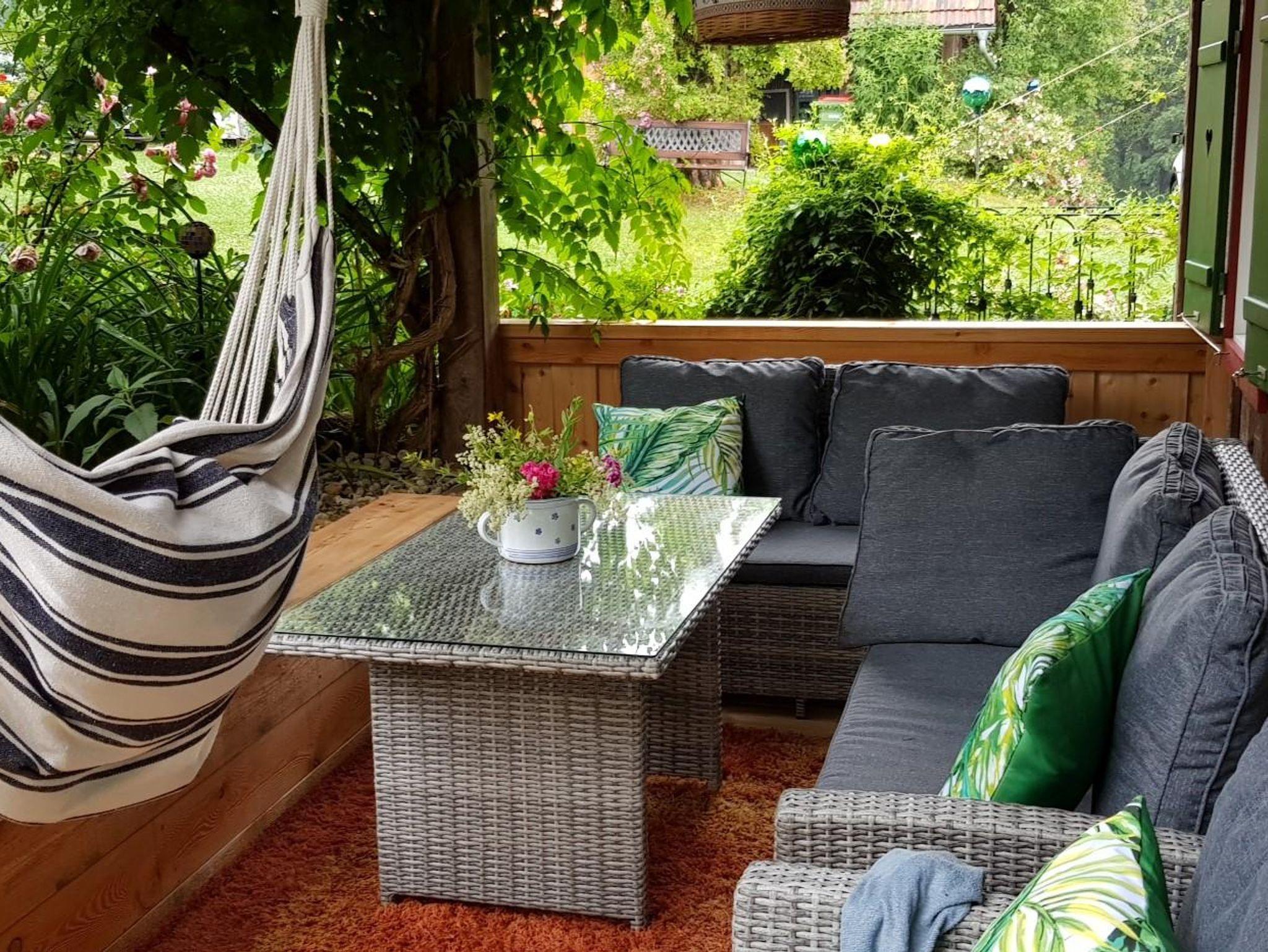 *Und.....einen schönen Sitzplatz am überdachten Balkon und unter dem Nussbaum