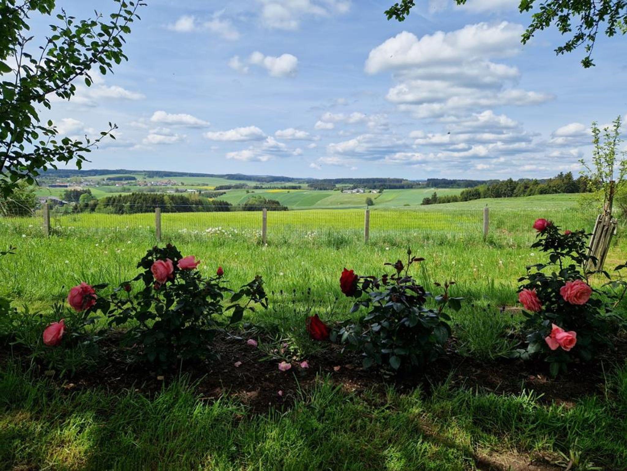 Das ebenerdige Ferienhaus Plessberg ist von einem eingezäunten Garten mit sehr schöner Aussicht umgeben.