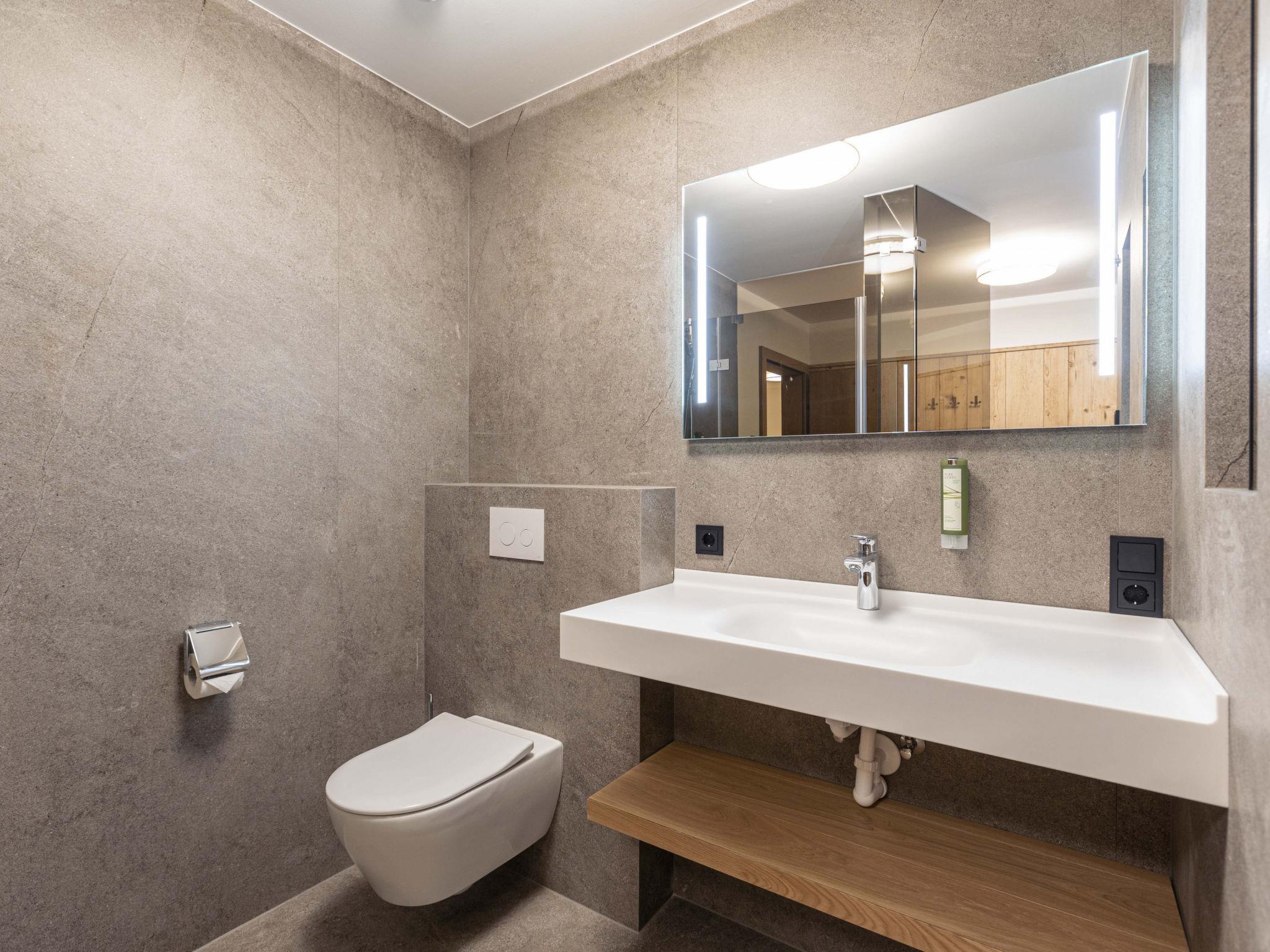 Reith bei Kitzbühel: Modern resort "Dorfresort Kitzbühel by AlpsResorts", 2 storeys. In the centre of Reith 6 km from the centre of Kitzbühel, 4 km from the lake, 5 km from the skiing area. For shared use: nat. Swimm. Pond. In the complex: sauna, steam room, hot tub, infrared sauna, relaxation room, spa area, storage room for bicycles, storage room for skis, central heating system. Parking at the house. Supermarket 500 m, restaurant 5 m, railway station "Kitzbühel Schwarzsee" 4 km. Skisport facilities 5 km, children's ski school 5 km. Well-known ski regions can easily be reached: KitzSki Hahnenkammbahn 6 km, Übungslift Reith 150 m. Well-known lakes can easily be reached: Schwarzsee 4 km. Please note: ski bus (free of charge). The holiday properties may differ in situation, size and location. Directly connected to the resort: Restaurant Reitherwirt!
