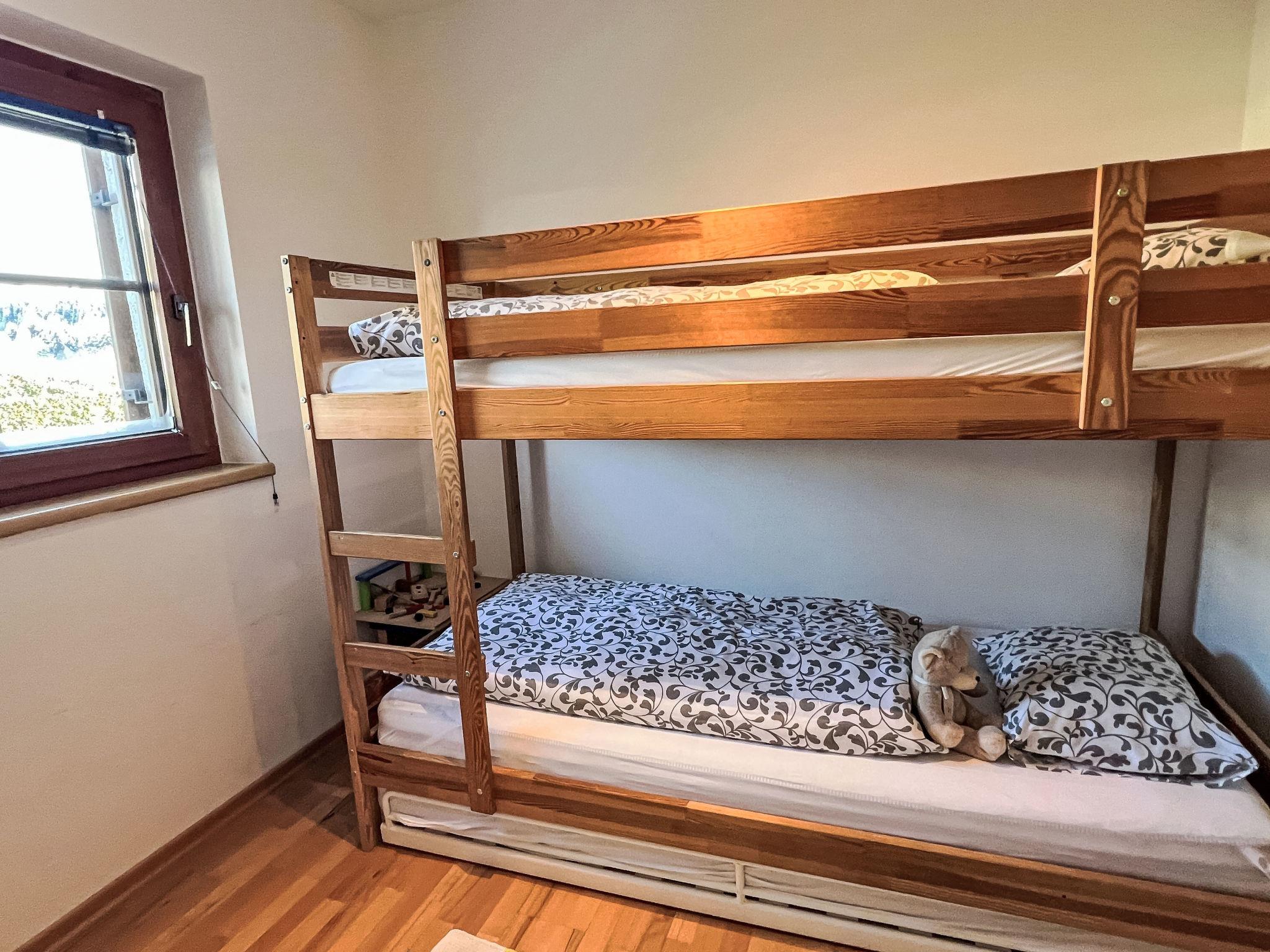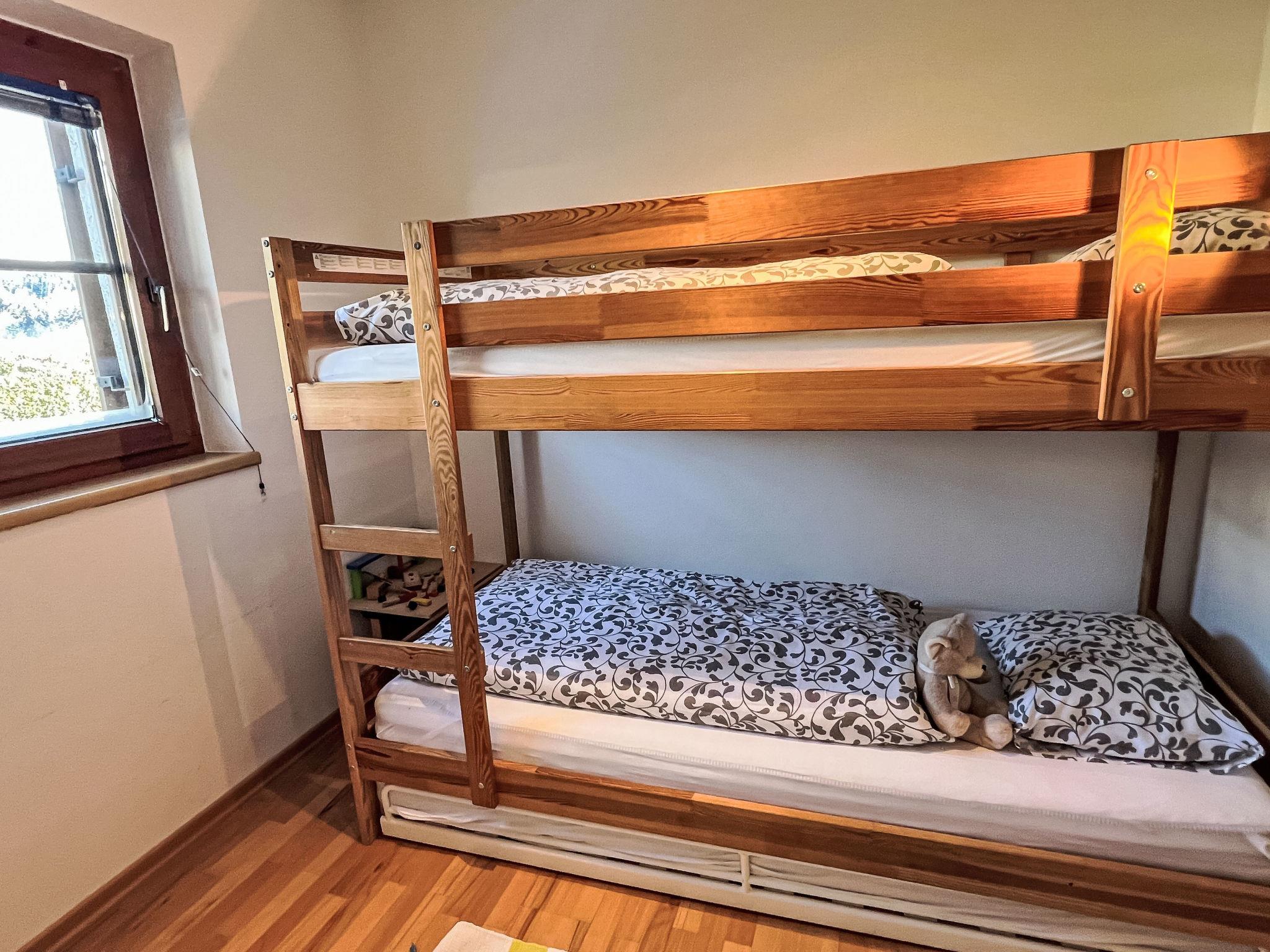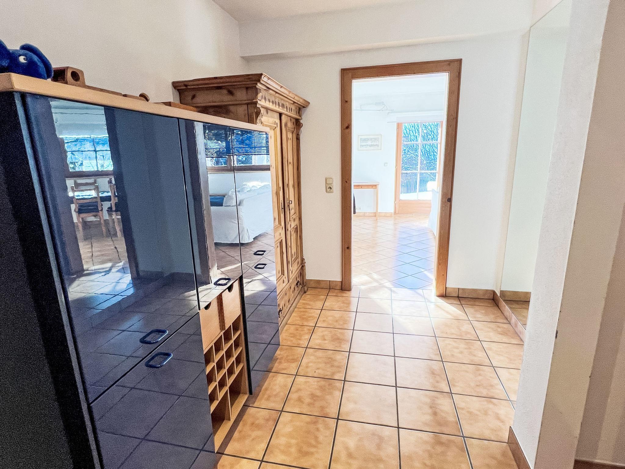 "Blauer Elefant", 4-room apartment 108 m2, on the ground floor. Tasteful furnishings: living room with Scandinavian wood stove and TV. 1 double bedroom with shower/WC and TV. 1 room with 1 x 2 bunk beds (90 cm, length 200 cm). 1 room with 1 double bed (130 cm, length 200 cm). Open kitchen (oven, dishwasher, 4 ceramic glass hob hotplates, toaster, kettle, microwave, fondue Set (chinoise)). Bath/WC. Oil heating. Wooden floors. Terrace 50 m2. Terrace furniture, electric barbecue. Very beautiful panoramic view of the mountains. Facilities: washing machine. Internet (WiFi, free). Please note: non-smokers only. Smoke alarm, fire extinguisher.