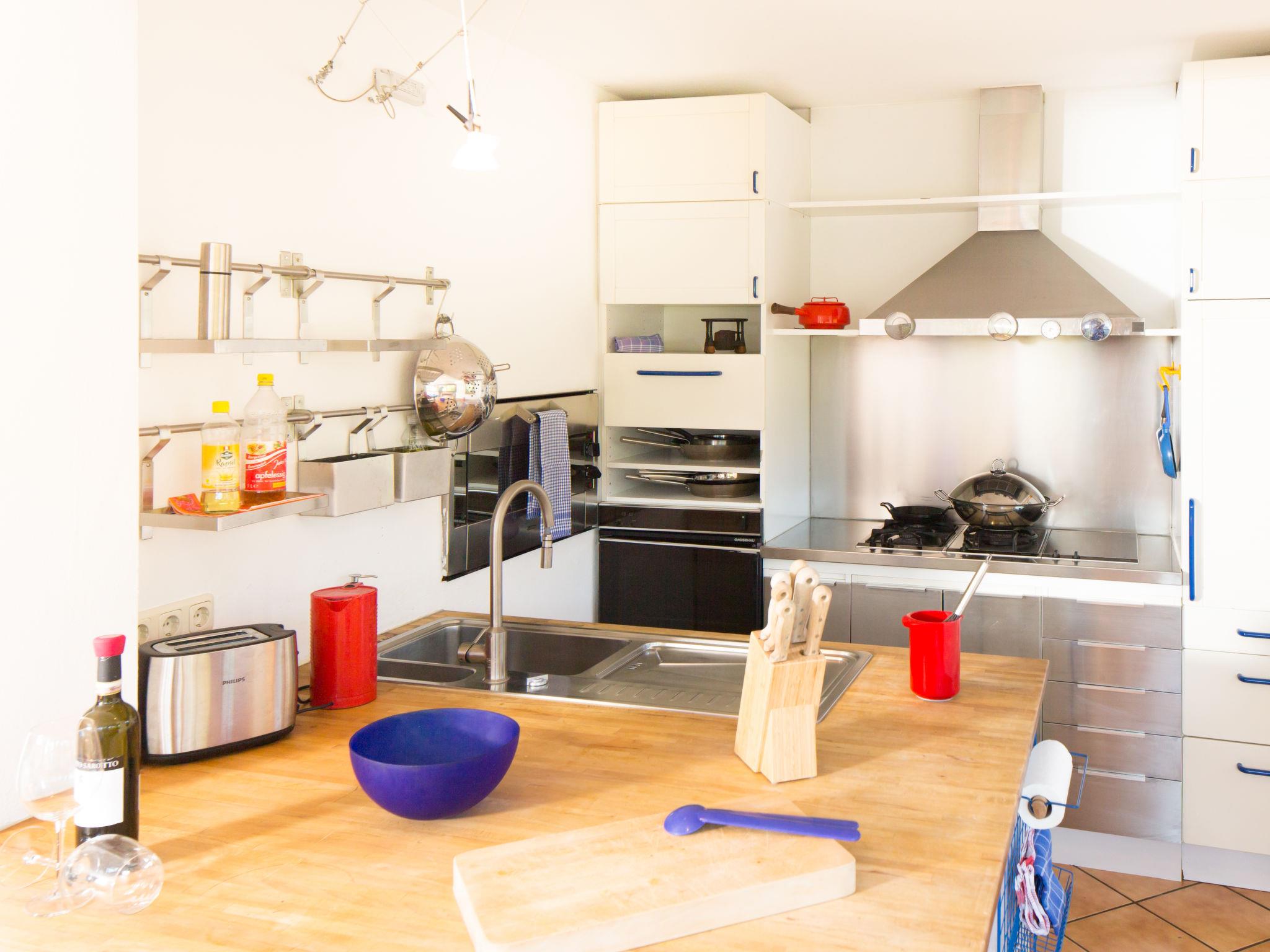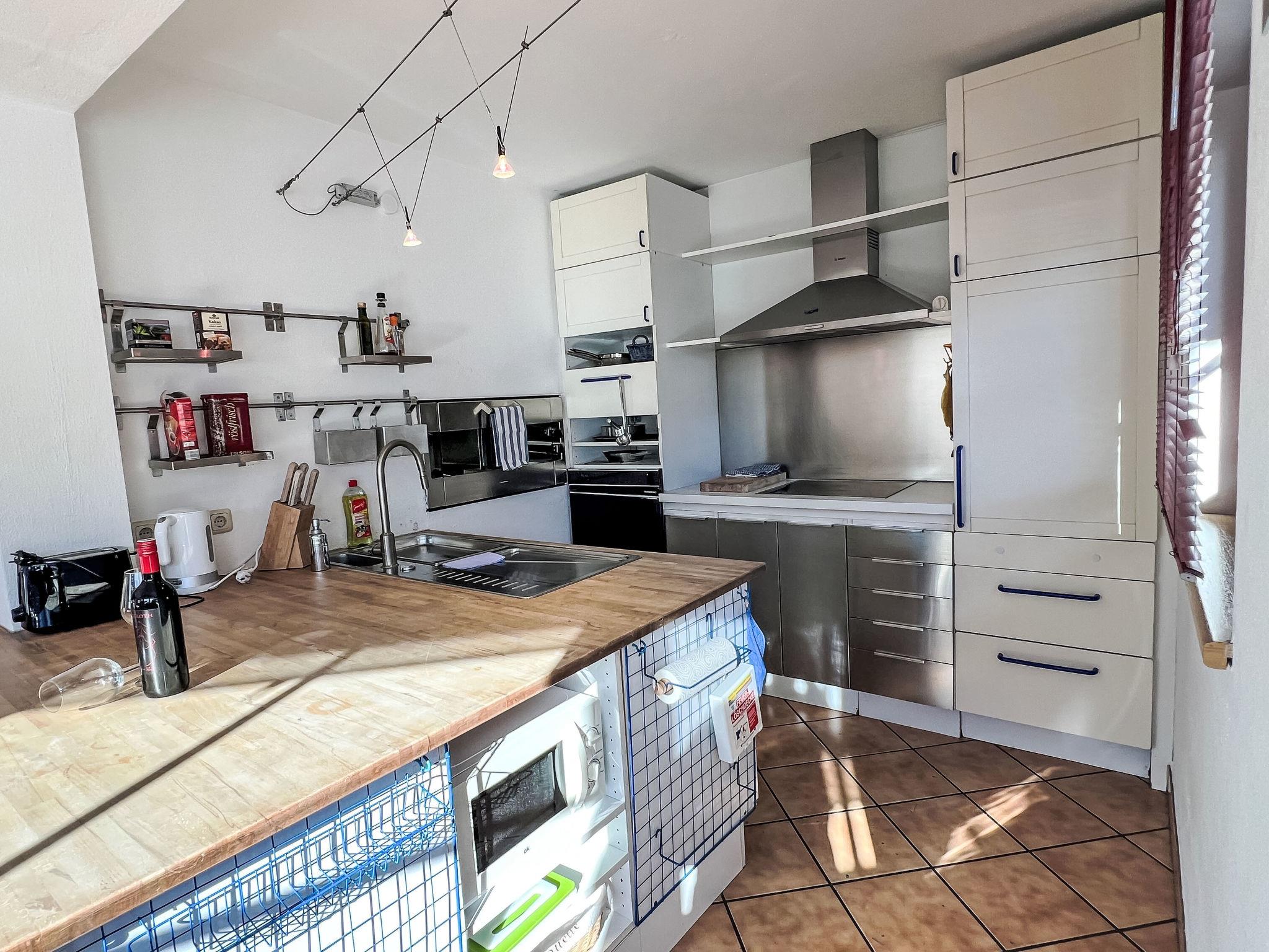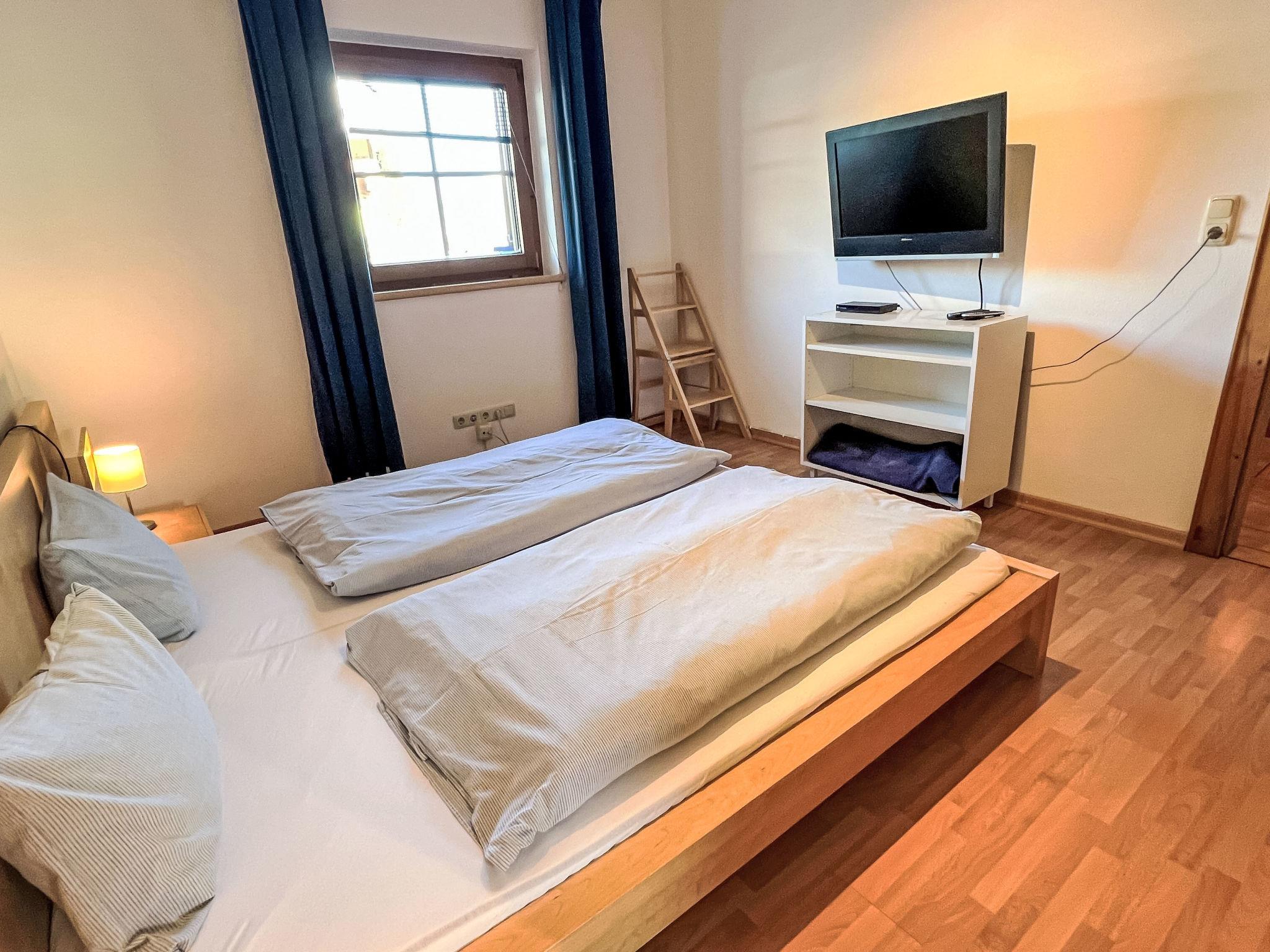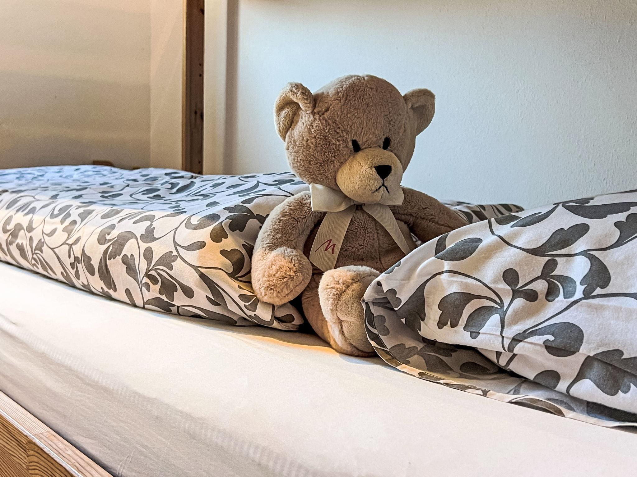 "Blauer Elefant", 4-room apartment 108 m2, on the ground floor. Tasteful furnishings: living room with Scandinavian wood stove and TV. 1 double bedroom with shower/WC and TV. 1 room with 1 x 2 bunk beds (90 cm, length 200 cm). 1 room with 1 double bed (130 cm, length 200 cm). Open kitchen (oven, dishwasher, 4 ceramic glass hob hotplates, toaster, kettle, microwave, fondue Set (chinoise)). Bath/WC. Oil heating. Wooden floors. Terrace 50 m2. Terrace furniture, electric barbecue. Very beautiful panoramic view of the mountains. Facilities: washing machine. Internet (WiFi, free). Please note: non-smokers only. Smoke alarm, fire extinguisher.