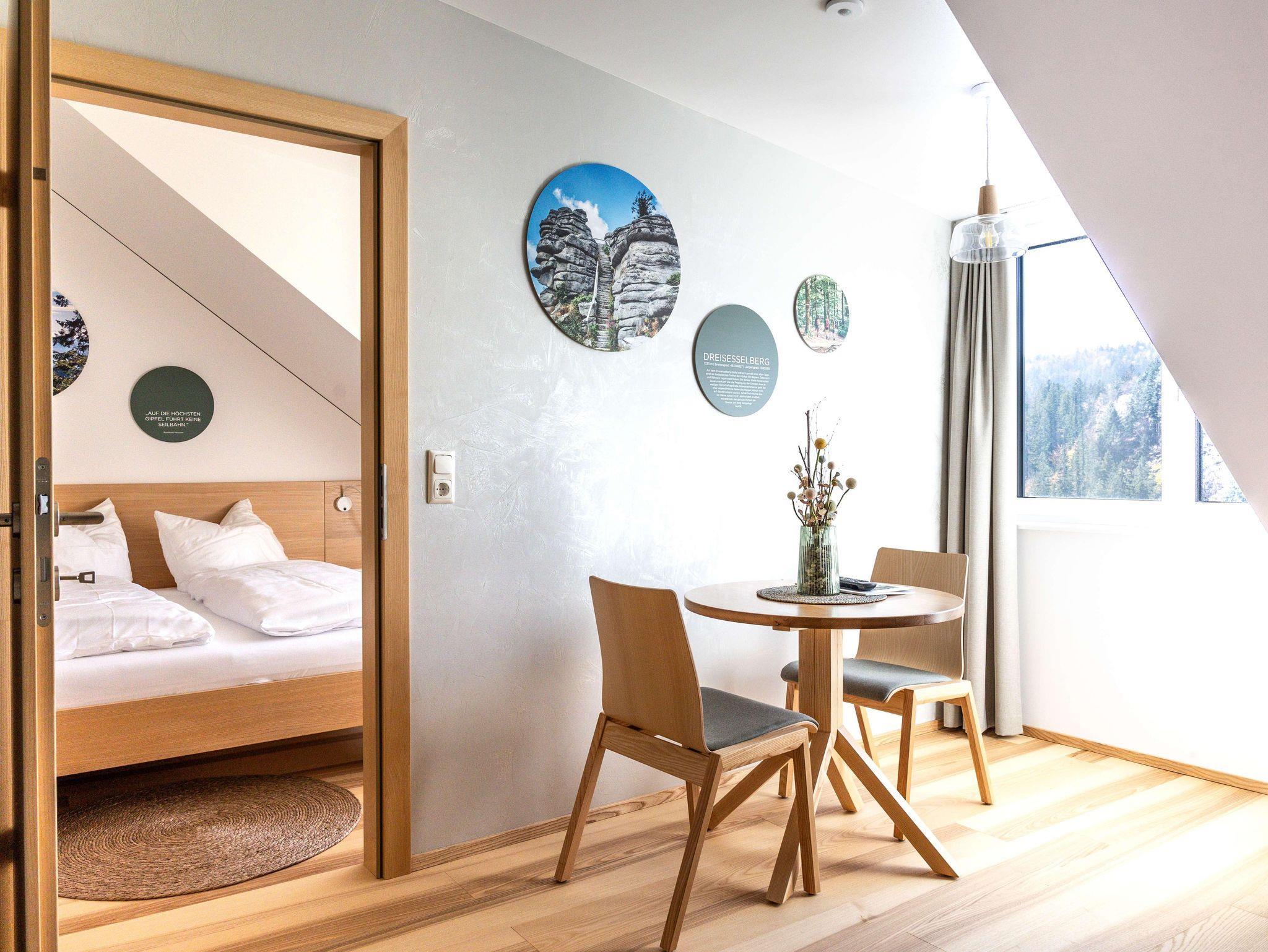 Das erst kürzlich eröffnete Forsthaus bietet dir Ruhe und Komfort in einer idyllischen Berglandschaft. Es ist ideal für Familien, Paare und Freunde, die Entspannung und Abenteuer suchen. Das Haus verfügt über 7 gemütliche Apartments. Vier davon sind mit komfortablen Doppelbetten ausgestattet, während zwei Familienapartments je 2 Schlafzimmer mit Doppelbetten haben. Zusätzlich gibt es ein barrierefreies Apartment.