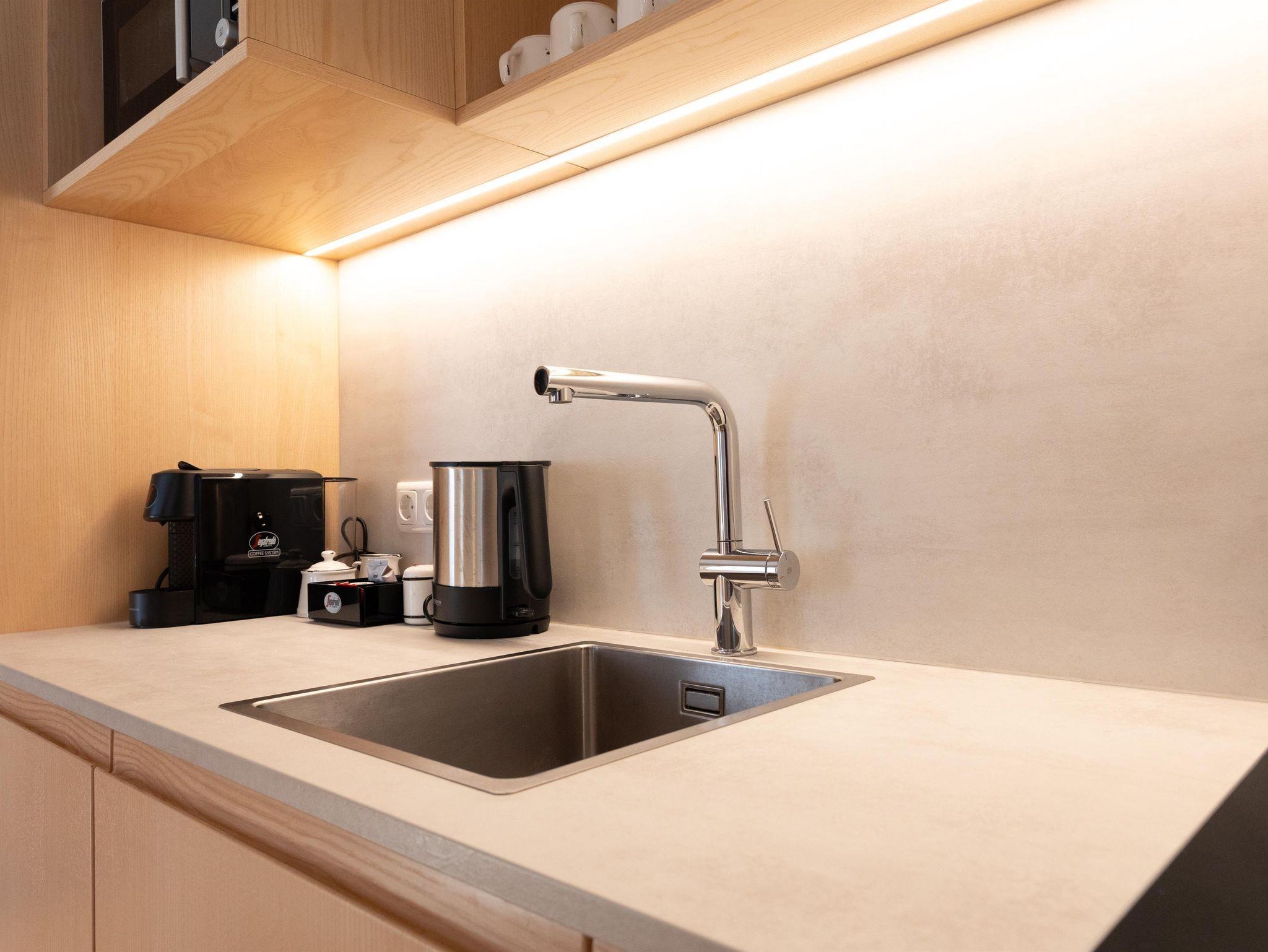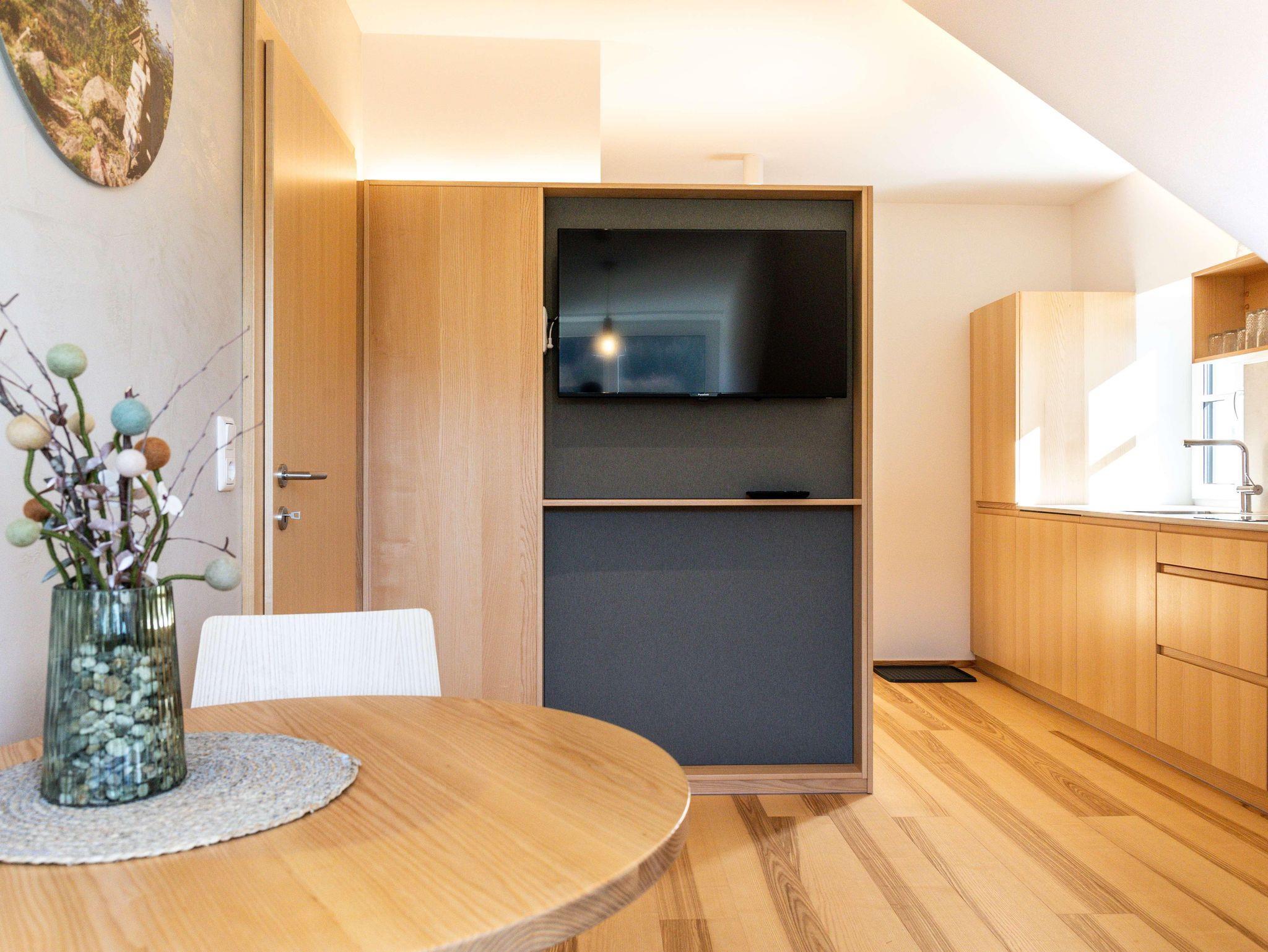 Die Ausstattung der Apartments lässt keine Wünsche offen. In den großzügigen Küchen kannst du dich bequem selbst versorgen, und im Vorraum findest du hausgemachte Gerichte in Kühlschränken, die du in deinem Apartment erwärmen kannst. Außerdem findest du im Kühlschrank in den Appartements einige Erfrischungen, die bereits für dich vorbereitet wurden!