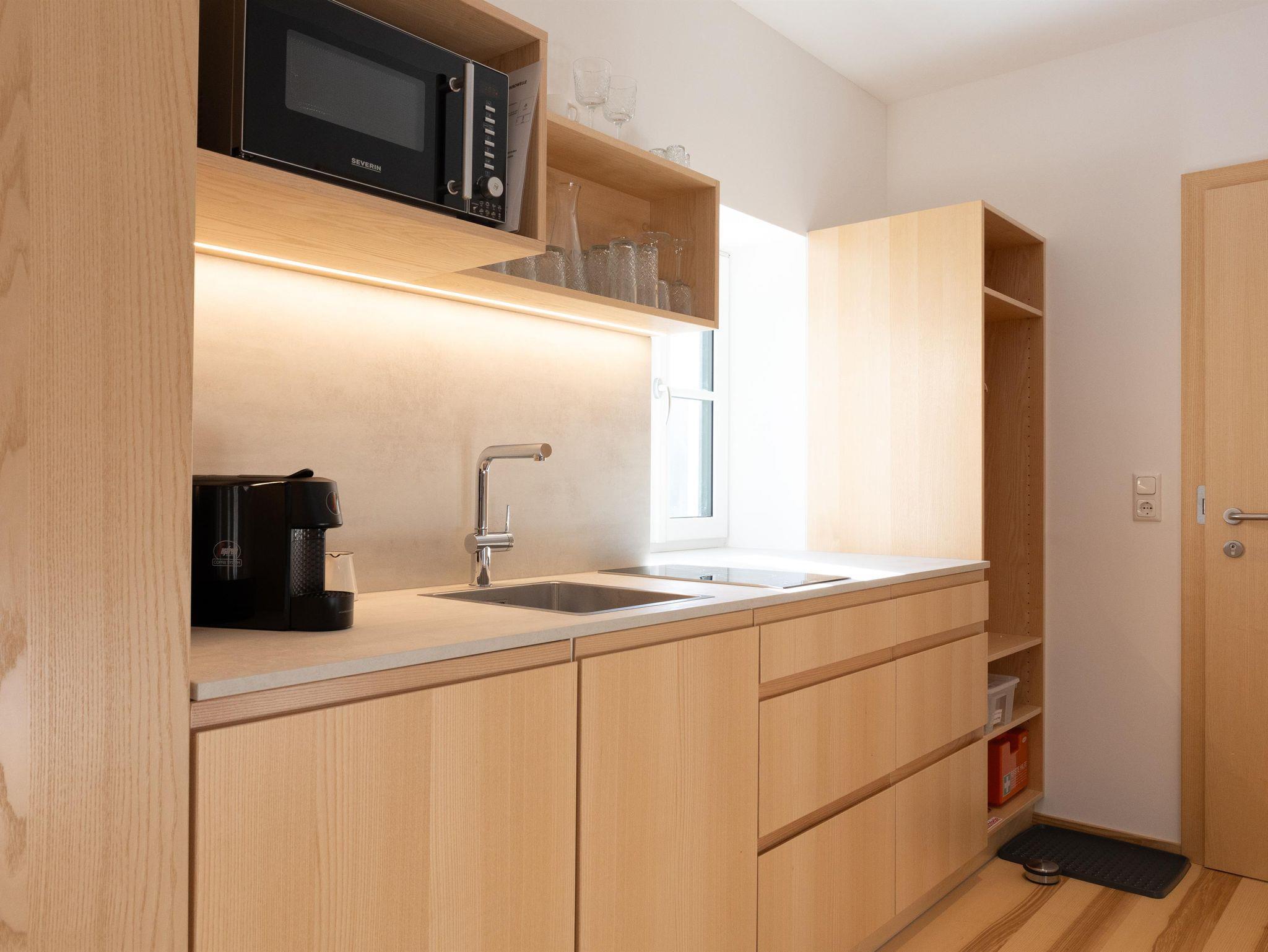 Die Ausstattung der Apartments lässt keine Wünsche offen. In den großzügigen Küchen kannst du dich bequem selbst versorgen, und im Vorraum findest du hausgemachte Gerichte in Kühlschränken, die du in deinem Apartment erwärmen kannst. Außerdem findest du im Kühlschrank in den Appartements einige Erfrischungen, die bereits für dich vorbereitet wurden!